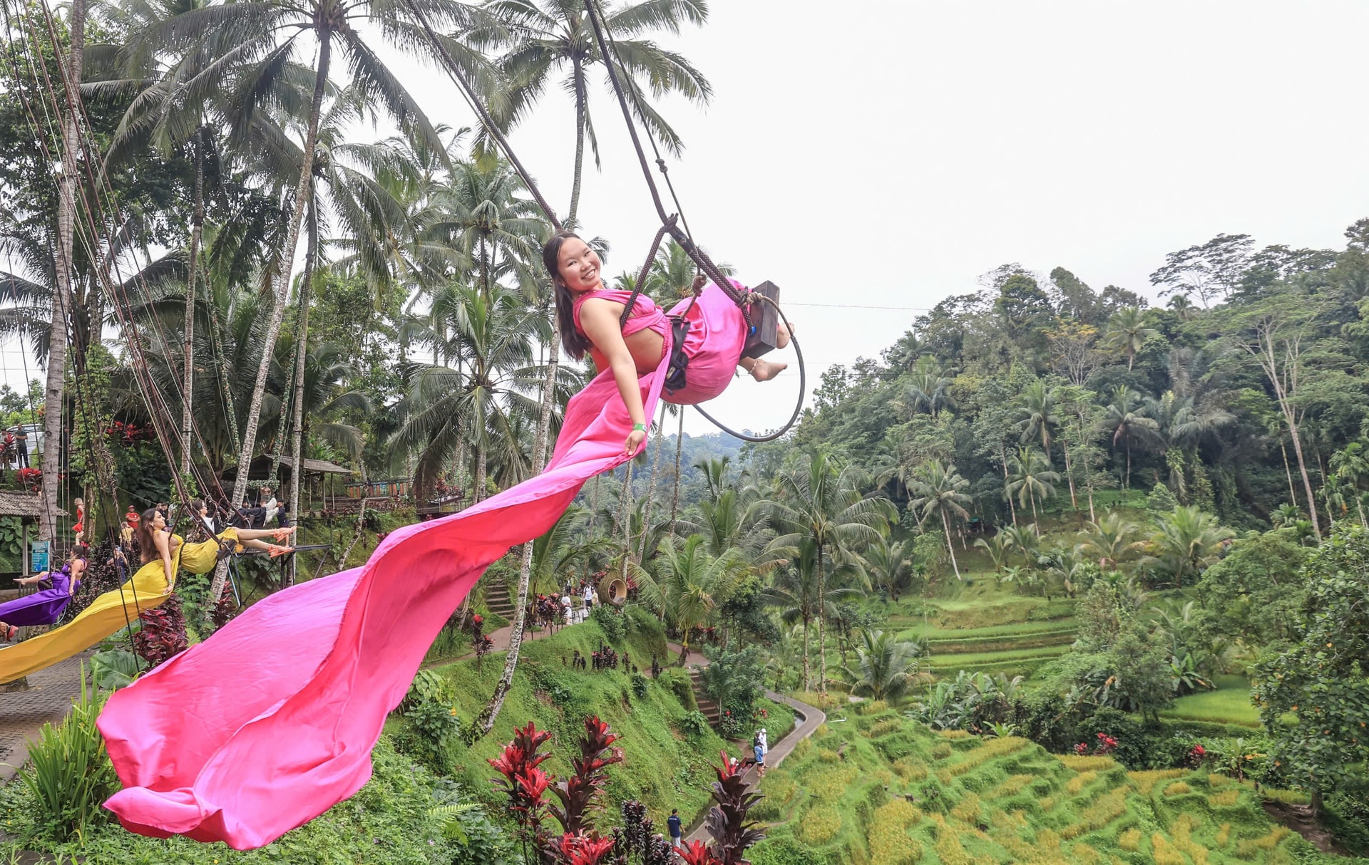 Du khách tới đây rất thích trải nghiệm dịch vụ đánh đu Bali Swing để tận hưởng trọn vẹn nét đẹp của ruộng bậc thang.