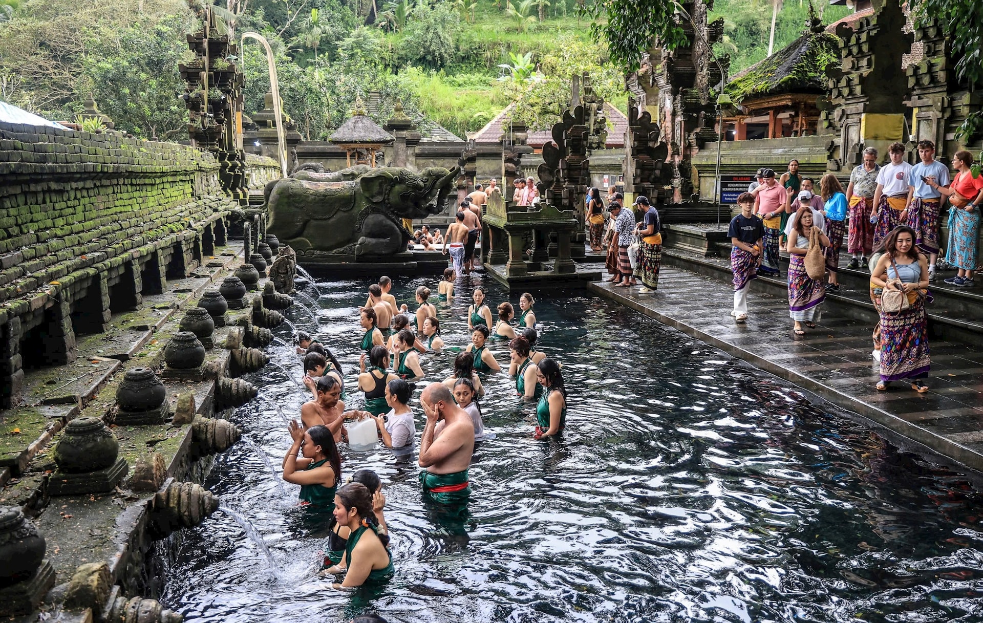 Đền Tirta Empul cổ kính nằm ở làng Manukaya, thuộc vùng Tampaksiring là một trong những ngôi đền nổi tiếng nhất trên đảo Bali. Mọi du khách bước chân vào đền cũng phải quấn thêm xà rông (được ban tổ chức cho mượn).