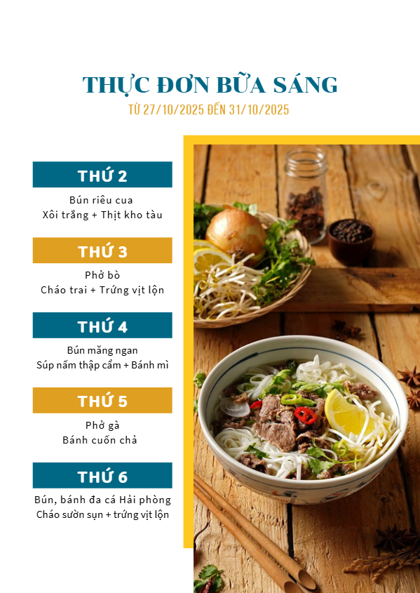 Tuần này, quầy ăn sáng của Sky Lounge đúng nghĩa là thiên đường của người mê món nước. Team mê bún, phở có ngay: bún riêu cua, phở bò, phở gà, bún măng ngan, bún/bánh đa cá Hải Phòng. Ngoài ra, bếp vẫn phục vụ anh chị em các món: cháo trai hoặc cháo sườn sụn ăn cùng trứng vịt lộn, xôi trắng ăn kèm thịt kho tàu, bánh cuốn chả nóng hổi, hay súp nấm thập cẩm nhấm nháp cùng bánh mì.