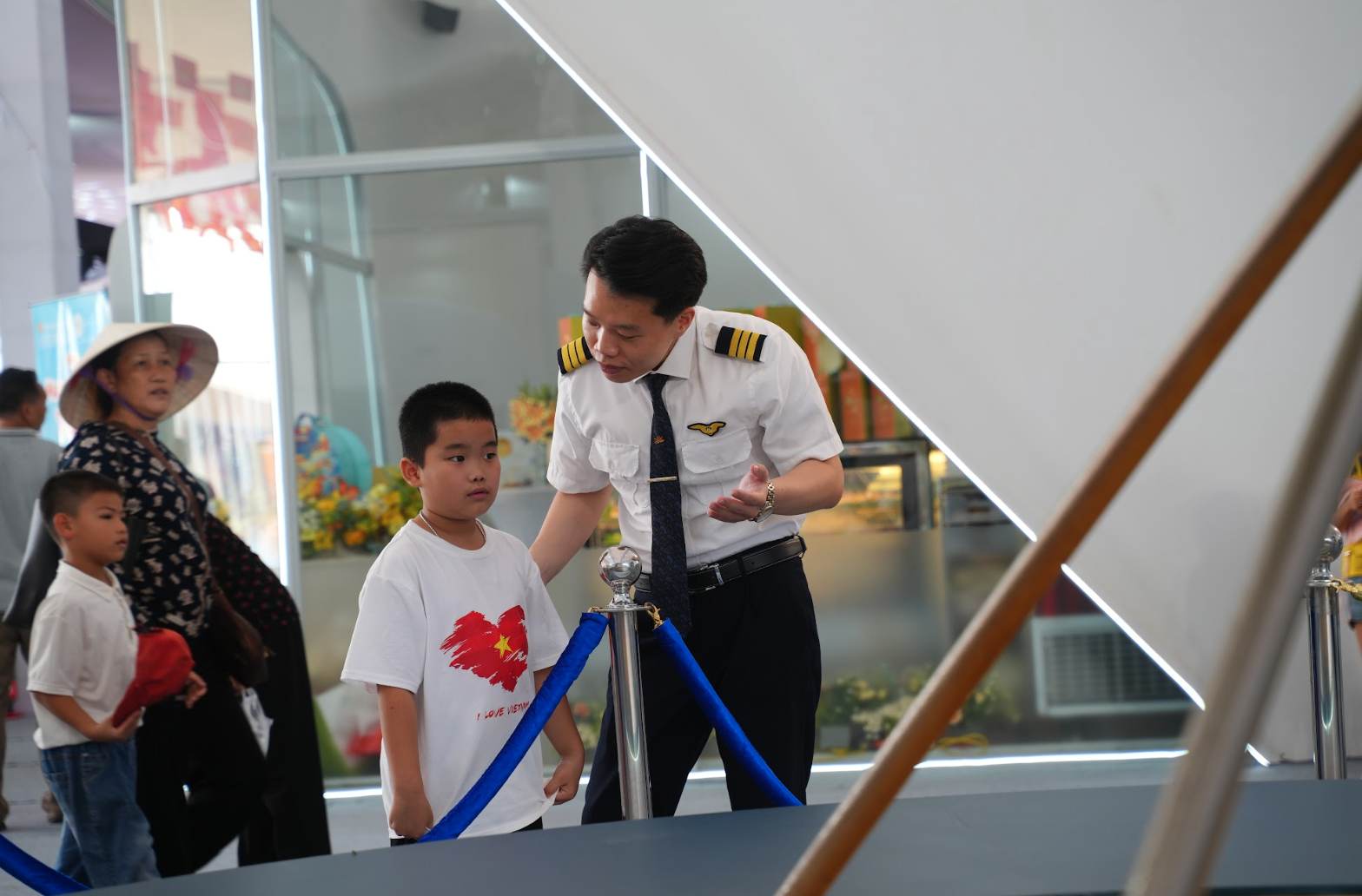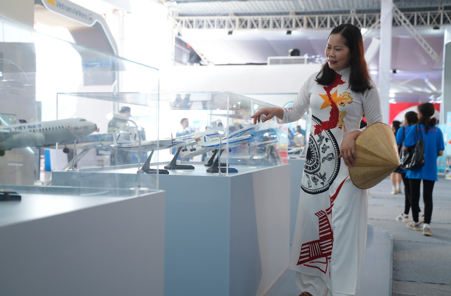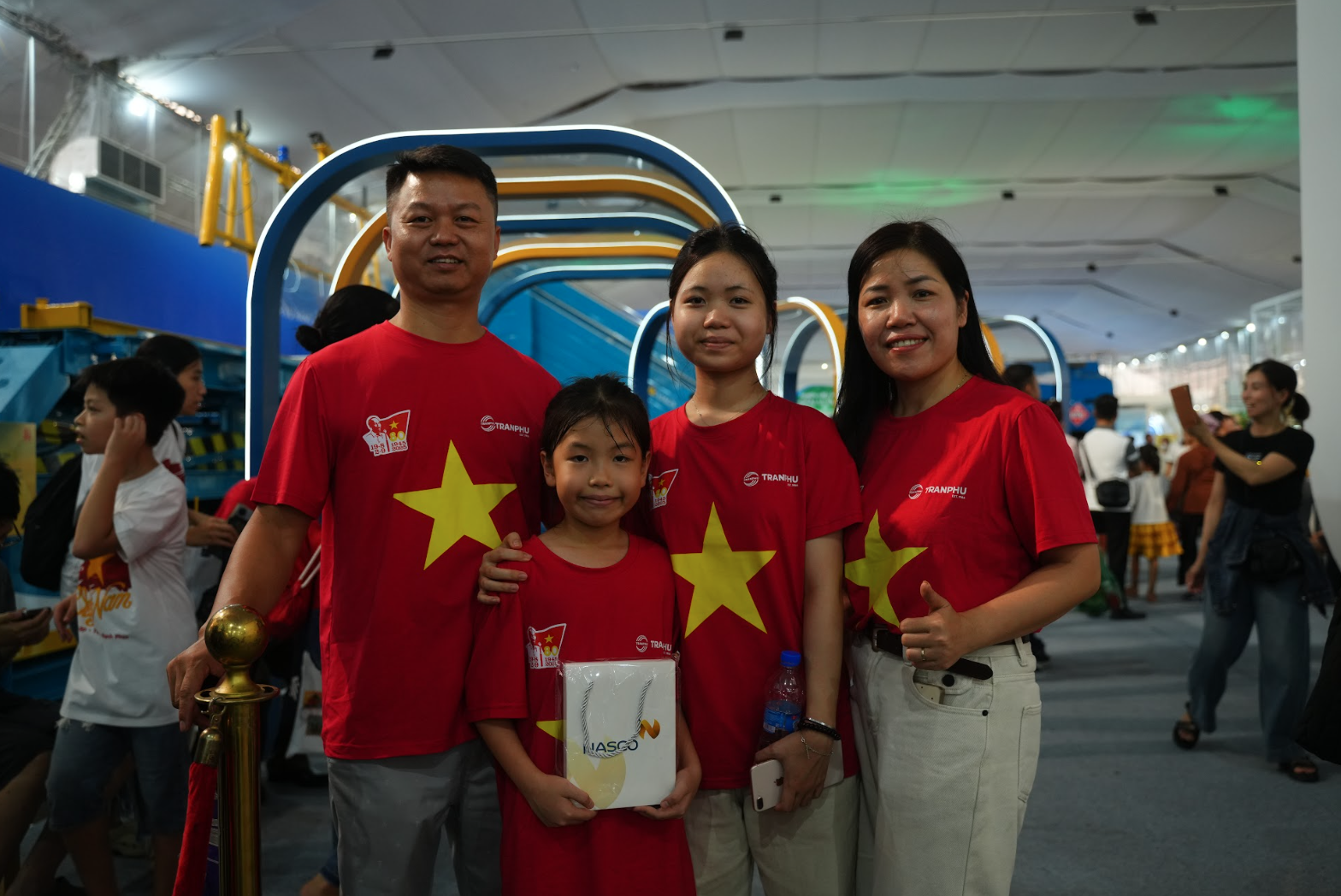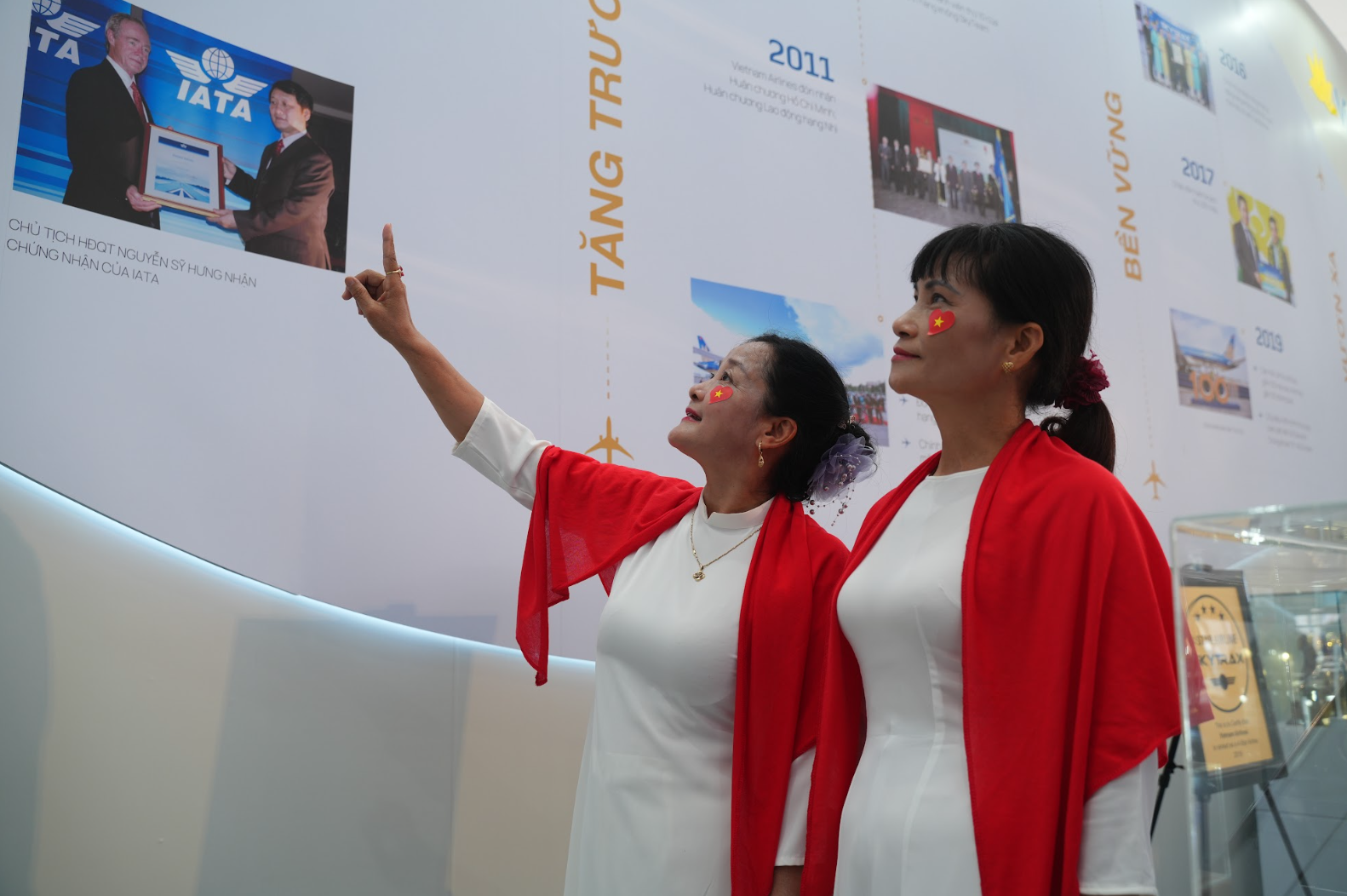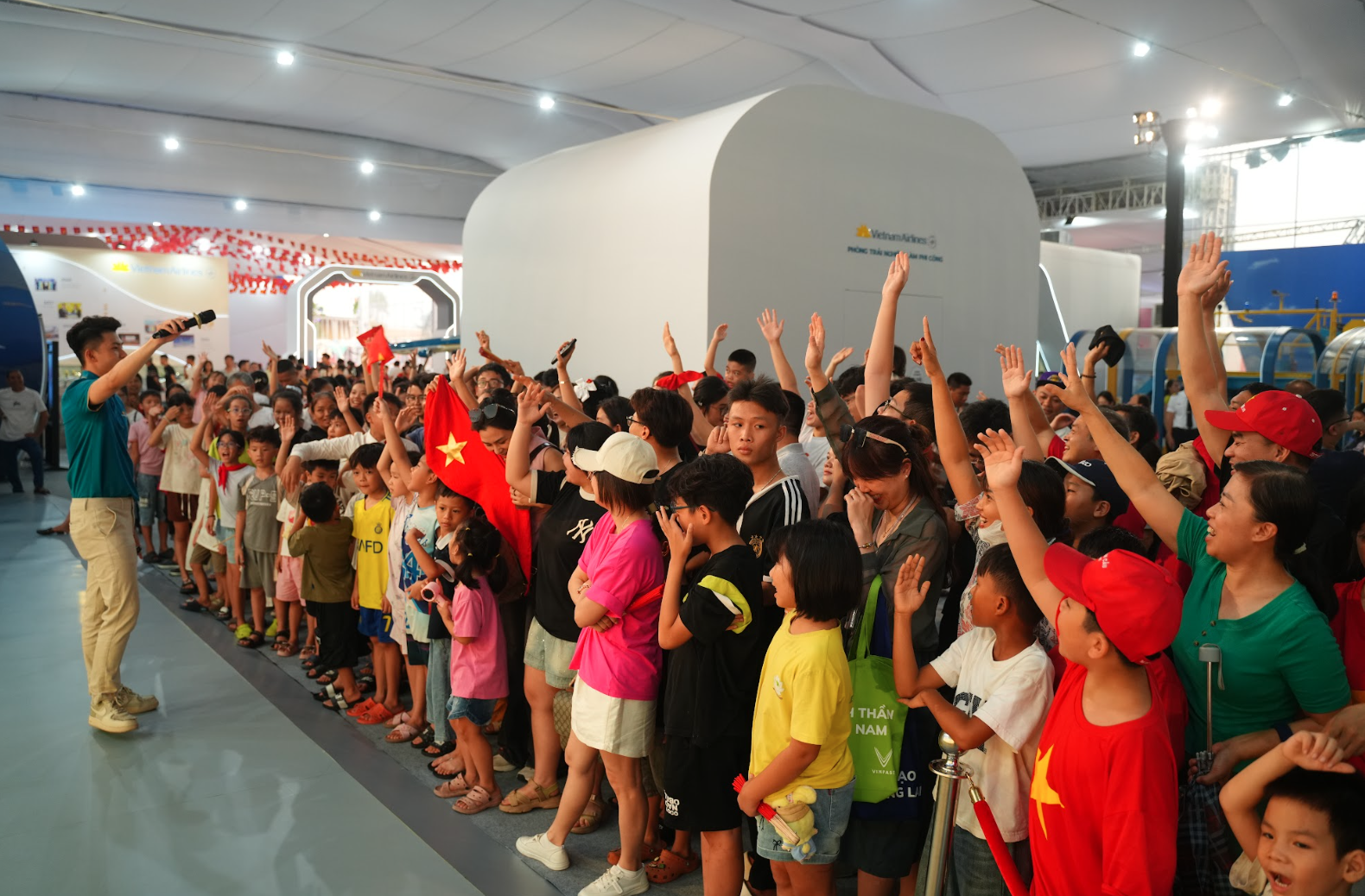 Không gian triển lãm của Vietnam Airlines nhanh chóng trở thành “sân khấu” của sắc đỏ sao vàng. Từ những bạn trẻ năng động đến các gia đình nhiều thế hệ, ai cũng hào hứng diện áo cờ, cùng nhau chụp ảnh, cười nói rộn ràng. Mỗi nụ cười, mỗi bộ trang phục không chỉ đơn thuần là kỷ niệm đẹp mà còn như một cách công chúng gửi đi lời nhắn: hòa bình, đoàn kết và khát vọng bay cao luôn hiện hữu trong trái tim người Việt.