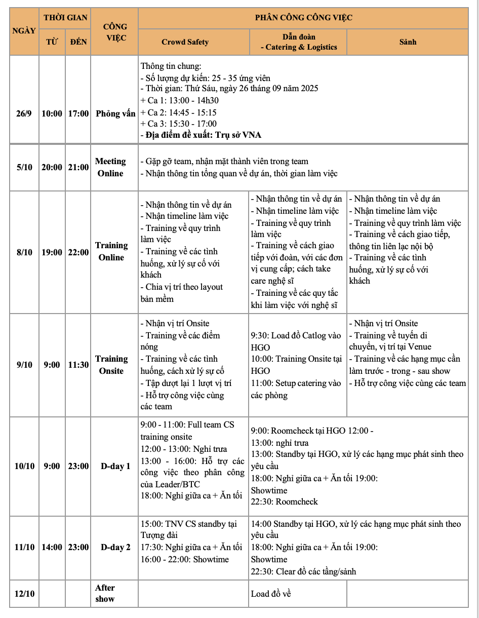 - Suất ăn tối trong các ngày làm việc trực tiếp (onsite): ngày 10 và 11/10/2025.
