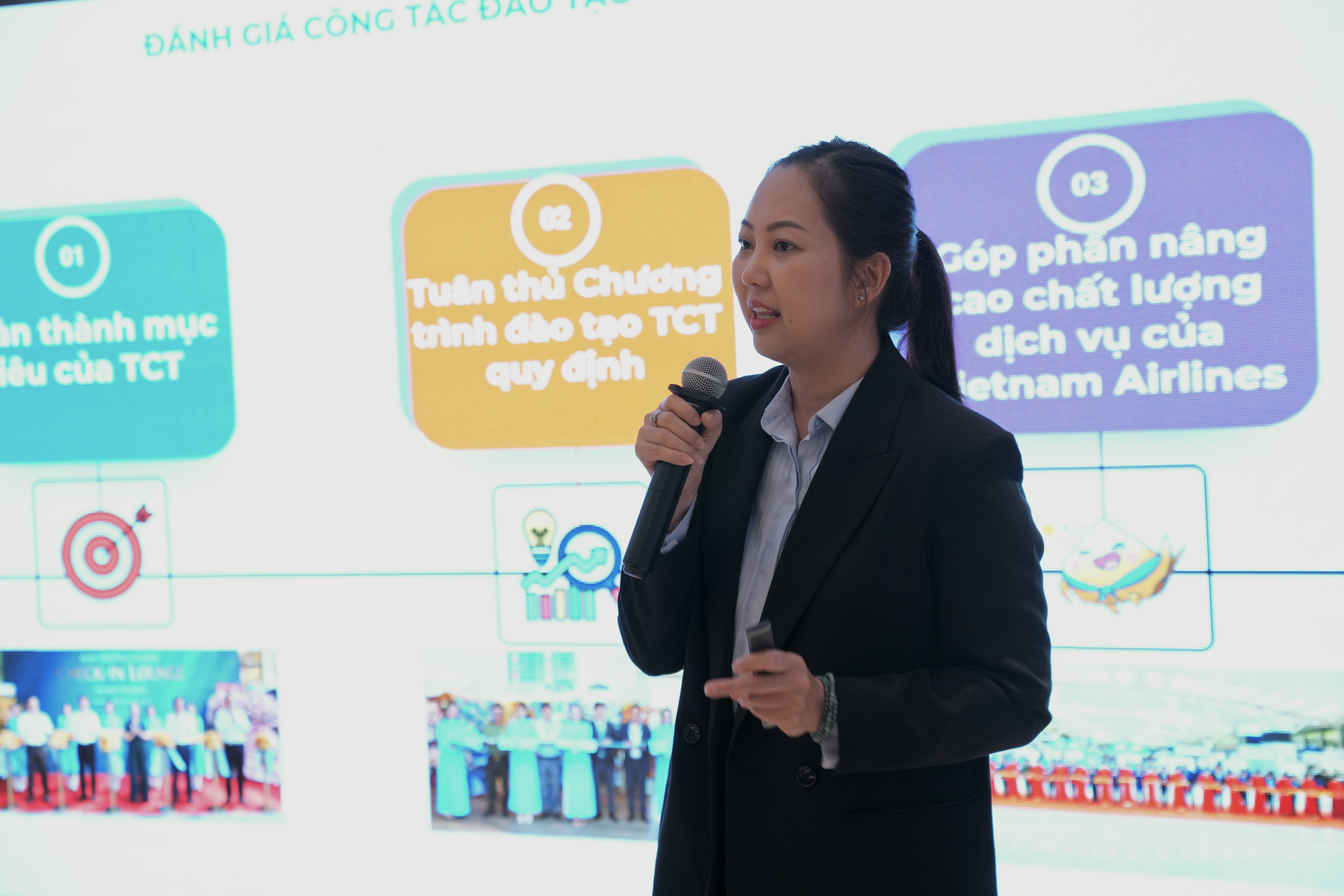 Hội thảo cũng ghi nhận nhiều tham luận thực tiễn từ đại diện Đoàn Tiếp viên gồm các Giảng viên – Tiếp viên trưởng Nguyễn Thị Bạch Nga, Nguyễn Thị Bích Ngà, Nguyễn Thị Hằng và Trần Mai Khanh. Các chia sẻ tập trung làm rõ hành trình lan toả Văn hoá nâng tầm từ môi trường đào tạo đến thực tế khai thác vai trò của đội ngũ giảng viên nâng tầm cùng những kỹ năng cần thiết trong giảng dạy và việc ứng dụng các công cụ công nghệ nhằm nâng cao hiệu quả đào tạo.