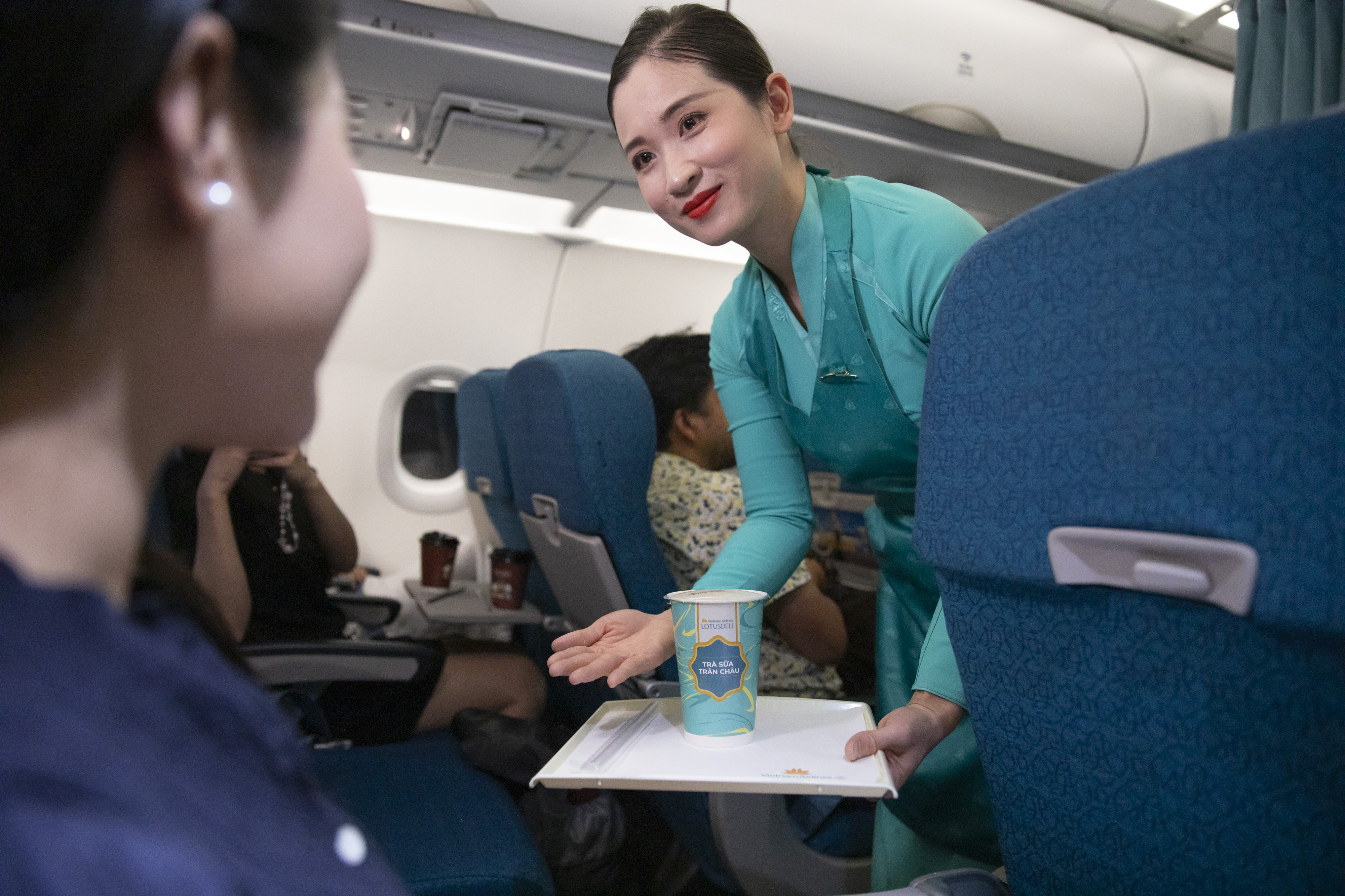 Nhiều hành khách chia sẻ, việc được thưởng thức một ly trà sữa chất lượng, đúng vị ngay trên tàu bay là trải nghiệm đáng nhớ. Hương vị ngọt ngào từ trà sữa giúp chuyến bay trở nên dễ chịu hơn, nhất là với những ai phải di chuyển dài hoặc cần “nạp” năng lượng cho mỗi chuyến đi. “