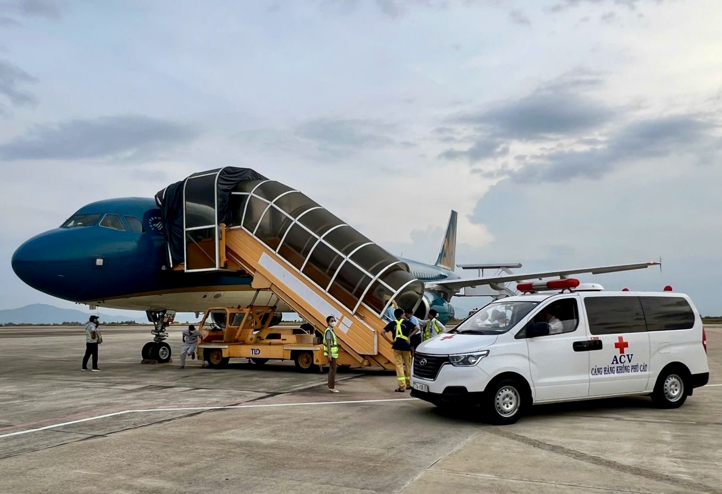 Máy bay hạ cánh an toàn tại sân bay Phù Cát lúc 17h41 cùng ngày. Tại đây, Vietnam Airlines đã phối hợp với xe cứu thương và bác sĩ Trung đoàn 925 đưa hành khách đến Bệnh viện Đa khoa tỉnh Bình Định. Trong quá trình vận chuyển, hành khách vẫn trong tình trạng tỉnh táo và được liên hệ người nhà đến bệnh viện. Nhân viên Vietnam Airlines luôn đi cùng để hỗ trợ các thủ tục nhập viện, bàn giao hành lý và liên hệ với gia đình.