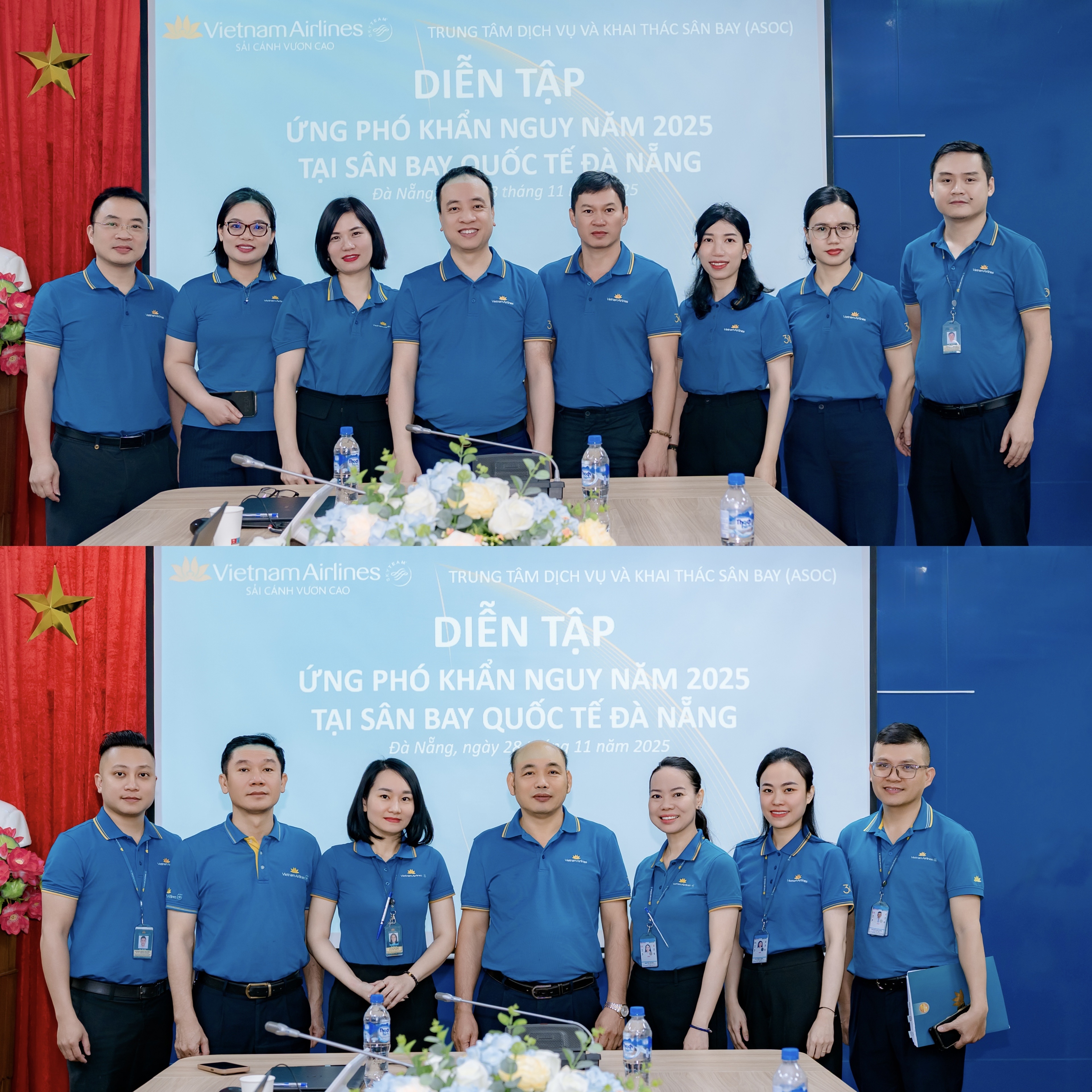 Ngay khi sân bay Đà Nẵng tuyên bố tình huống khẩn nguy toàn phần, hệ thống ASOC đã kích hoạt đầy đủ các quy trình ứng phó. Sự phối hợp chặt chẽ giữa các đội ứng phó khẩn nguy ASOC tại ba sân bay Đà Nẵng – Nội Bài – Tân Sơn Nhất thể hiện tính đồng bộ, liên kết và xuyên suốt, bảo đảm mô hình điều hành khẩn nguy thống nhất trên toàn mạng bay. Trong suốt quá trình diễn tập, đại diện hãng hàng không tuyệt đối không phát ngôn ngoài thẩm quyền, tuân thủ nghiêm quy trình phát ngôn của Tổng công ty.