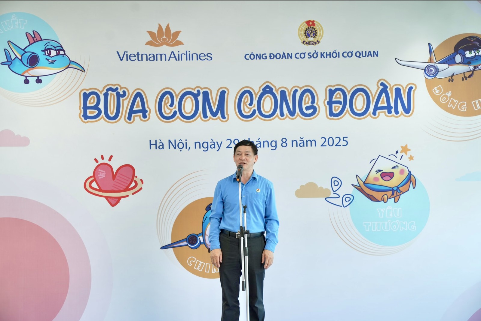 Trong không khí thân mật, ông Đào Mạnh Kiên, Chủ tịch Công đoàn TCT cũng bày tỏ sự tri ân sâu sắc tới toàn thể người lao động. Ông cho biết, bữa cơm hôm nay nằm trong chuỗi sự kiện chào mừng 30 năm thành lập Vietnam Airlines, 80 năm Quốc khánh và 96 năm Ngày thành lập Công đoàn Việt Nam. Chương trình “Bữa cơm Công đoàn” đã được Công đoàn Tổng công ty triển khai đến các công đoàn cơ sở trực thuộc, và với Khối Cơ quan, đây là lần đầu tiên Công đoàn cơ sở khối cơ quan TCT tổ chức nhưng đã nhận được sự quan tâm đặc biệt từ lãnh đạo.
