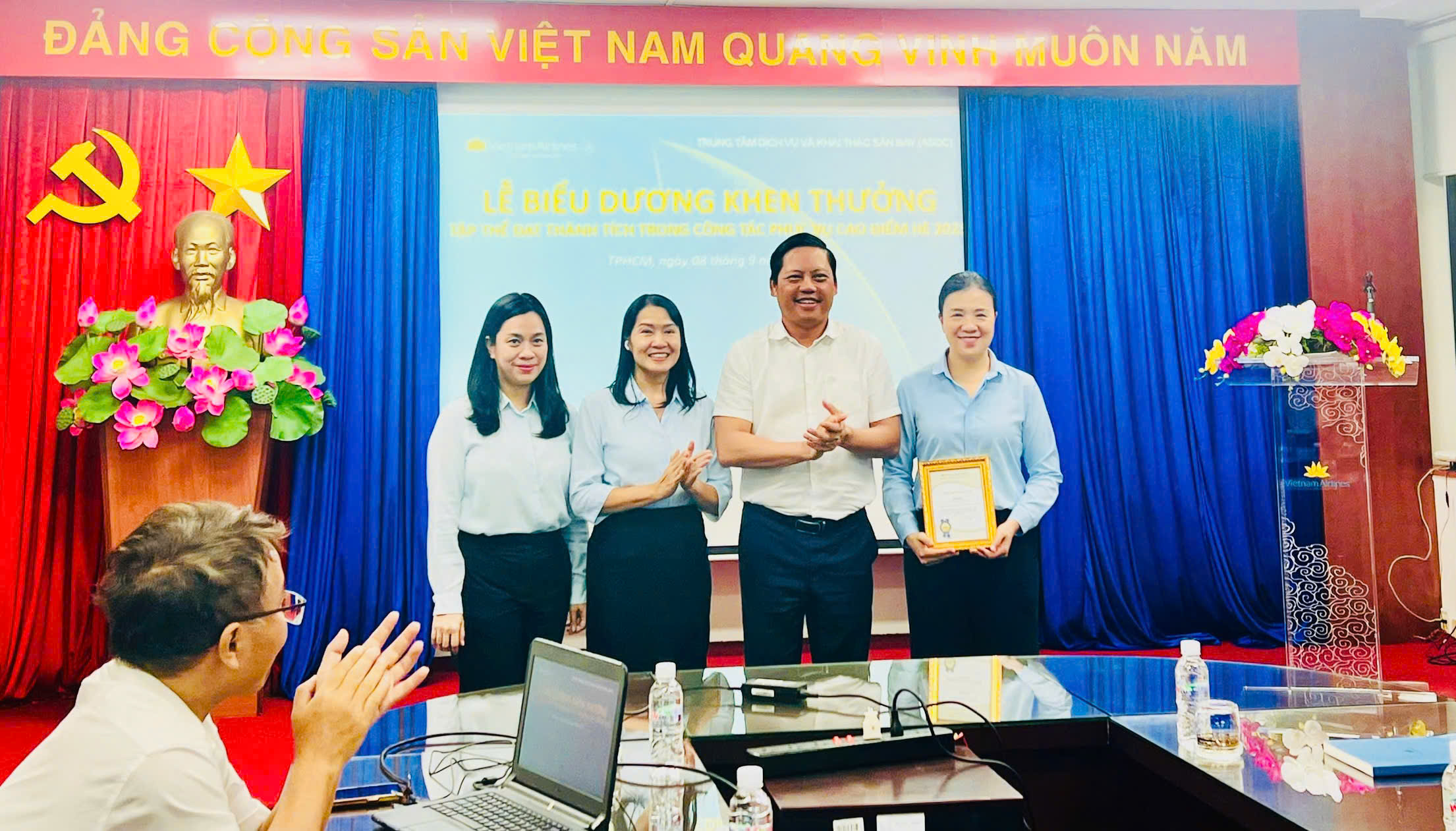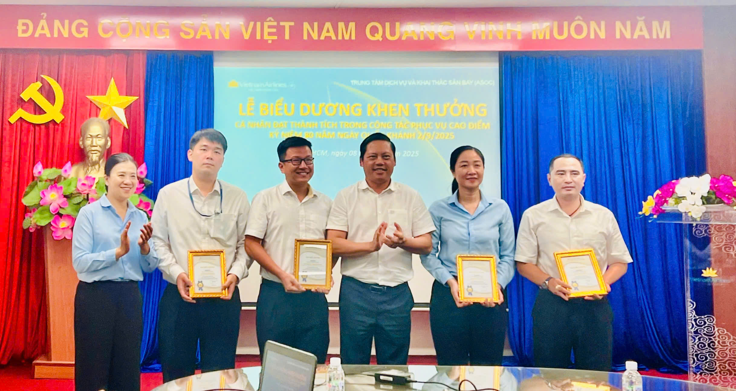 Ban Giám đốc ASOC đã biểu dương tinh thần nỗ lực, đoàn kết và chuyên nghiệp của toàn thể CBNV trong tháng 8. Nhiều tập thể, cá nhân xuất sắc đã được vinh danh với thành tích nổi bật trong phục vụ, là tấm gương tận tụy, lan tỏa cảm hứng, góp phần khẳng định uy tín của ASOC và Vietnam Airlines..