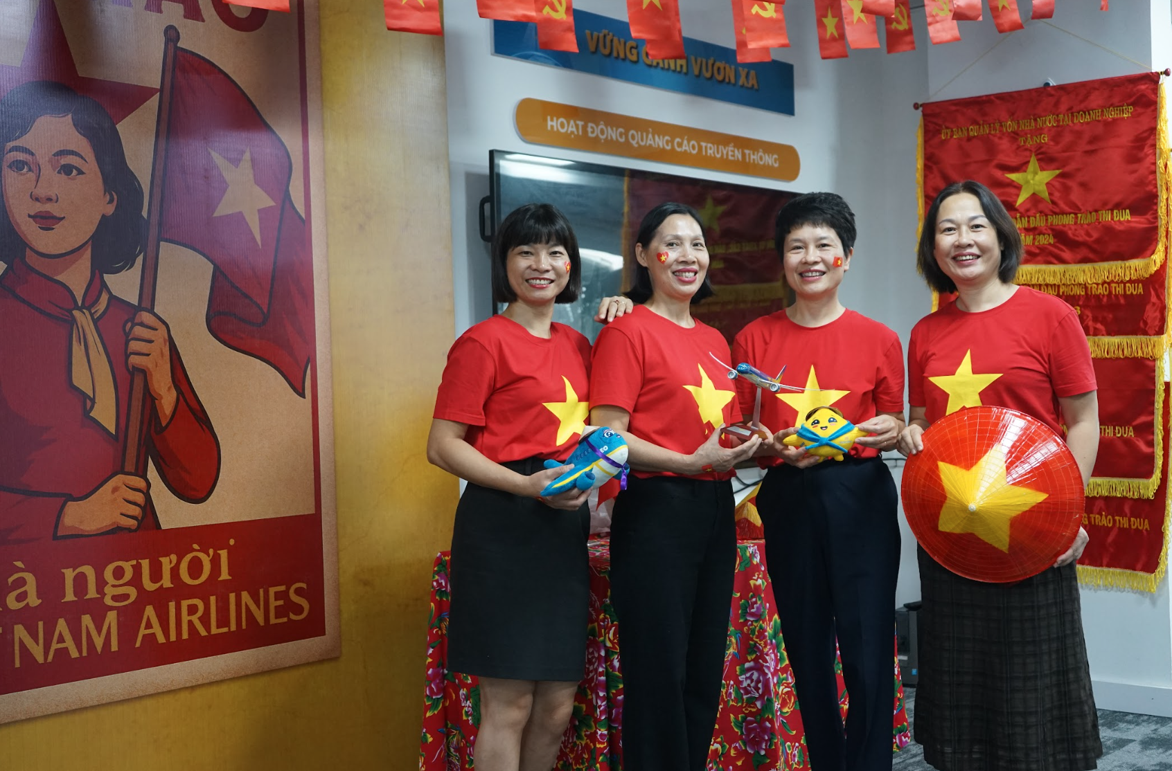 Ngay từ những ngày đầu tháng 8, không khí tại Ban Tài chính Kế toán của Vietnam Airlines đã trở nên sôi động khác thường. Mỗi bàn làm việc, phòng họp đều được trang trí bằng cờ đỏ sao vàng, tạo nên một không gian vừa trang nghiêm vừa tràn đầy hứng khởi.