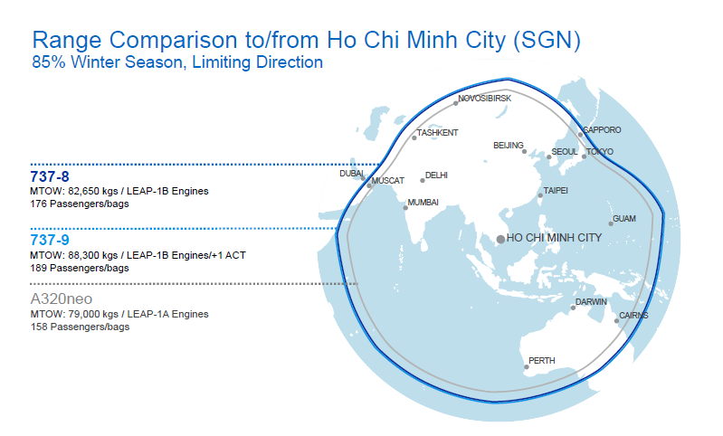 Tầm bay của B737 và một số tàu bay cùng phân khúc
