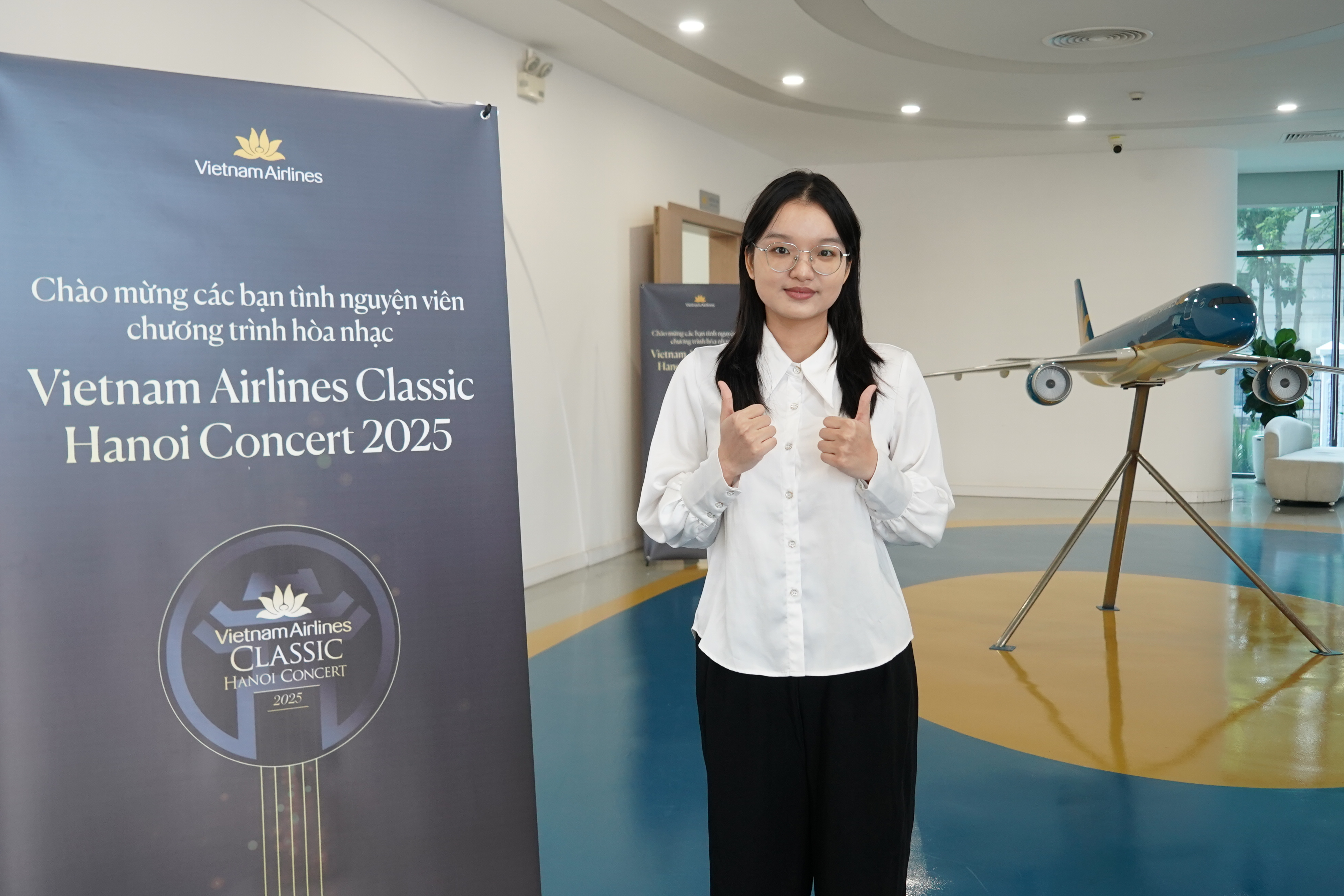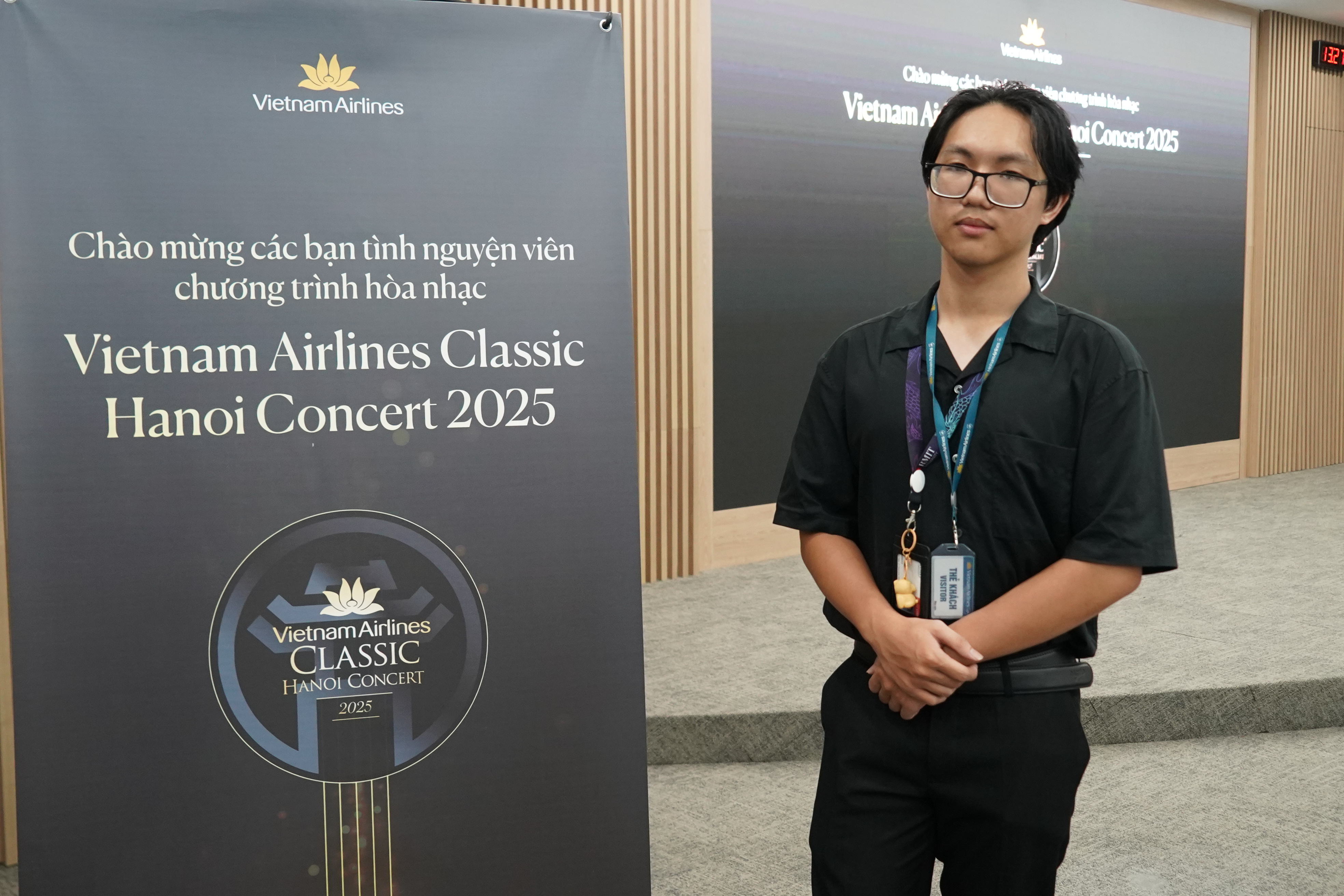 Có bố mẹ đang công tác tại Vietnam Airlines, ngay khi được báo tin về việc buổi Hòa nhạc đang tuyển TNV, Bùi Minh Trí, sinh viên năm 3 Đại học RMIT và cũng là một người yêu âm nhạc đã không chần chừ ứng tuyển ngay. Minh Trí cho biết, bản thân đã có kinh nghiệm tổ chức sự kiện từ những năm cấp 3 nên em hy vọng được học hỏi nhiều hơn nữa trong một sự kiện âm nhạc chuyên nghiệp, đẳng cấp quốc tế như Vietnam Airlines Classic – Hanoi Concert 2025.