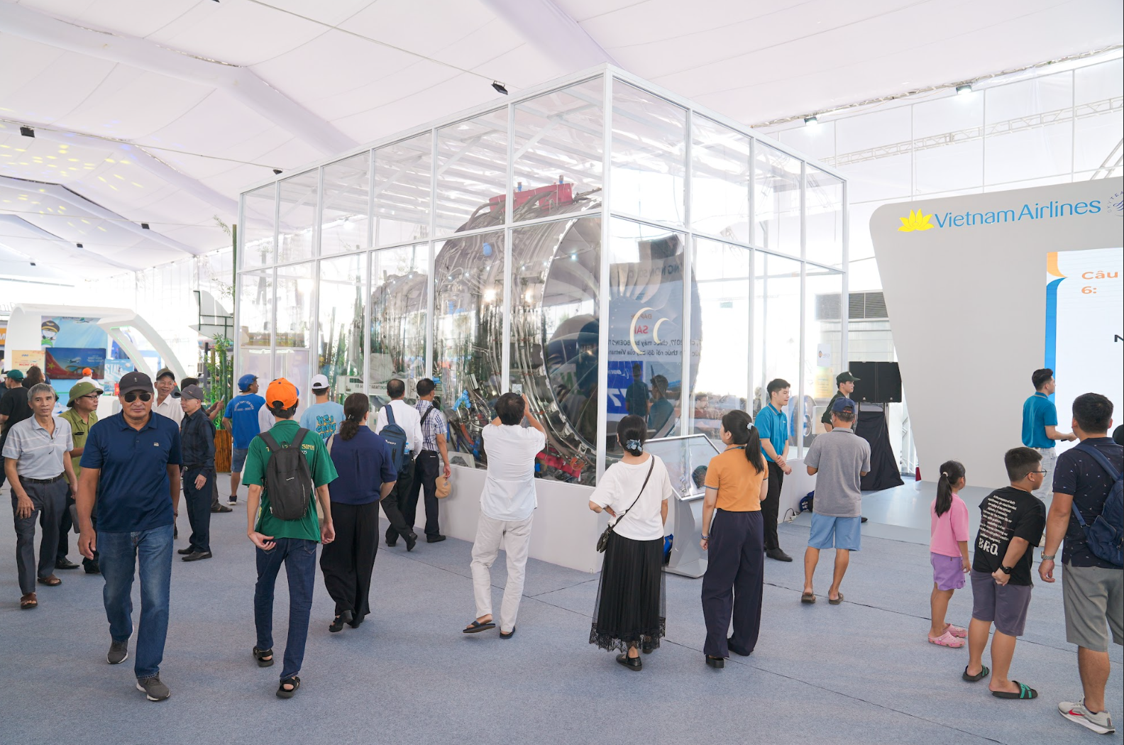 Không gian trưng bày của Vietnam Airlines tại Triển lãm Thành tựu đất nước, với chủ đề “80 năm hành trình Độc lập – Tự do – Hạnh phúc”, có diện tích lên tới 1.500 m², lớn nhất trong các đơn vị hàng không. Nằm trong phân khu “Khát vọng bầu trời”, gian trưng bày mang thông điệp “Cùng non sông cất cánh”, được thiết kế như một chuyến bay trải nghiệm độc đáo, đưa khách tham quan ngược dòng thời gian, sống lại hành trình 30 năm hình thành và phát triển của Hãng hàng không Quốc gia Việt Nam. Khu trưng bày được thiết kế theo 5 cột mốc phát triển của Hãng gồm: Lịch sử và khát vọng chinh phục bầu trời; Hệ sinh thái dịch vụ mặt đất và những nỗ lực phát triển xanh; Dịch vụ trên không và đội ngũ phi công, tiếp viên; Đội tàu bay hiện đại, chuyển đổi số, công nghệ mô phỏng và thực tế ảo và Hệ thống mạng bay toàn cầu. |