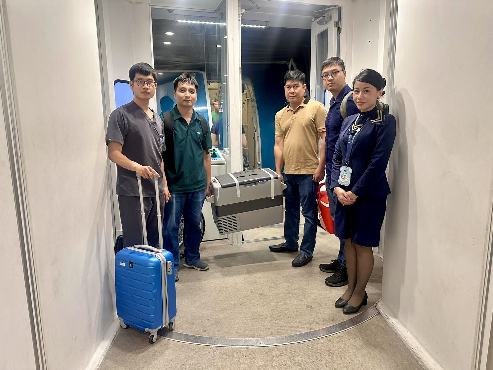 Đồng thời, chuyến bay VN218 TP.HCM – Hà Nội do Vietnam Airlines khai thác cũng vận chuyển đoàn y bác sĩ của Bệnh viện 108 và Bệnh viện Chợ Rẫy mang theo một phần tạng khác từ cùng người hiến, kịp thời đưa ra Hà Nội để tiến hành ca ghép cho bệnh nhân tại Bệnh viện 108.