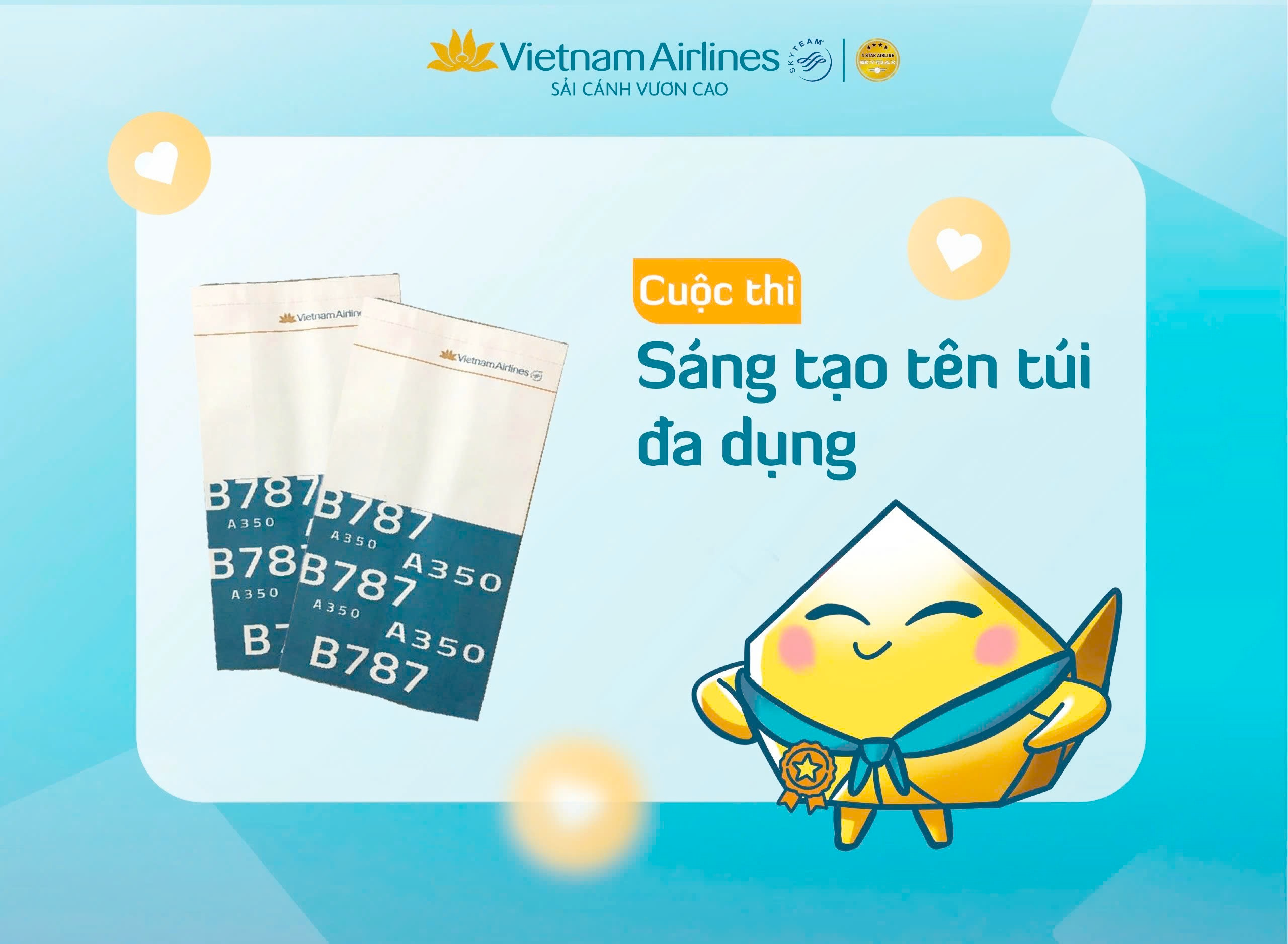 - Để lại dấu ấn cá nhân: Tên gọi bạn sáng tạo ra có thể trở thành tên gọi chính thức của sản phẩm, đồng hành cùng VNA trên mọi chuyến bay.