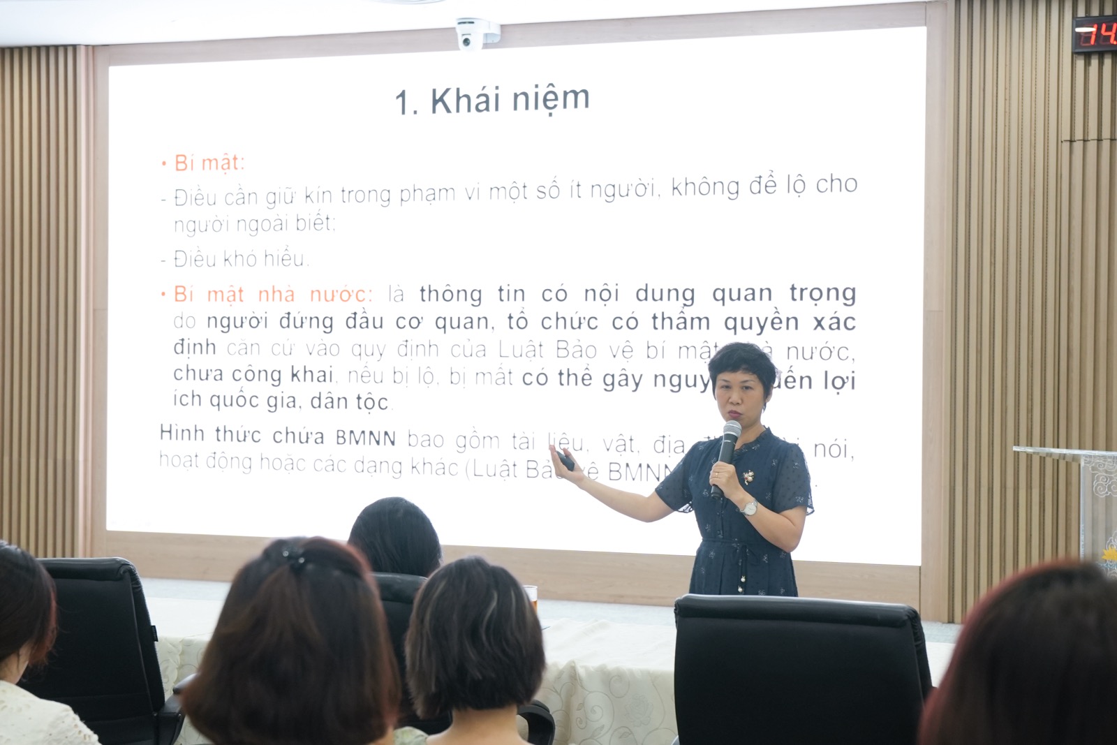 Ngoài ra, chương trình tập huấn còn đi sâu vào nghiệp vụ bảo vệ bí mật Nhà nước. ThS. Lê Thị Nguyệt Lưu nhấn mạnh những nội dung cốt lõi của Luật Bảo vệ bí mật Nhà nước, bao gồm việc ban hành văn bản pháp luật, quyết định giải mật, công bố danh mục bí mật, bảo đảm cơ sở vật chất, kỹ thuật và chính sách cho lực lượng thực hiện công tác này. Các hành vi nghiêm cấm như làm lộ, chiếm đoạt, mua bán, sao chụp trái phép hay lợi dụng bảo vệ bí mật Nhà nước để che giấu hành vi vi phạm cũng được nêu rõ.