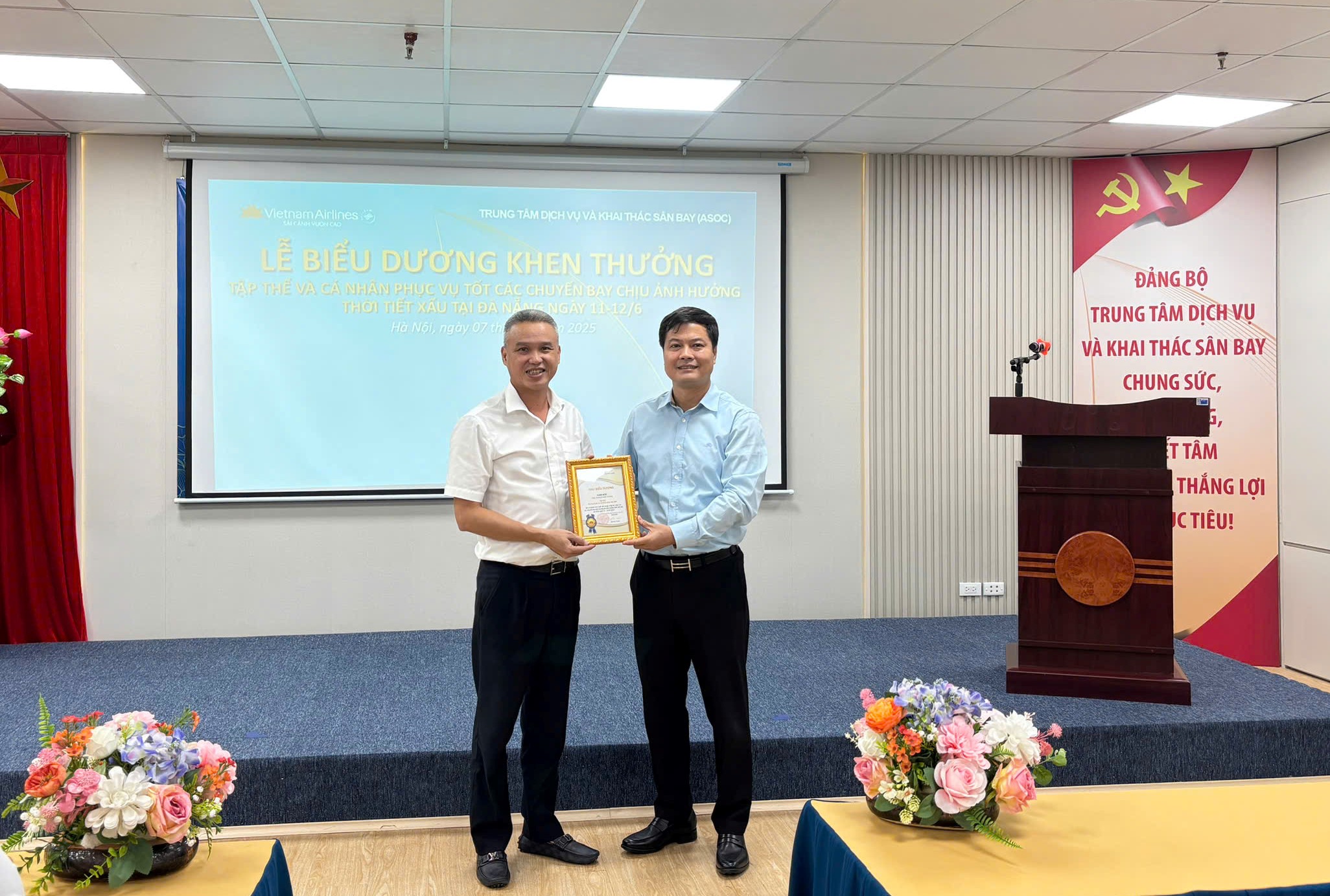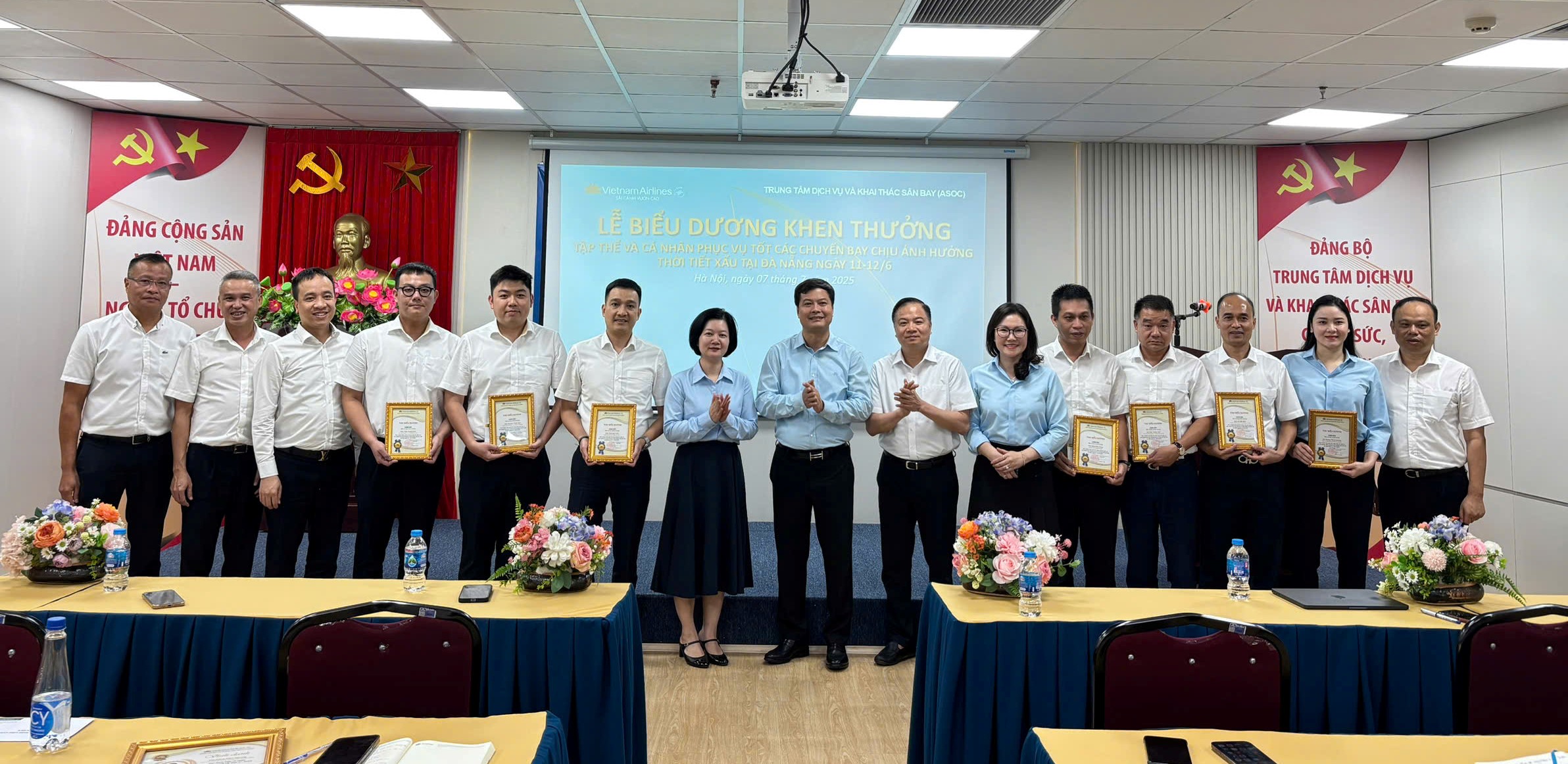 Bên cạnh đó, tập thể Phòng Dịch vụ và Khai thác Nội Bài cùng một số cá nhân đã được biểu dương vì đã kịp thời phối hợp, xử lý hiệu quả sự cố thời tiết xấu tại Đà Nẵng ngày 11–12/6/2025, đảm bảo an toàn khai thác và quyền lợi hành khách. Đây là minh chứng rõ nét cho năng lực ứng phó và tinh thần chủ động của ASOC trong mọi hoàn cảnh.
