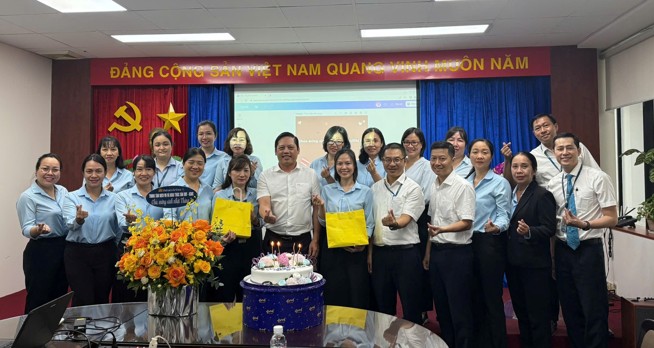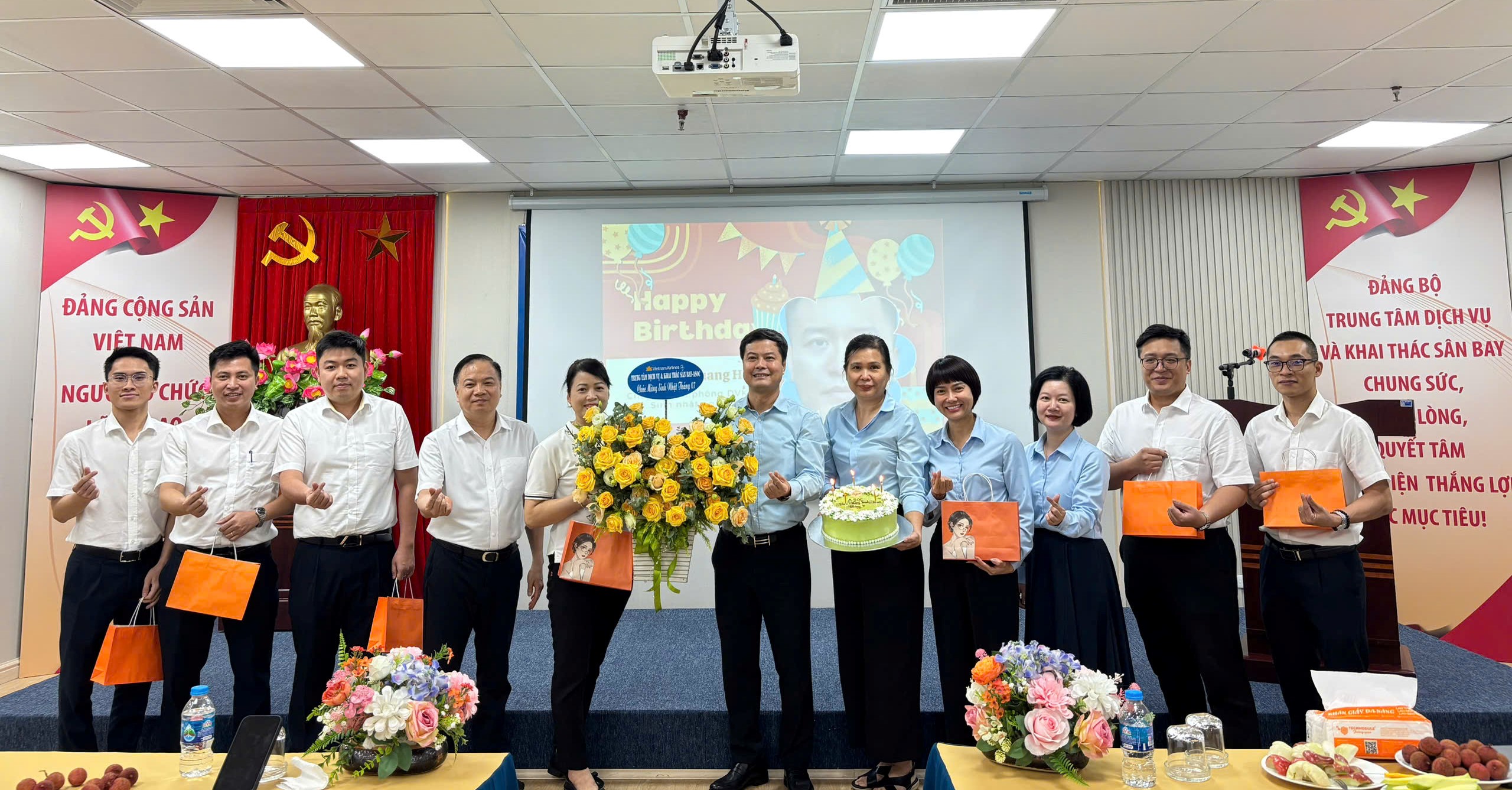 Không khí buổi lễ trở nên ấm áp và gắn kết hơn với chương trình mừng sinh nhật cho các CBNV có ngày sinh trong tháng 7, thể hiện nét đẹp văn hóa và tinh thần quan tâm sâu sắc của Ban Giám đốc và Công đoàn cơ sở đối với người lao động.