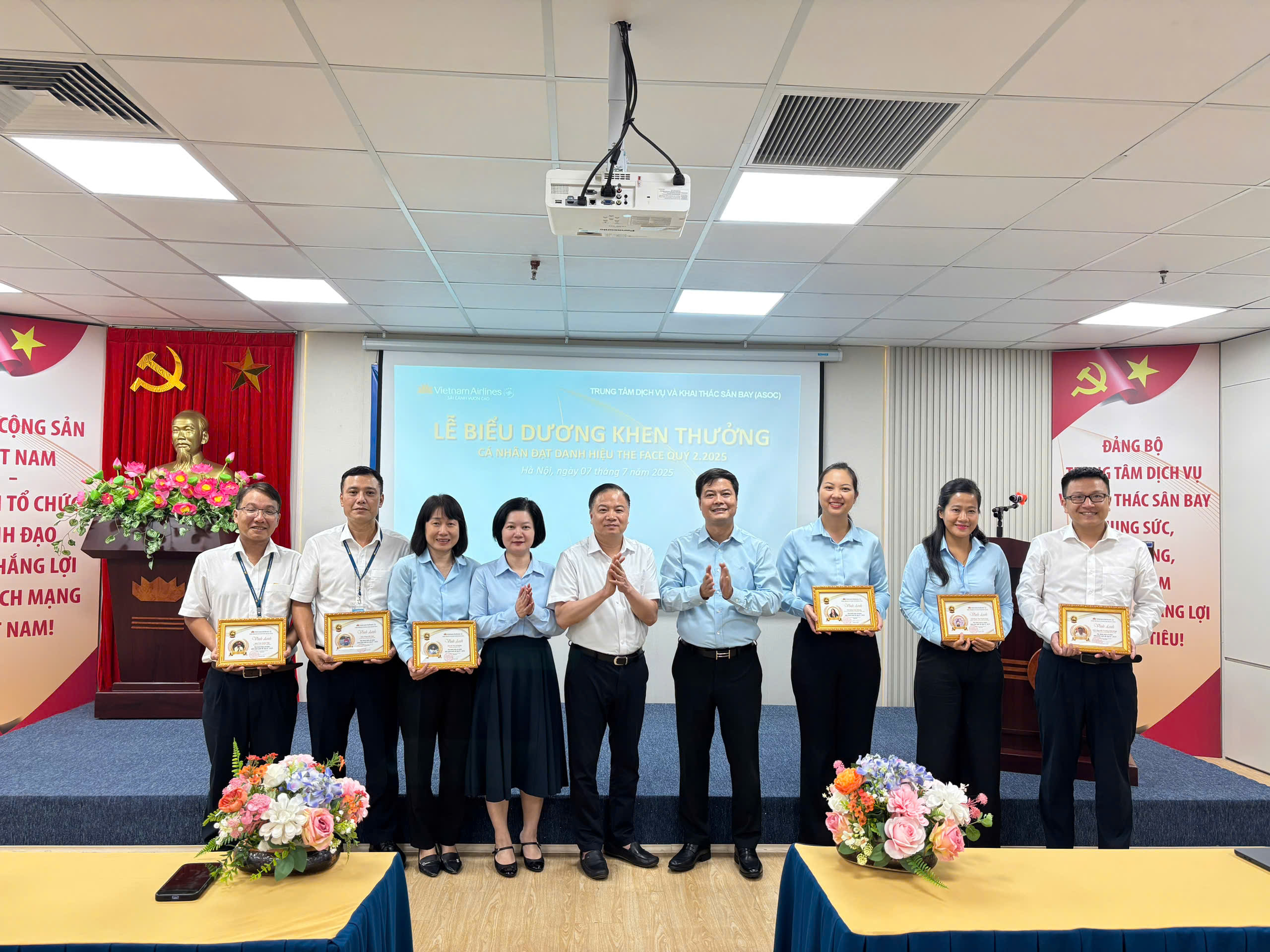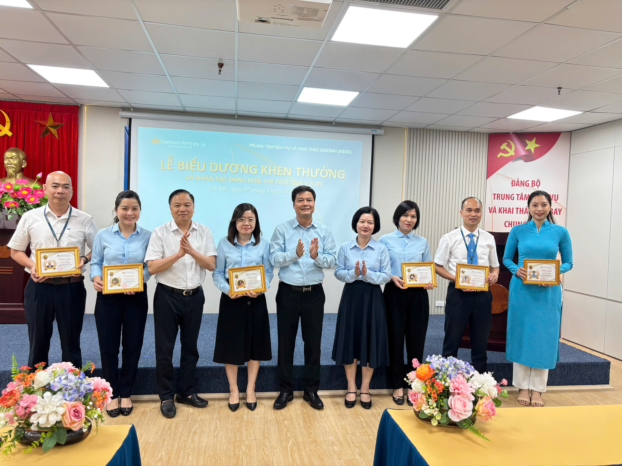 Các cá nhân xuất sắc đạt danh hiệu “The Face ASOC Quý II/2025” đã được vinh danh tại buổi lễ – những gương mặt tiêu biểu cho sự tận tụy, trách nhiệm và tinh thần phục vụ chuyên nghiệp, luôn nỗ lực hết mình vì mục tiêu nâng cao chất lượng dịch vụ, mang đến trải nghiệm tốt nhất cho hành khách và góp phần khẳng định uy tín của ASOC và Tổng công ty.