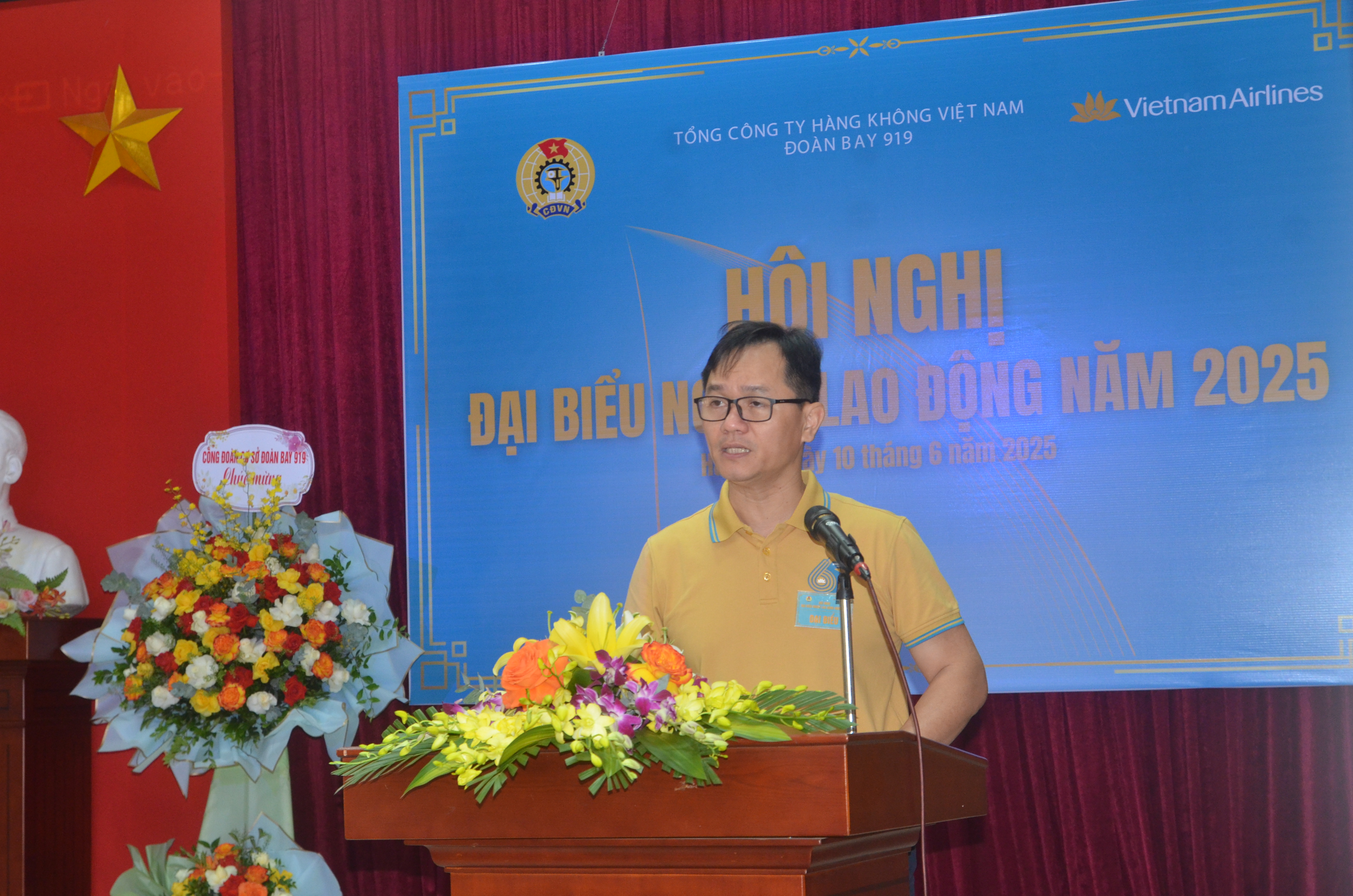 Thay mặt BCH Công đoàn Đoàn bay, Phó Chủ tịch Công đoàn Trương Việt Dũng trình bày báo cáo của BCH Công đoàn đánh giá tình hình tổ chức Hội nghị Người lao động tại các đơn vị; Kết quả kiểm tra, giám sát tình hình thực hiện Hợp đồng lao động, Thỏa ước lao động tập thể và Nội quy lao động; Kết quả đối thoại định kỳ năm 2024, phương hướng đối thoại năm 2025; đồng thời cũng nêu một số ý kiến, kiến nghị của người lao động về chế độ chính sách và các giải pháp trong hoạt động của Đoàn bay 919.