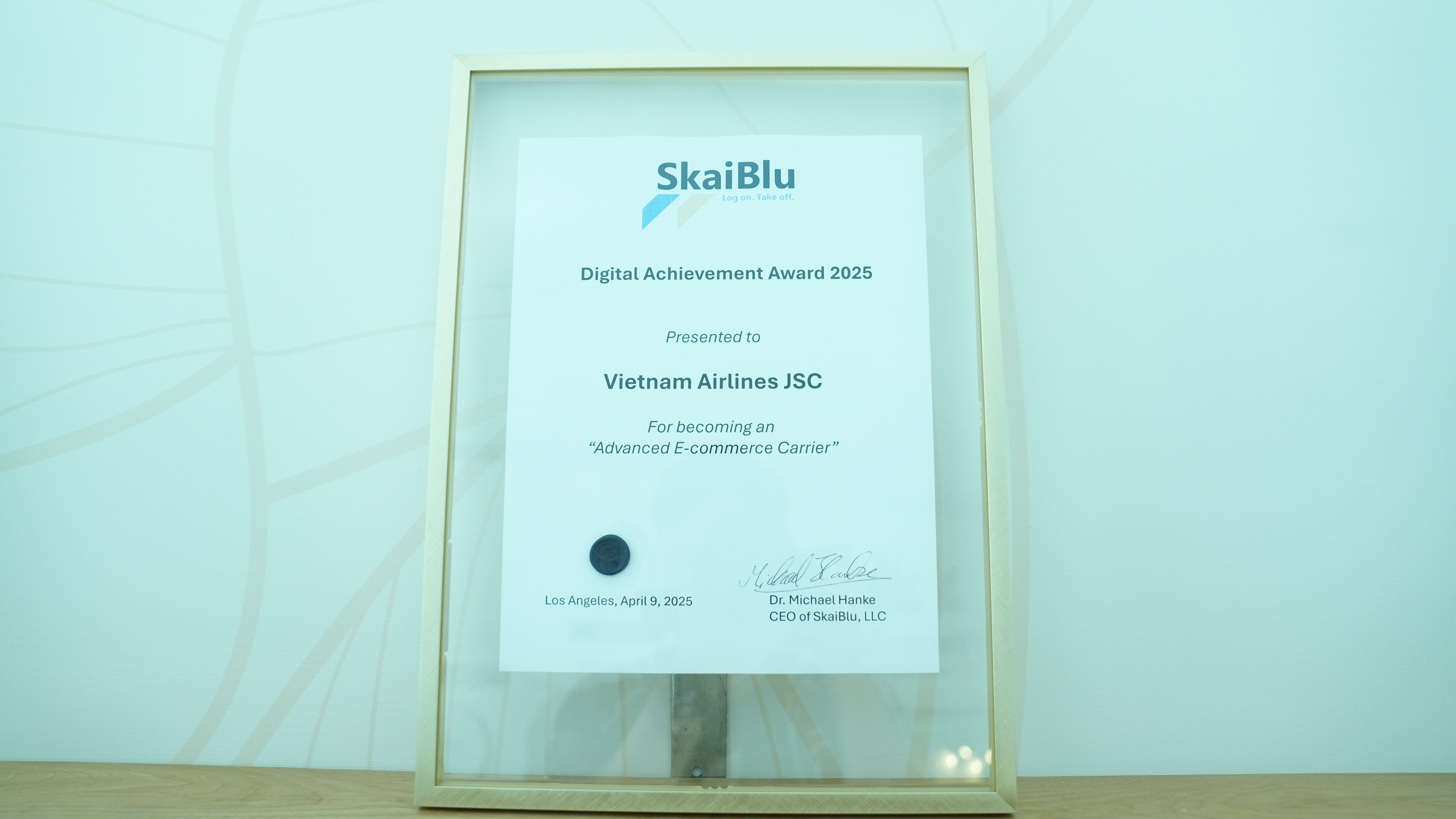 Chứng chỉ được trao bởi SkaiBlu – công ty tư vấn thương mại điện tử hàng đầu thế giới trong lĩnh vực hàng không. Để đạt được chứng nhận này, Vietnam Airlines đã vượt qua các tiêu chí đánh giá khắt khe dựa trên Digital Airline Score (DAS) – phương pháp độc quyền của SkaiBlu nhằm đo lường hiệu quả kỹ thuật số toàn diện của một hãng hàng không.