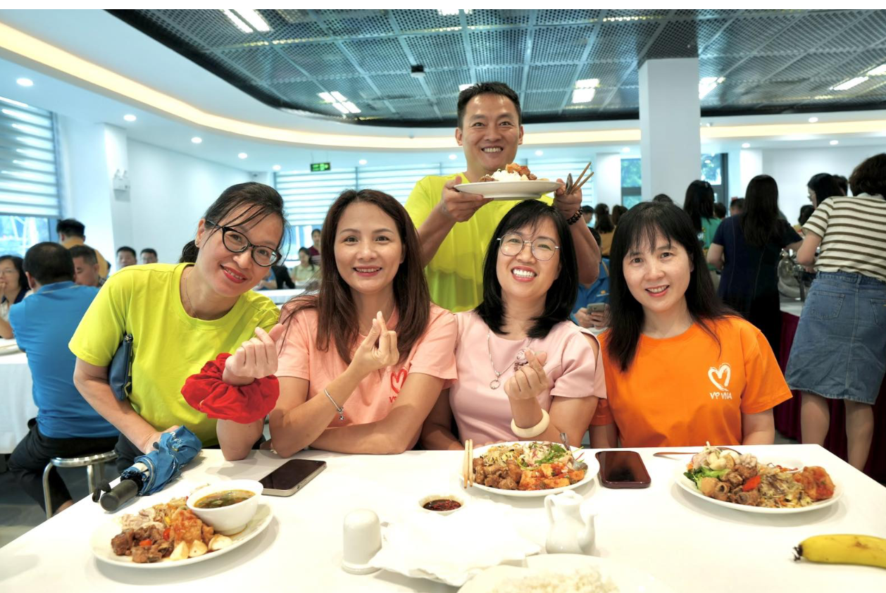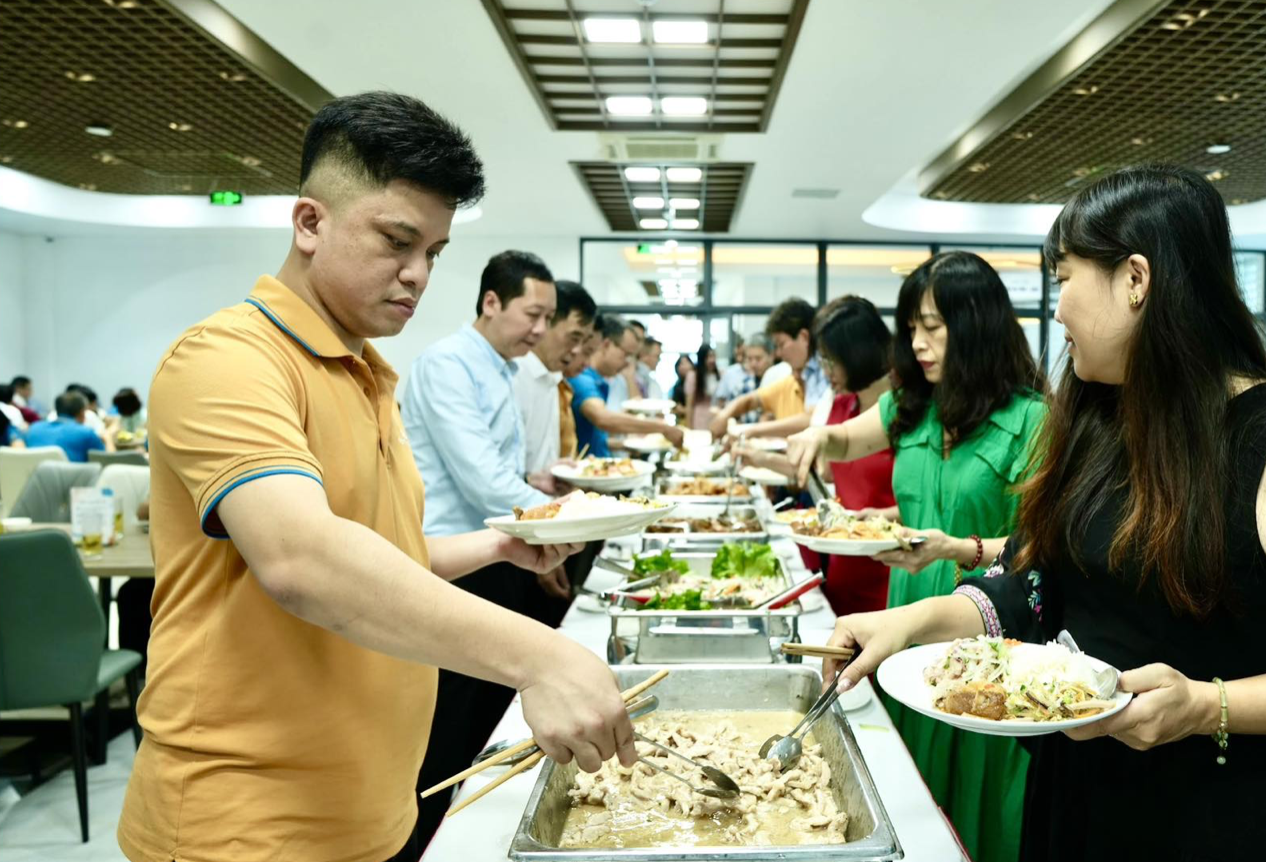 Bữa cơm công đoàn của Công đoàn Cơ sở Khối cơ quan TCT dịp kỷ niệm 80 năm Cách mạng Tháng Tám, Quốc khánh 2/9 và 96 năm Ngày thành lập Công đoàn Việt Nam mang đến khoảnh khắc gắn kết, tạo thêm động lực sau những giờ làm việc căng thẳng. (Ảnh: VNA)