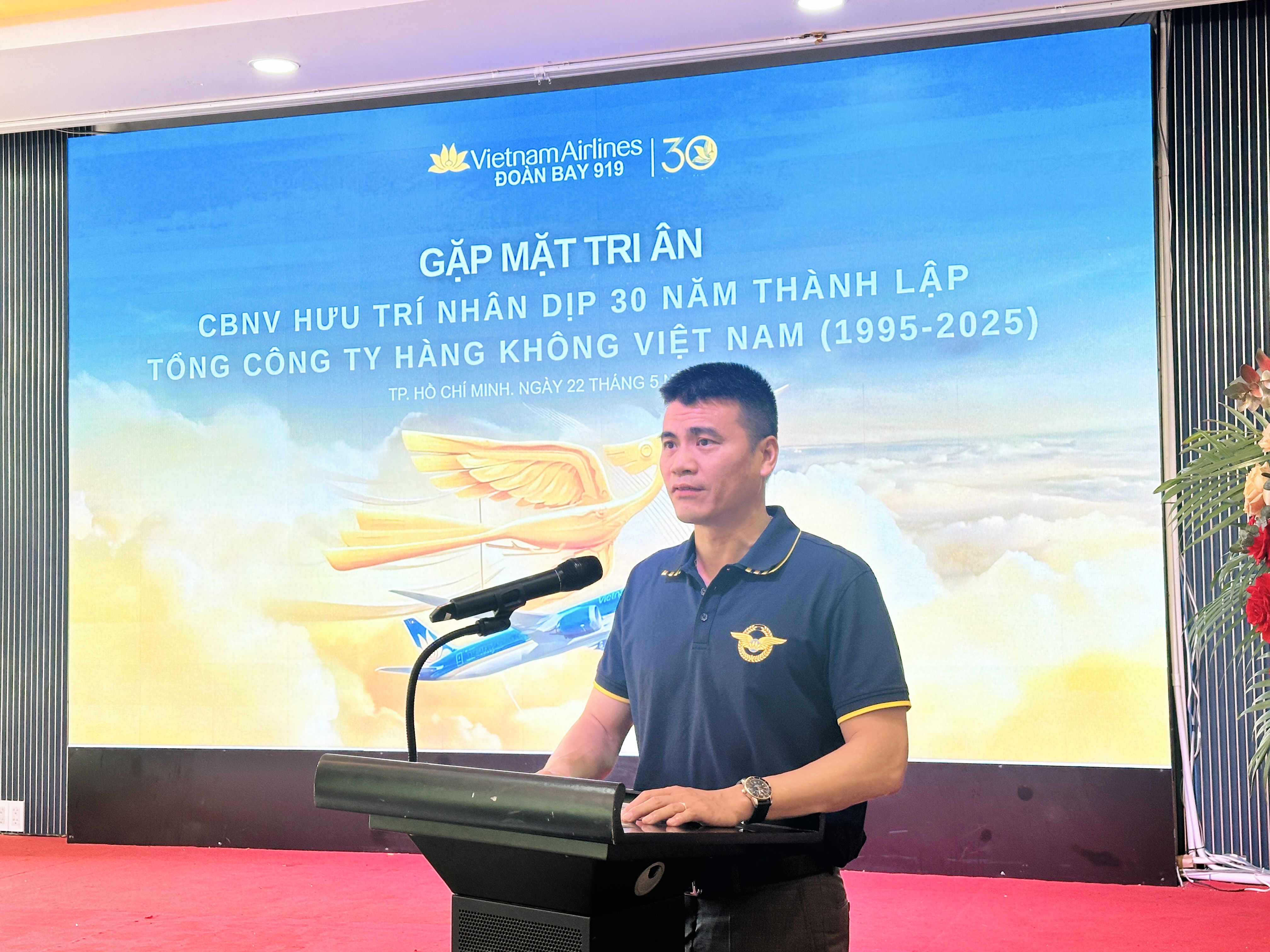 Phó Tổng giám đốc xúc động chia sẻ sự tri ân: “Xin gửi lời cảm ơn chân thành đến các cán bộ, nhân viên các thế hệ, cũng như hàng triệu triệu khách hàng thân thiết đã đồng hành cùng Vietnam Airlines trong suốt 30 năm qua. Với sự đoàn kết, nỗ lực không ngừng nghỉ và tầm nhìn chiến lược đúng đắn, chắc chắn các thành viên Vietnam Airlines sẽ cùng nhau kiến tạo những kỳ tích mới, đưa Vietnam Airlines tiếp tục bay cao và bay xa hơn nữa, khẳng định vị thế của Tổng công ty Hàng không Việt Nam, tập đoàn kinh tế mạnh và trở thành niềm tự hào của Việt Nam trên trường quốc tế. Buổi gặp gỡ hôm nay không chỉ là dịp để tri ân, mà còn là sự tiếp nối – để thế hệ hôm nay được lắng nghe, được học hỏi và được tiếp lửa từ các bậc tiền bối. Chúng tôi mong rằng, các đồng chí, các cô chú, anh chị sẽ tiếp tục dõi theo, đồng hành, chia sẻ kinh nghiệm quý báu, và luôn là điểm tựa tinh thần vững chắc cho các thế hệ sau trên hành trình chinh phục bầu trời”