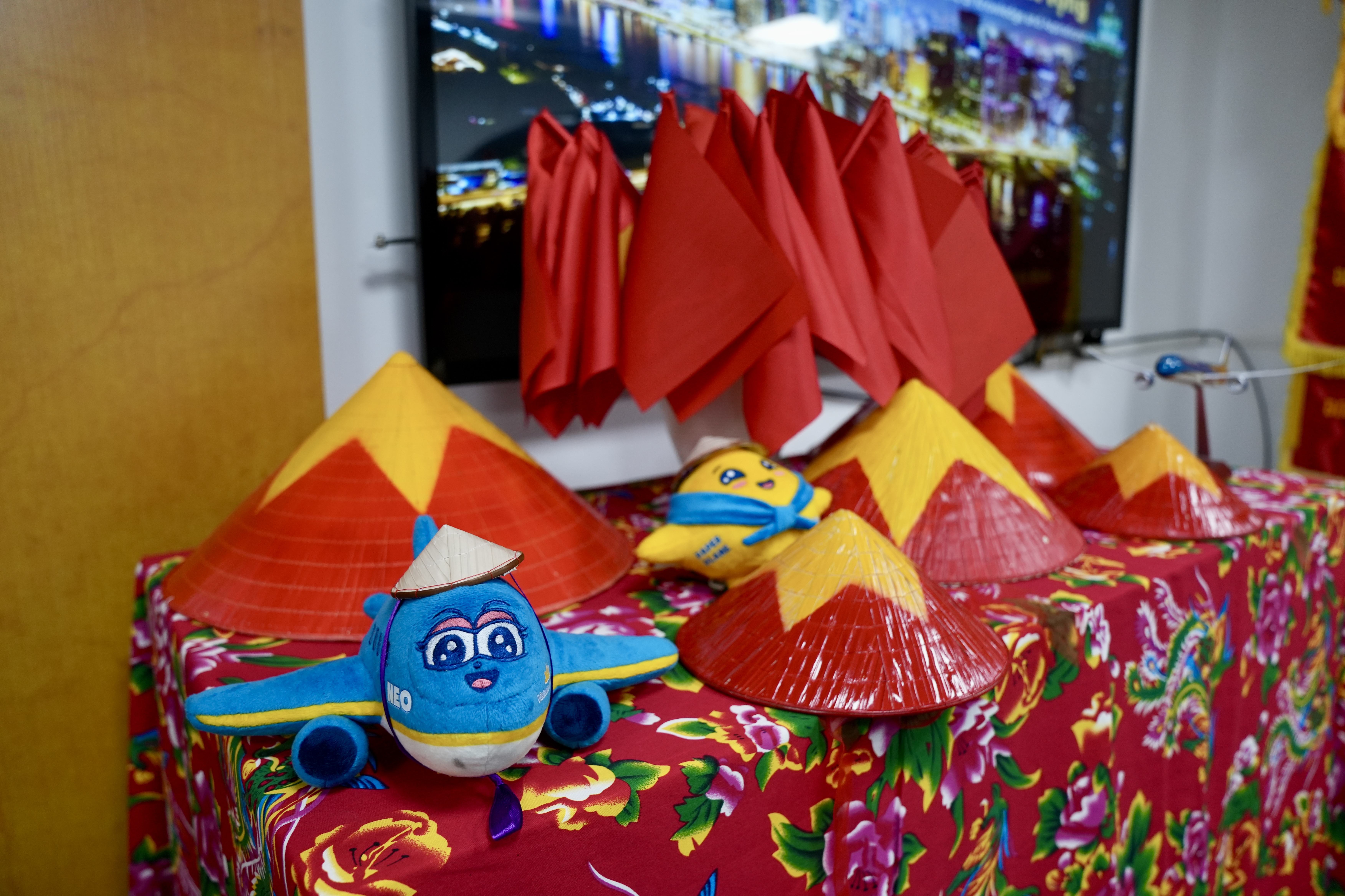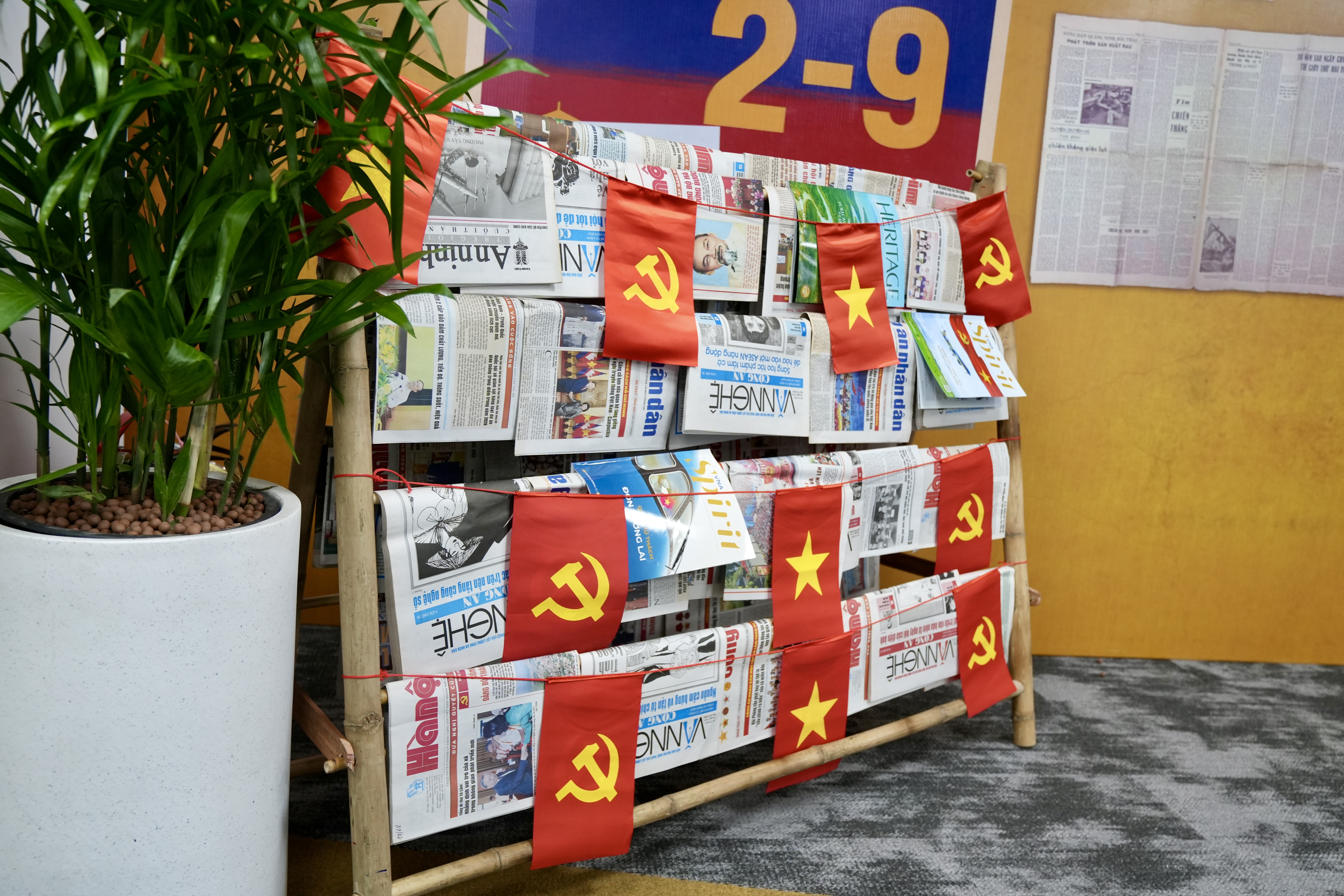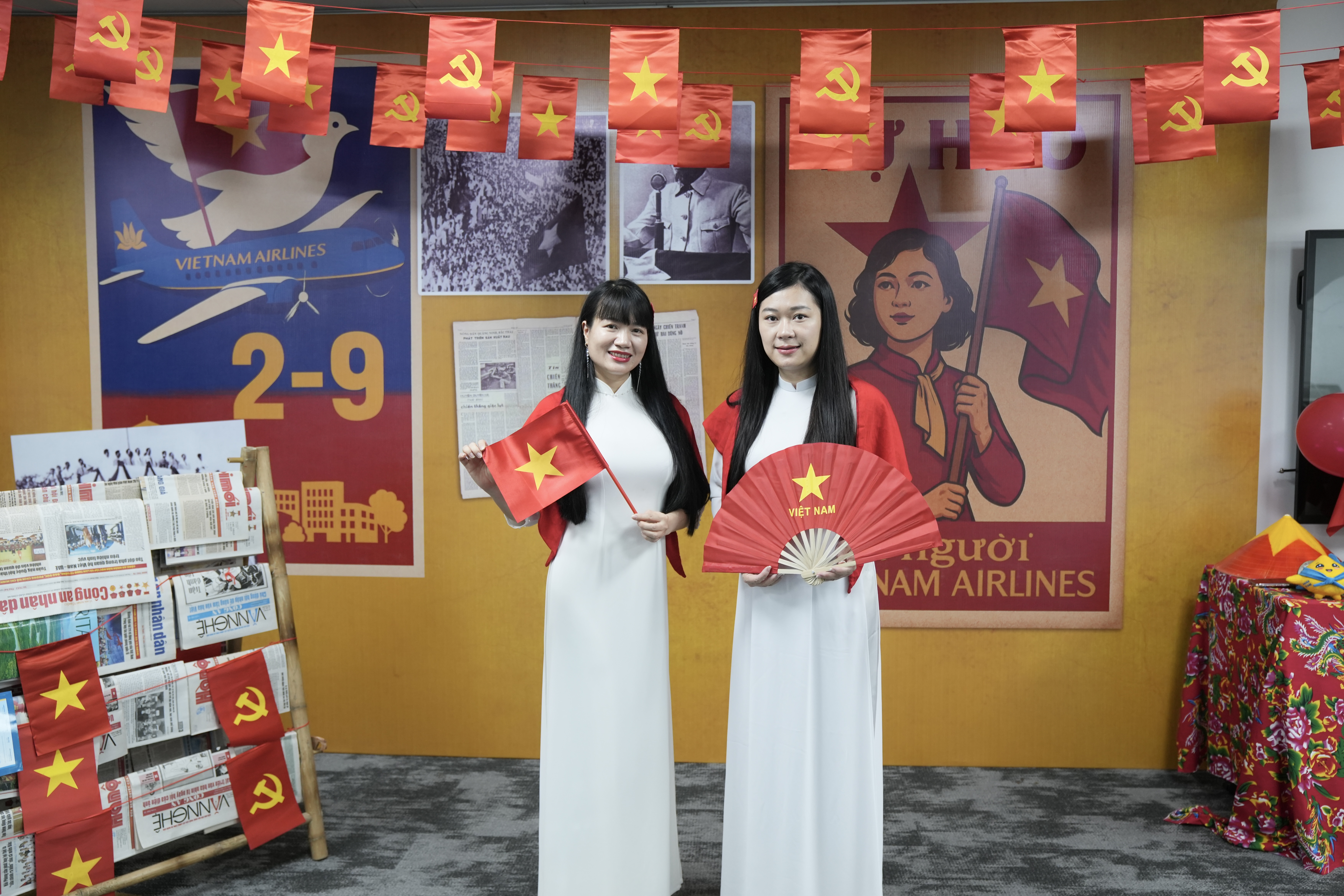 Từ phông nền in hình Quốc kỳ, những dải cờ nhỏ xinh, mũ nón lá sơn đỏ vàng cho tới góc báo chí với các ấn phẩm Heritage, Spirit, Nhân Dân… tất cả đều được sắp đặt khéo léo, tạo nên một bức tranh vừa hiện đại, vừa đậm chất truyền thống. Nhờ sự đầu tư công phu, góc trang trí đã mang đến cho VNAer không chỉ cảm giác tự hào trong ngày lễ lớn, mà còn là niềm vui khi được cùng nhau check-in, chia sẻ khoảnh khắc đáng nhớ.
