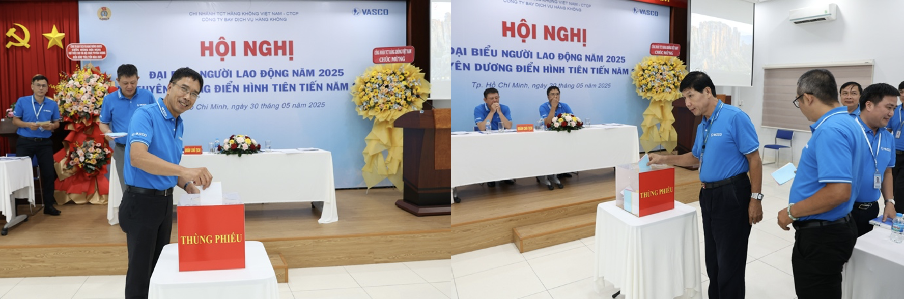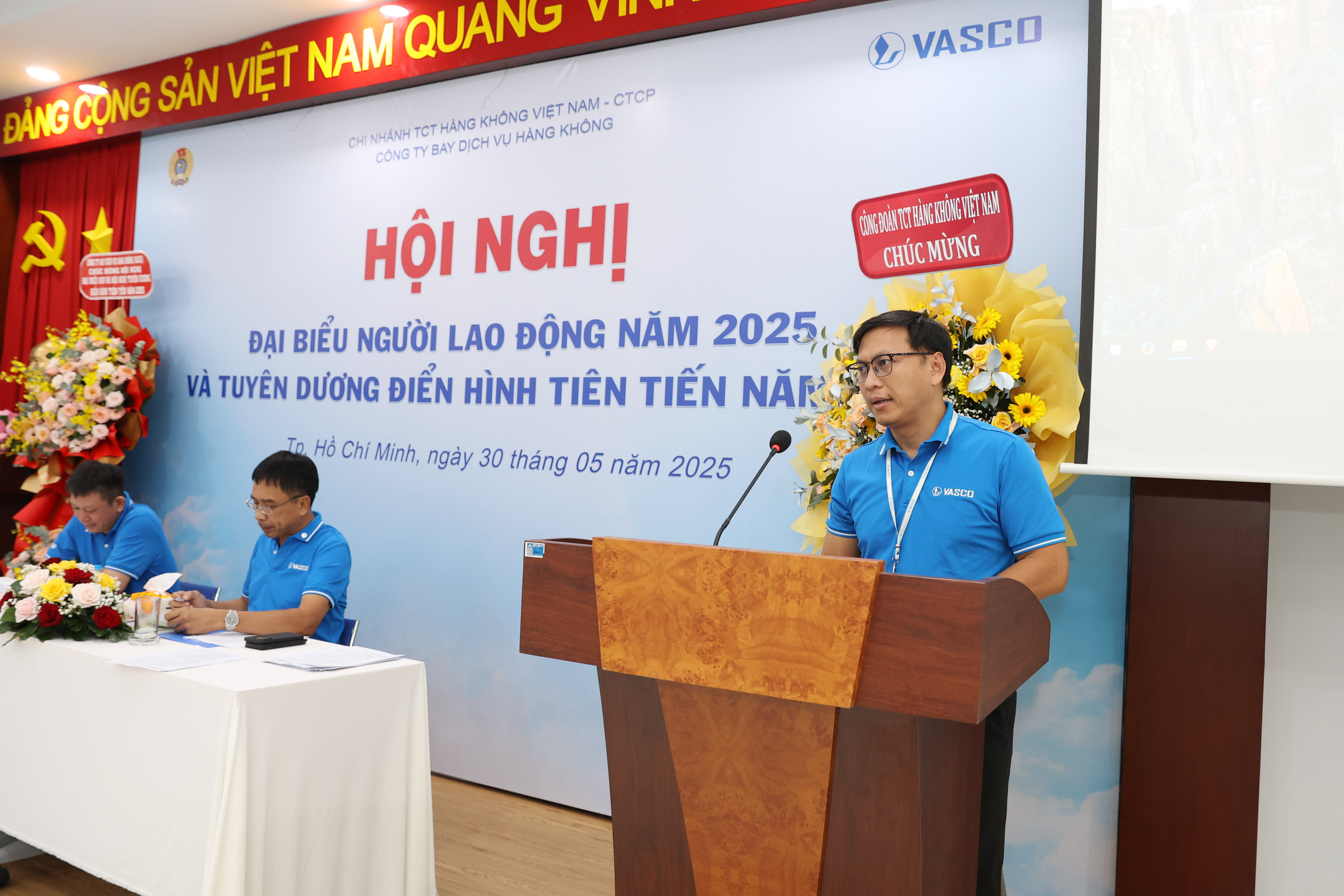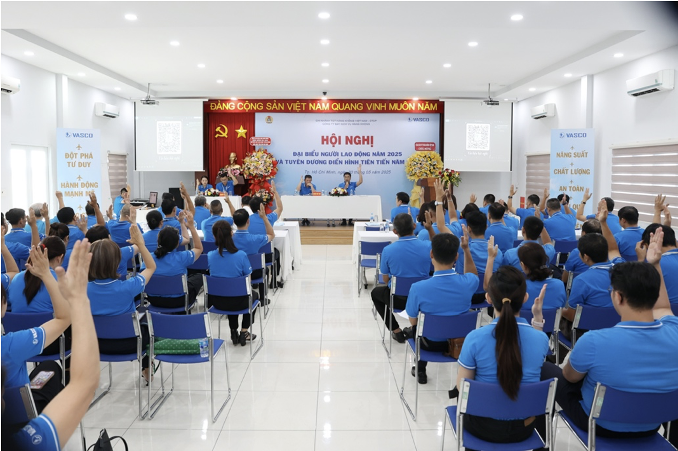 Hội nghị vinh dự đón tiếp Ông Trần Văn Nhu – Phó Chủ tịch thường trực Công đoàn TCTHKVN, cùng lãnh đạo VASCO như Ông Hà Duy Quang – Giám đốc, Ông Nguyễn Minh Tâm – Phó Giám đốc, và Ông Trần Trung Tín – Chủ tịch Công đoàn. Cùng 80 đại biểu đại diện cho người lao động VASCO đã tham dự.
