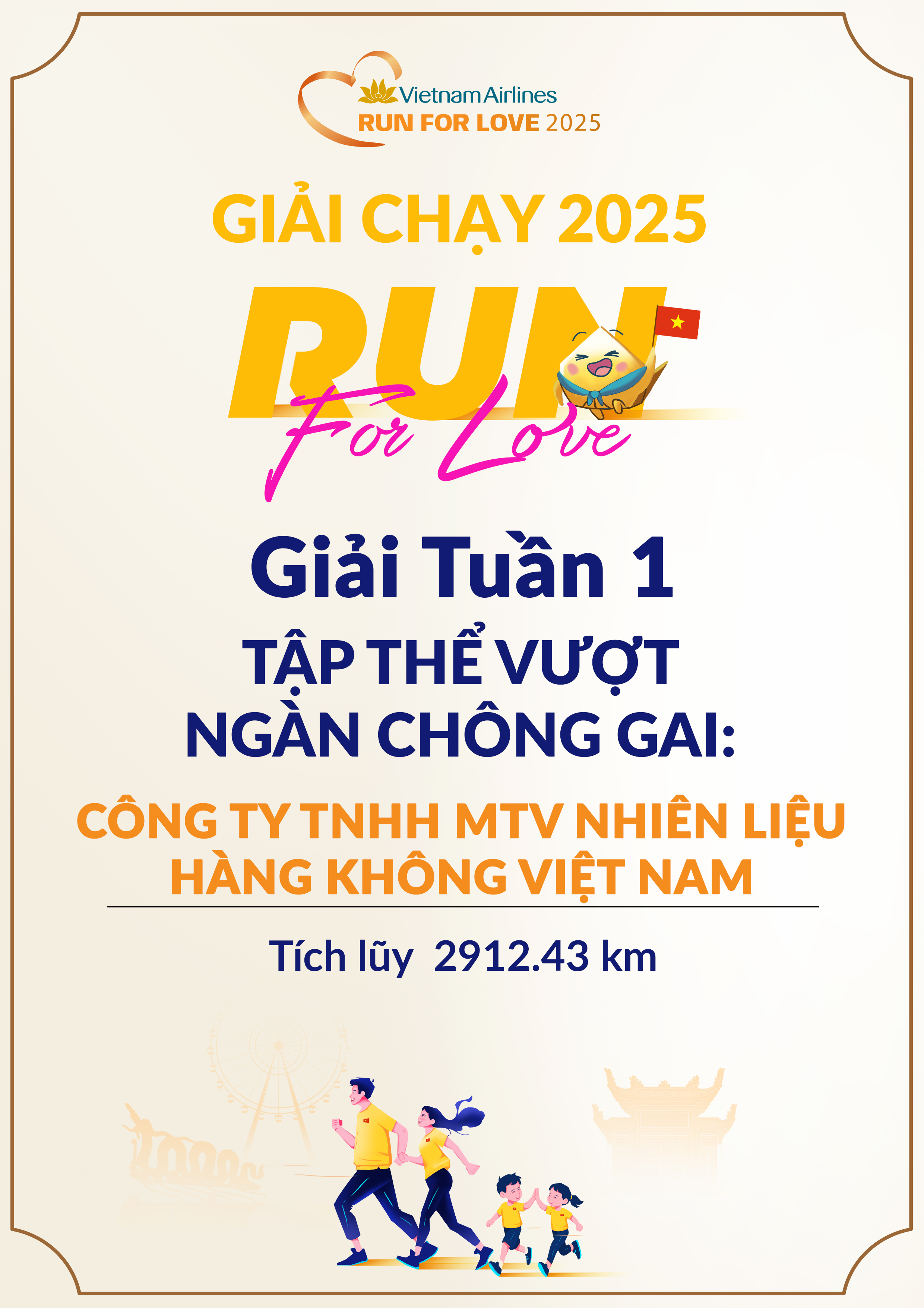 Sau 1 tuần khởi động (0h01 ngày 01/9 đến 0h00 ngày 8/9), giải chạy online Run For Love 2025 đã nhận được sự hưởng ứng nhiệt tình từ cán bộ nhân viên (CBNV) Vietnam Airlines: