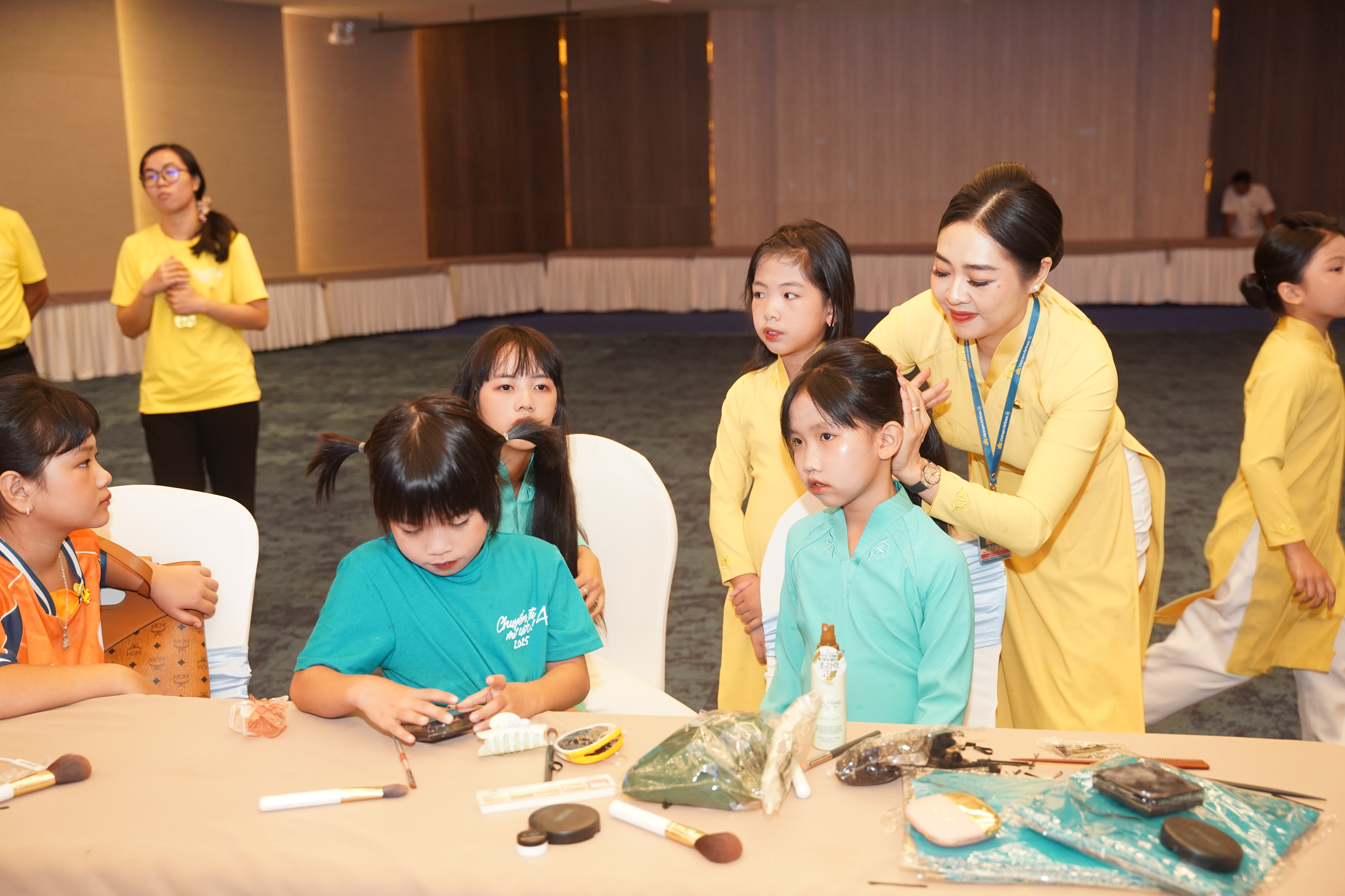 Thông qua sự hướng dẫn ân cần của cô Mai Nhật Lan, các em đã nhận thức được rằng nghề tiếp viên không chỉ đơn thuần là phục vụ, mà còn là nghệ thuật giao tiếp, sự nhẹ nhàng và lịch thiệp. Các em đã được thực hành những câu chào hỏi bằng tiếng Anh, như những tiếp viên thực thụ, ngay trong không gian ấm áp của chương trình.