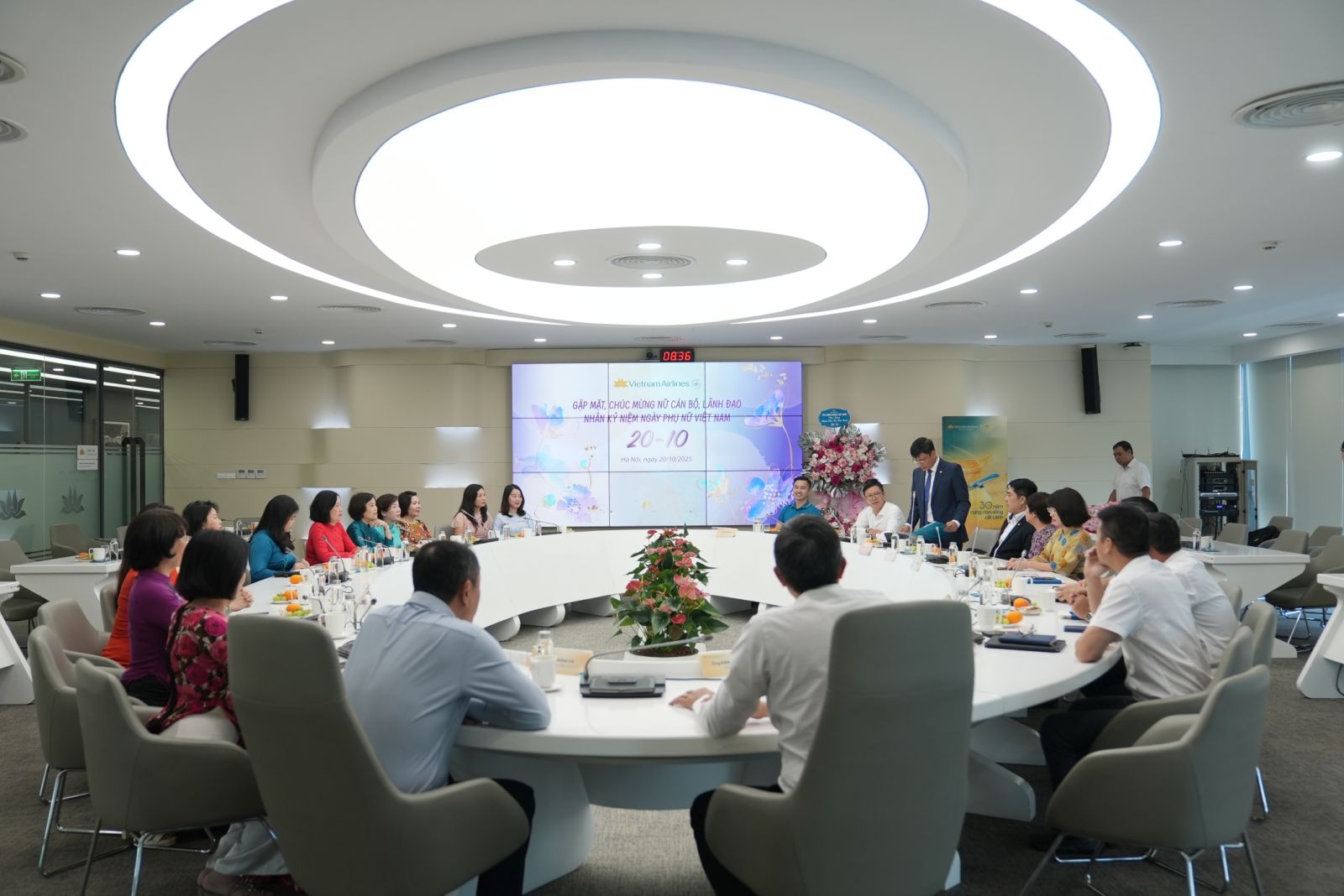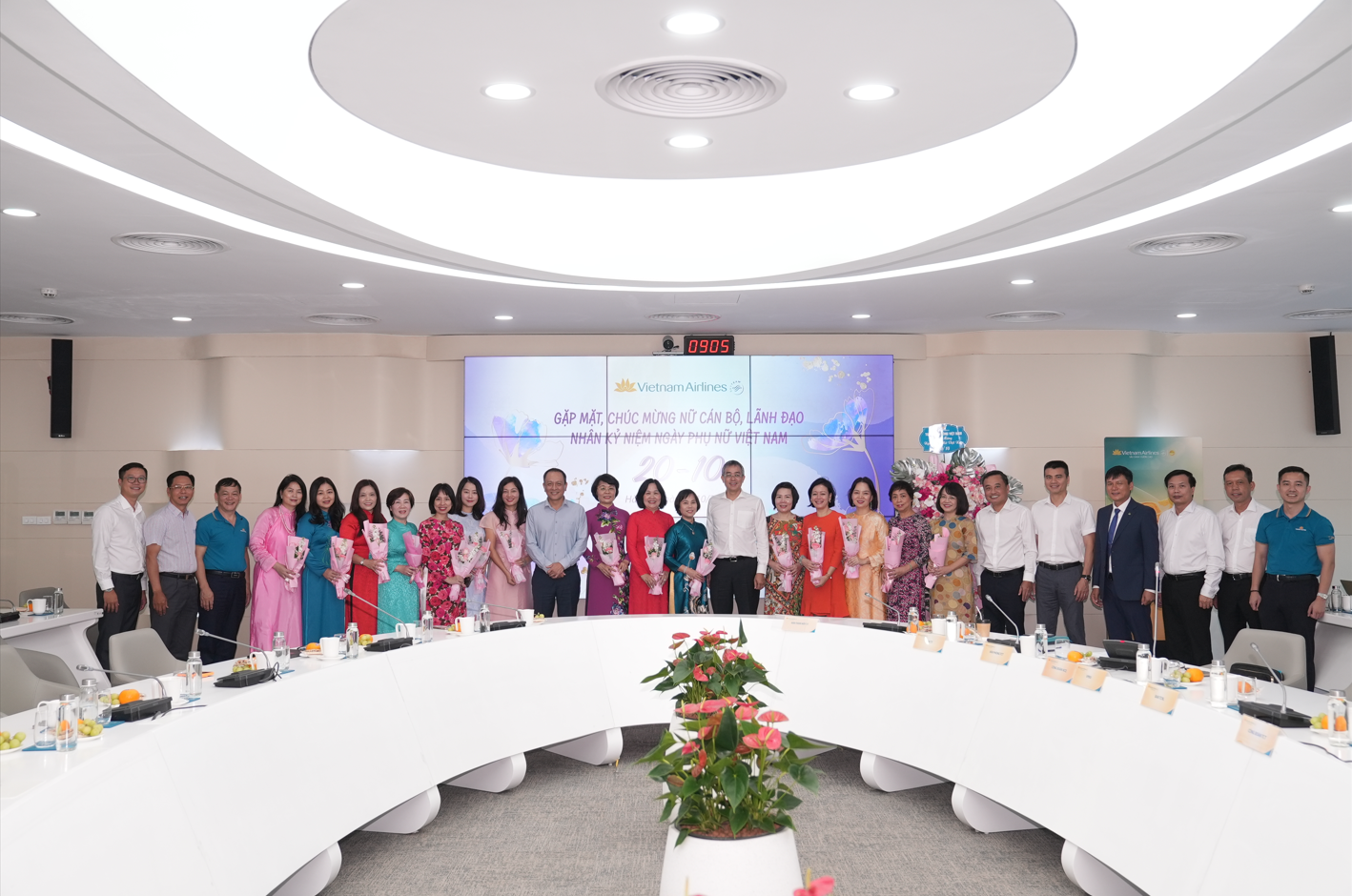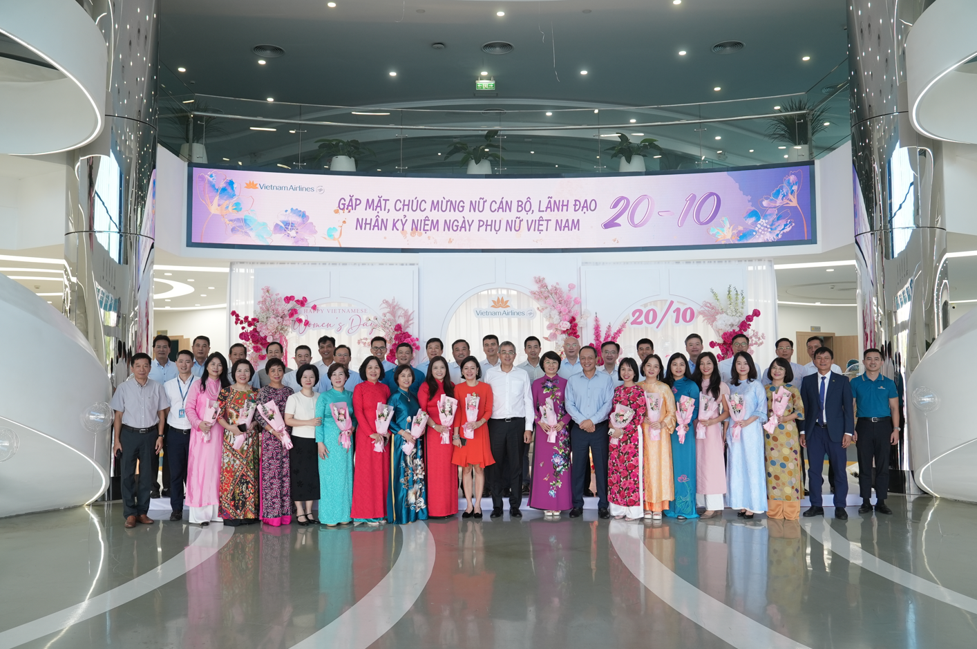 Trong không khí mát lành của những ngày thu Hà Nội, TCT Hàng không Việt Nam đã long trọng tổ chức buổi gặp mặt, chúc mừng các nữ cán bộ lãnh đạo – những đại diện tiêu biểu cho toàn thể nữ cán bộ, nhân viên của TCT. Sự kiện không chỉ là dịp tôn vinh vẻ đẹp và vai trò của người phụ nữ trong xã hội, mà còn thể hiện sự trân trọng, ghi nhận những nỗ lực và đóng góp bền bỉ của các chị em trong công việc cũng như cuộc sống.