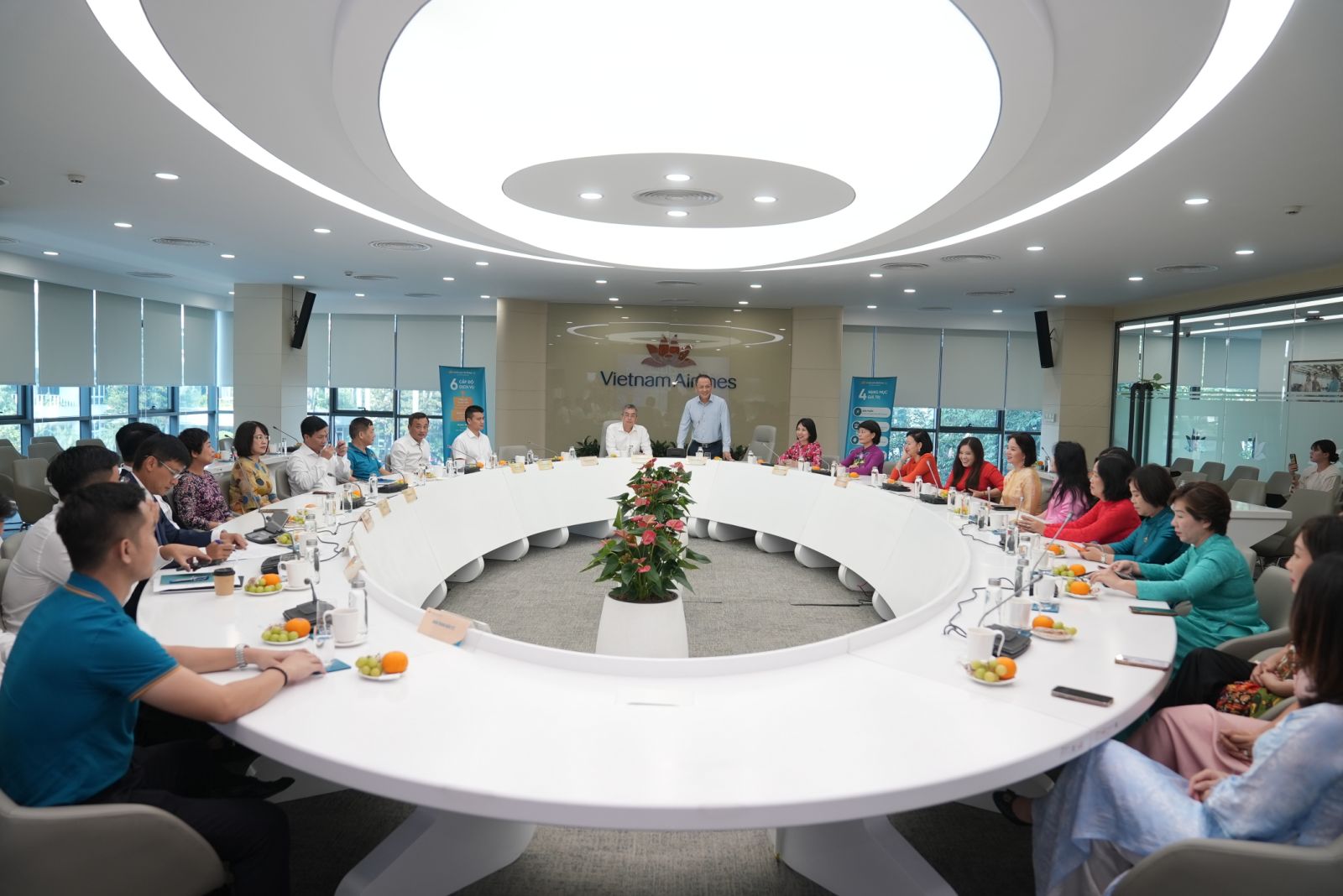 Phát biểu tại buổi gặp mặt, Chủ tịch HĐQT Đặng Ngọc Hòa bày tỏ niềm tự hào trước tinh thần và đóng góp của lực lượng nữ đang chiếm tới 57% tổng số cán bộ, nhân viên TCT. Ông ví các chị em như những “nữ tướng” của Vietnam Airlines – kiên trì, bền bỉ và tràn đầy năng lượng. Trong bất kỳ nhiệm vụ nào, từ điều hành dự án đến triển khai công việc chuyên môn, các chị luôn thể hiện sự tận tâm, tỉ mỉ và trách nhiệm cao.