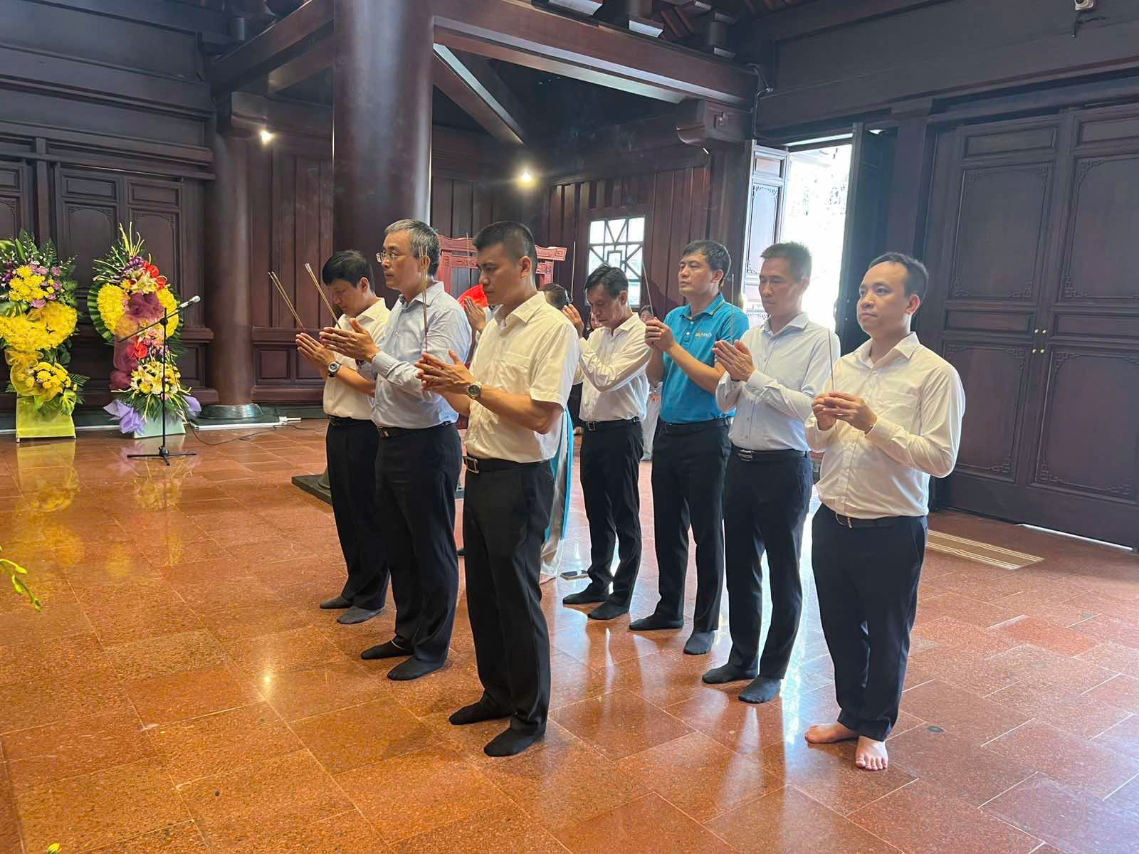 Trong không khí trang nghiêm, đoàn công tác đã thắp nén hương tưởng niệm tại phần mộ các liệt sĩ – những chiến sĩ đã góp phần làm nên chiến thắng Điện Biên Phủ “lừng lẫy năm châu, chấn động địa cầu”. Đặc biệt, tại Đồi F nơi tọa lạc Đền thờ Liệt sĩ với kiến trúc hiện đại hòa quyện cùng yếu tố tâm linh truyền thống – đoàn cũng đã thực hiện các nghi lễ và dành phút mặc niệm trước ký ức hào hùng vẫn in đậm trên từng tấc đất.