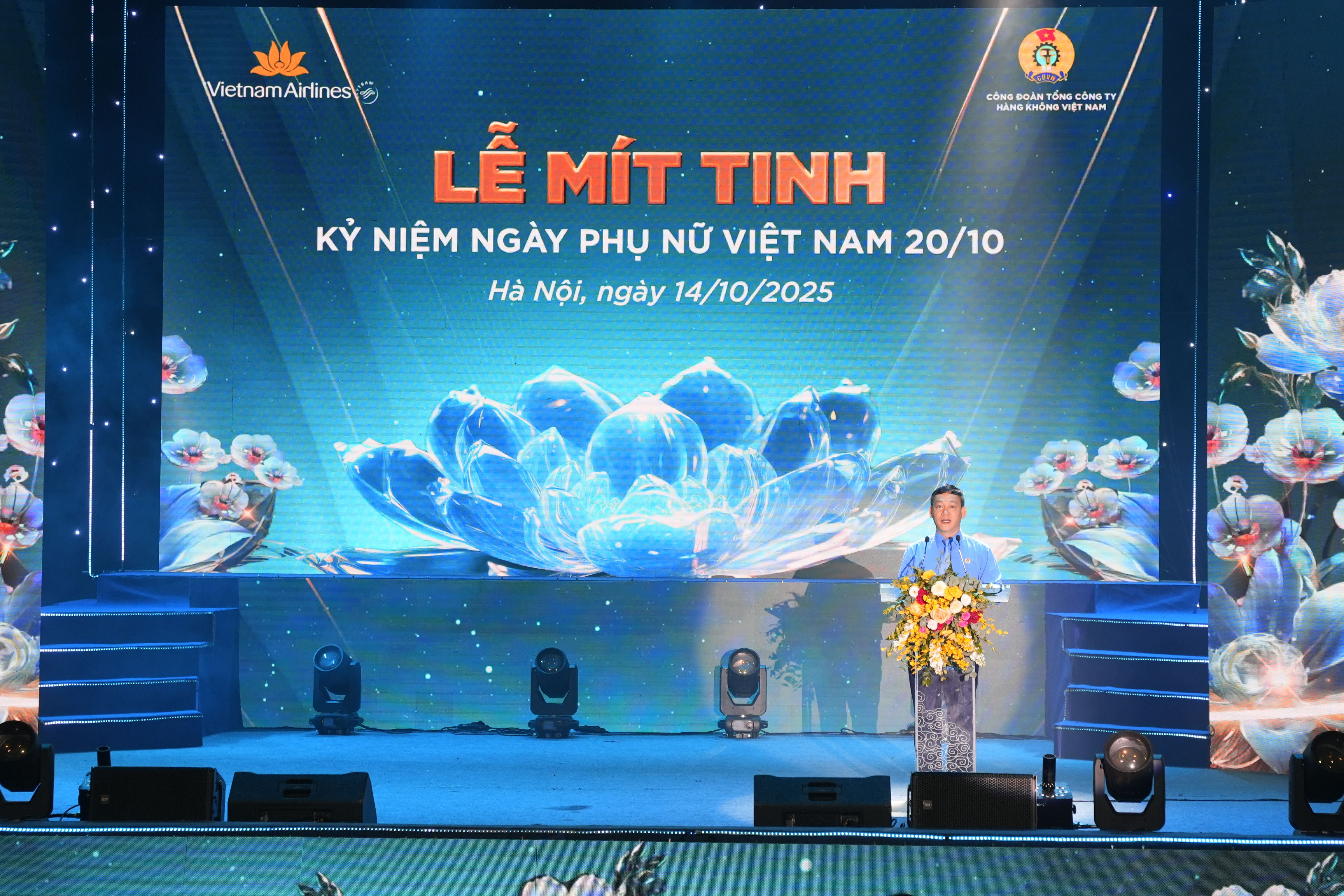 Phát biểu khai mạc chương trình, ông Đào Mạnh Kiên – Chủ tịch Công đoàn Tổng công ty Hàng không Việt Nam khẳng định vai trò quan trọng của phụ nữ Vietnam Airlines trong sự phát triển bền vững của Tổng công ty: “Tại Vietnam Airlines, chúng ta có hàng ngàn lao động nữ đang miệt mài cống hiến trên mọi lĩnh vực từ khai thác bay, dịch vụ mặt đất, kỹ thuật, bảo dưỡng thương mại cùng với các vị trí quản lý điều hành. Ở bất kỳ vị trí nào các chị em cũng phát huy tinh thần tận tụy trách nhiệm sáng tạo góp phần khẳng định thương hiệu và vị thế của hãng hàng không quốc gia Việt Nam trên bầu trời thế giới.”
