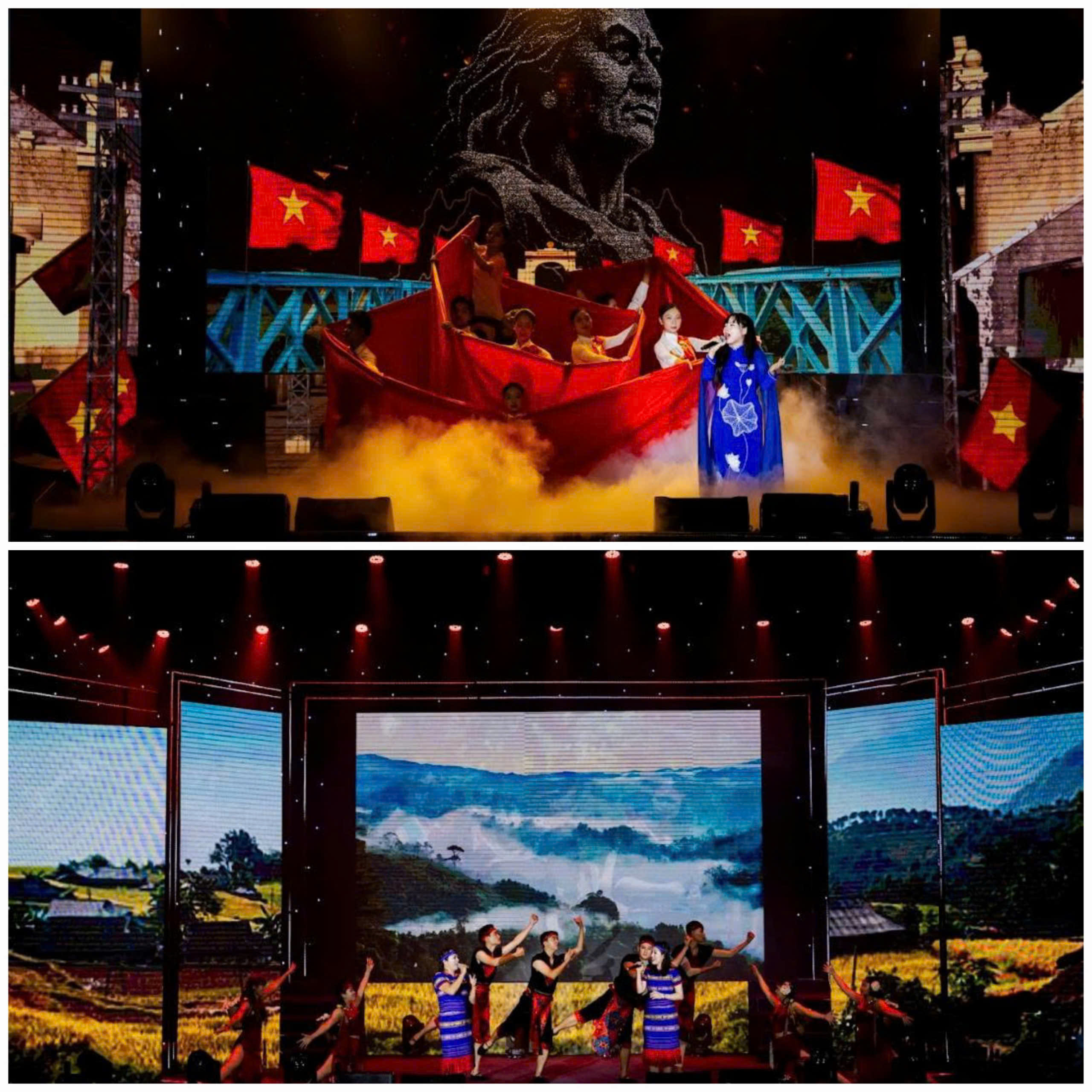 Trên sân khấu, những ca khúc và điệu múa vừa tôn vinh Tổ quốc, Bác Hồ vừa lan tỏa tinh thần đoàn kết, sáng tạo và niềm tự hào nghề nghiệp của cán bộ, người lao động Vietnam Airlines. Cùng với đó, các tiết mục cũng đem đến nhiều khoảnh khắc lắng đọng về tình mẹ, lòng nhân ái bên cạnh những tiết mục trẻ trung, hiện đại, mang năng lượng tích cực của thế hệ mới.