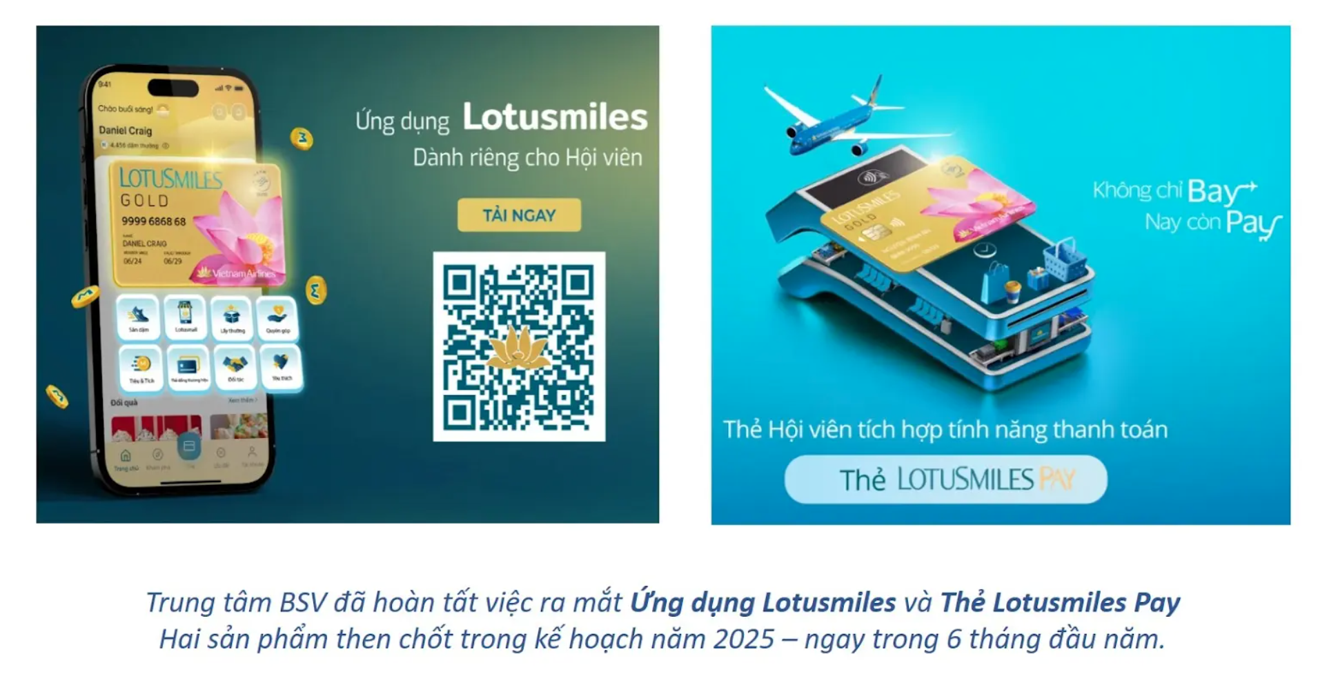 - Ra mắt thẻ hội viên Lotusmiles Pay – Dấu ấn khác biệt trong hệ sinh thái sản phẩm Bông Sen Vàng: Hợp tác cùng ACB và VISA, VNA cho ra đời dòng thẻ Lotusmiles Pay – tích hợp tính năng thanh toán gồm thẻ tín dụng và thẻ ghi nợ, mang đến trải nghiệm tiện lợi và ưu đãi đặc quyền cho hội viên. Khác biệt với các thẻ đồng thương hiệu trước đây, Lotusmiles Pay được định vị là thẻ hội viên thanh toán đầu tiên của Vietnam Airlines, đồng hành với khách hàng không chỉ trong các hành trình bay mà còn trong mọi hoạt động chi tiêu hằng ngày – giúp gia tăng sự gắn bó và tương tác thường xuyên với chương trình. Chỉ sau thời gian ngắn ra mắt, Lotusmiles Pay đã ghi nhận doanh thu tích cực, mở ra một hướng đi mới trong việc chuyển đổi hội viên thành người dùng sản phẩm tài chính của Vietnam Airlines, đóng góp đáng kể vào mục tiêu tăng trưởng của chương trình khách hàng thân thiết.