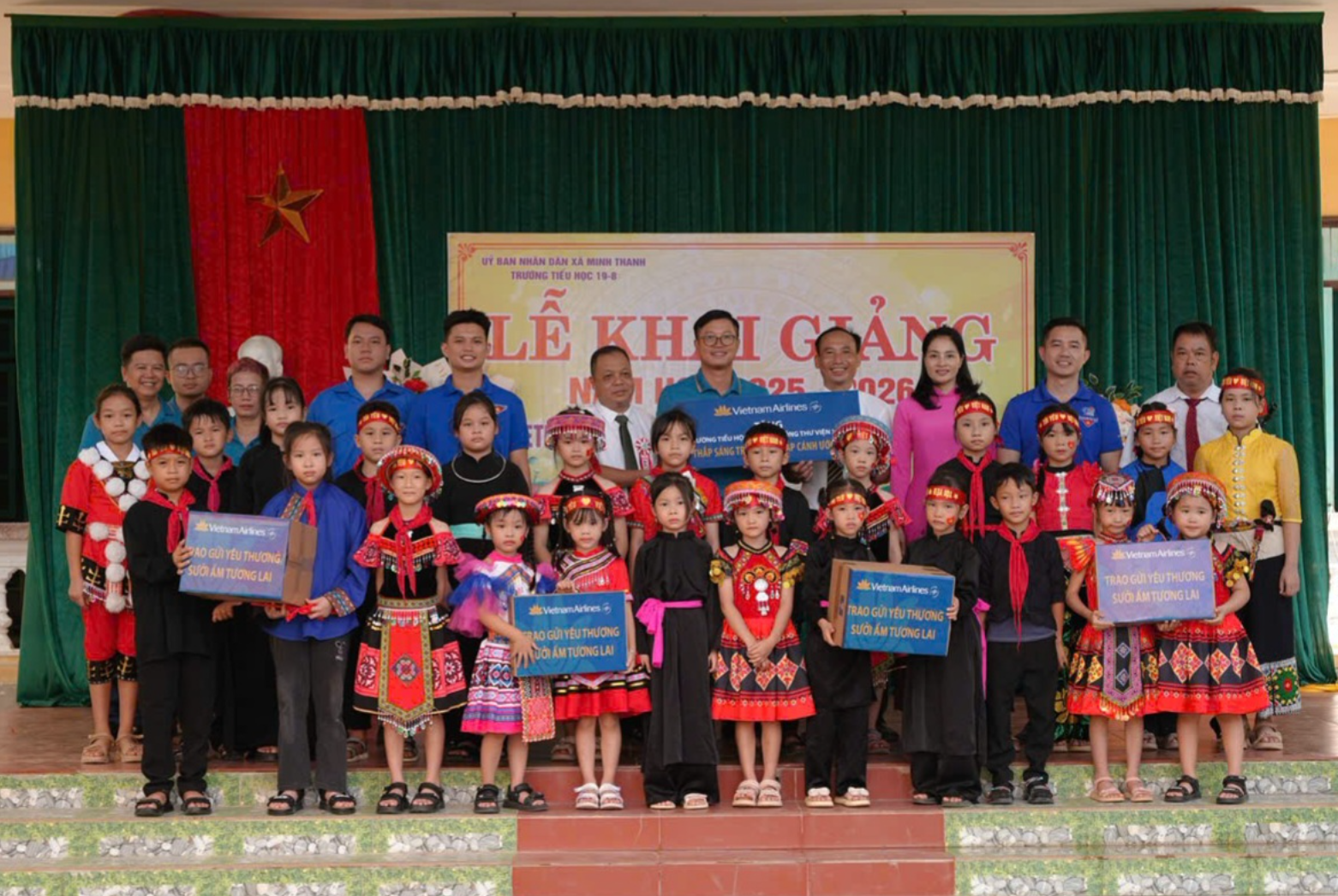 Sáng ngày 5/9, trong không khí khai giảng năm học mới trong dịp kỷ niệm 80 năm thành lập Bộ Quốc gia giáo dục (nay là Bộ Giáo dục và Đào tạo), Vietnam Airlines trao tặng hệ thống thư viện và chăn ấm cho học sinh Trường Tiểu học 19-8 (xã Minh Thanh, tỉnh Tuyên Quang). Hoạt động này góp phần mang lại môi trường học tập chất lượng cao cho học sinh vùng cao, khơi dậy niềm đam mê đọc sách, từ đó nâng cao năng lực tự học và phát triển toàn diện.