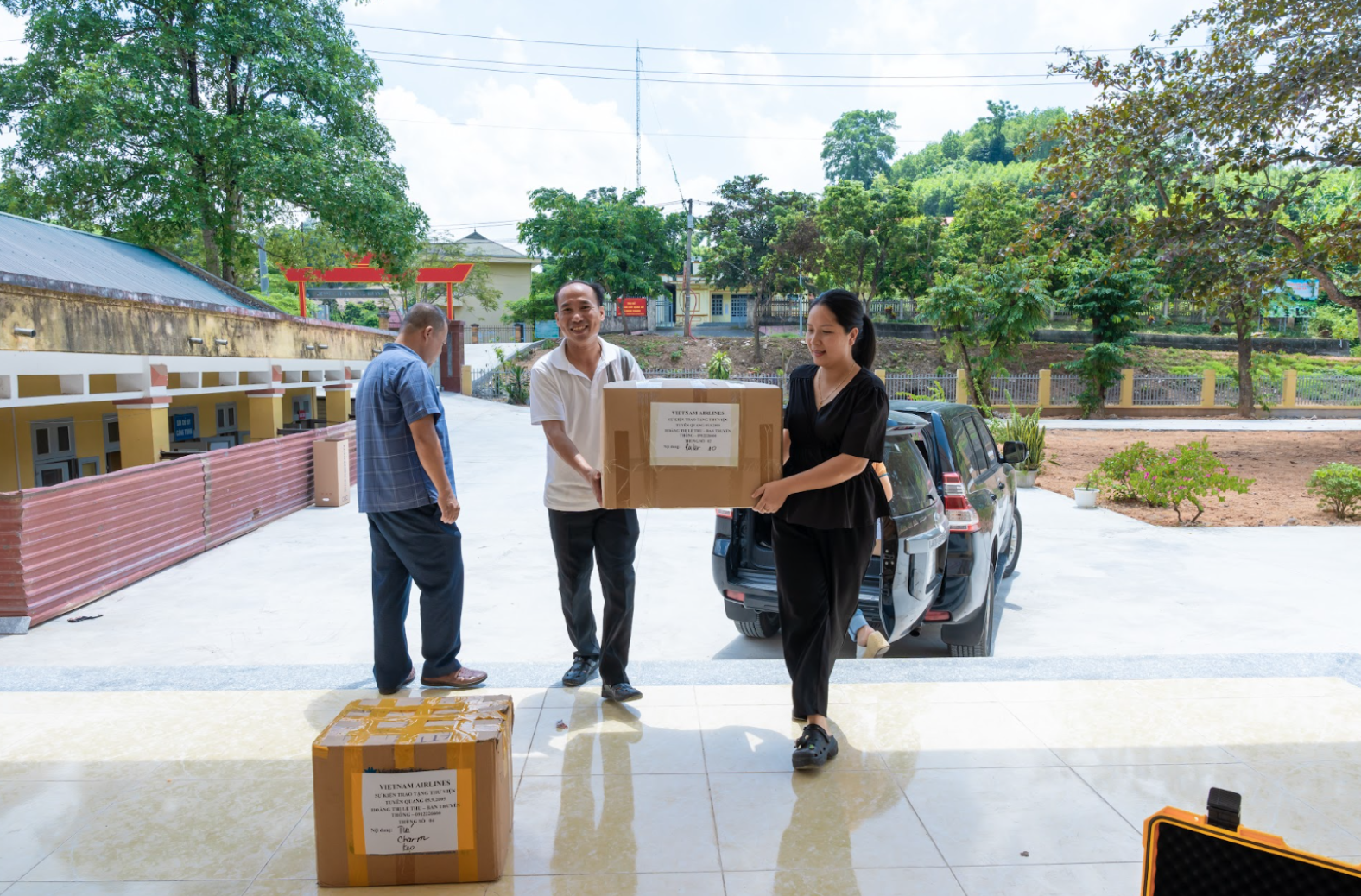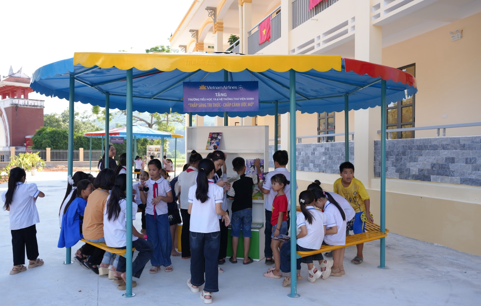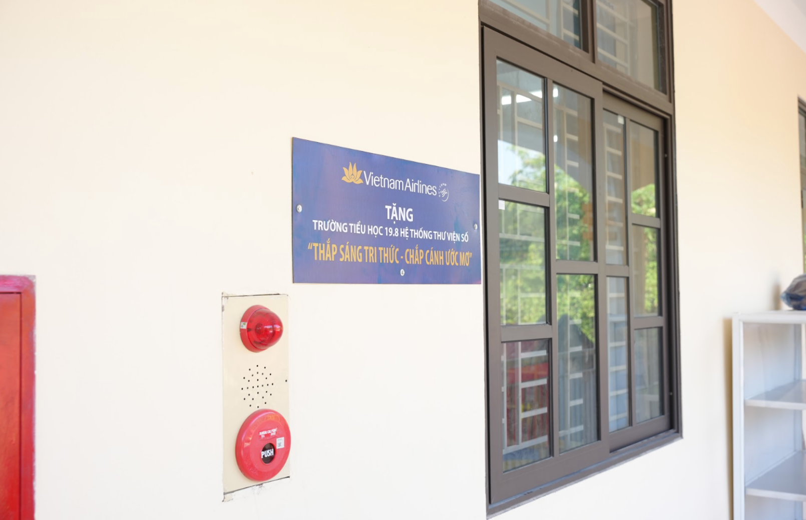 Theo đó, Vietnam Airlines đã bàn giao 2 thư viện thiên nhiên ngoài trời và 1 thư viện số trong nhà, được trang bị đầy đủ trang thiết bị: Hai bộ máy tính xách tay, 3 bộ máy tính để bàn, 2 bộ máy in, bàn ghế tại phòng đọc, các trang thiết bị chuyên dụng tủ, kệ, giá sách, bàn ghế cho học sinh, giáo viên; bàn ghế thủ thư; bảng giới thiệu sách; giá sách 3; bảng hướng dẫn sử dụng thư viện, rèm chắn nắng; điều hòa cây; cờ vua, cờ tướng…
