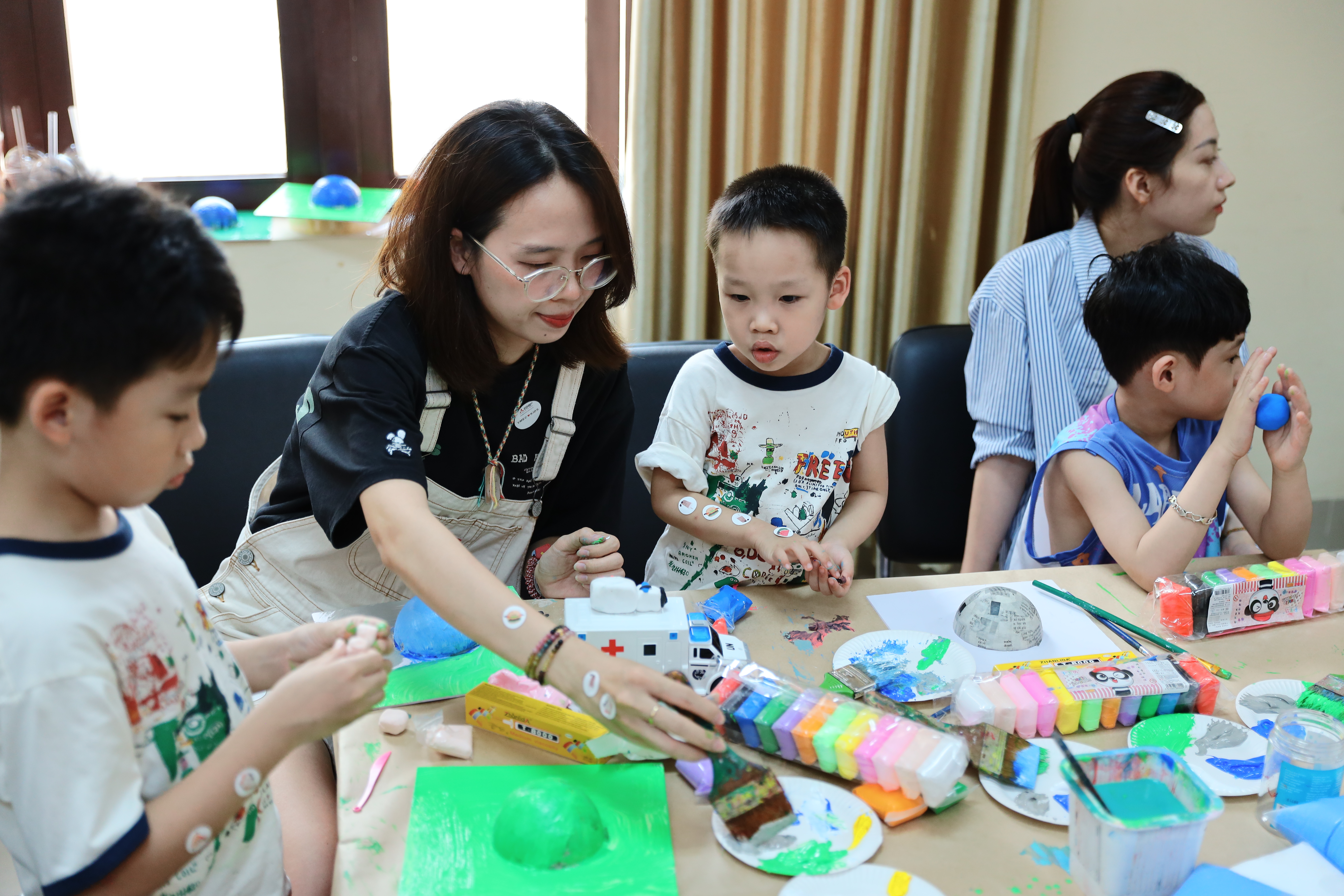 Thông qua chương trình, các bé đã có khoảng thời gian thỏa sức giao lưu, sáng tạo với các mô hình 3D, tranh đa chất liệu, tranh cát nhân dịp Quốc tế Thiếu nhi, cùng nhau đón chào một kỳ nghỉ hè đầy thú vị.