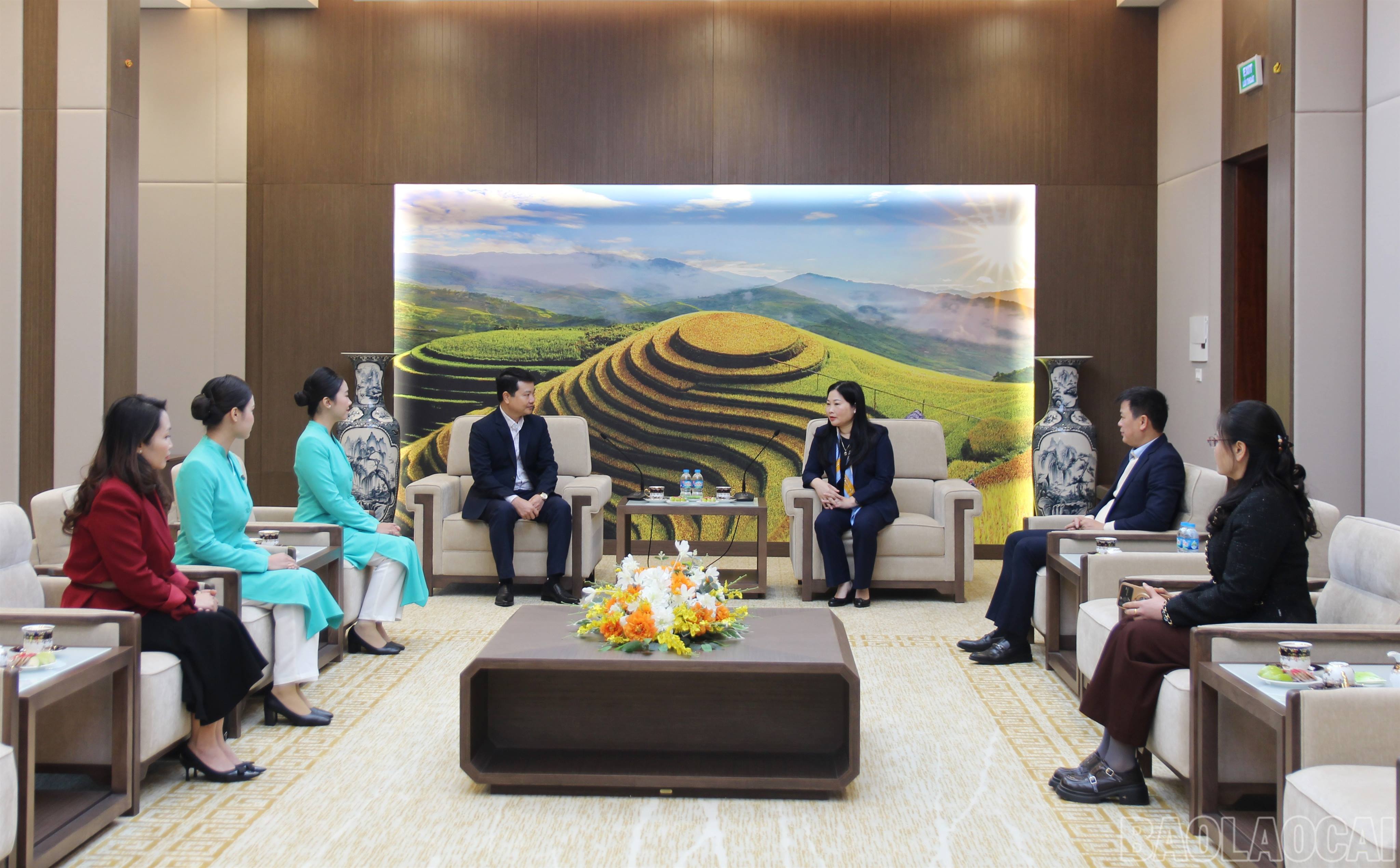 Tại buổi tiếp, đồng chí Vũ Thị Hiền Hạnh – Phó Chủ tịch UBND tỉnh đã thông tin khái quát về tình hình phát triển kinh tế – xã hội của tỉnh sau khi thực hiện sắp xếp đơn vị hành chính. Đồng chí khẳng định, Lào Cai là địa phương có nguồn nhân lực trẻ, dồi dào, với quy mô học sinh, sinh viên lớn, đa dạng trình độ đào tạo.