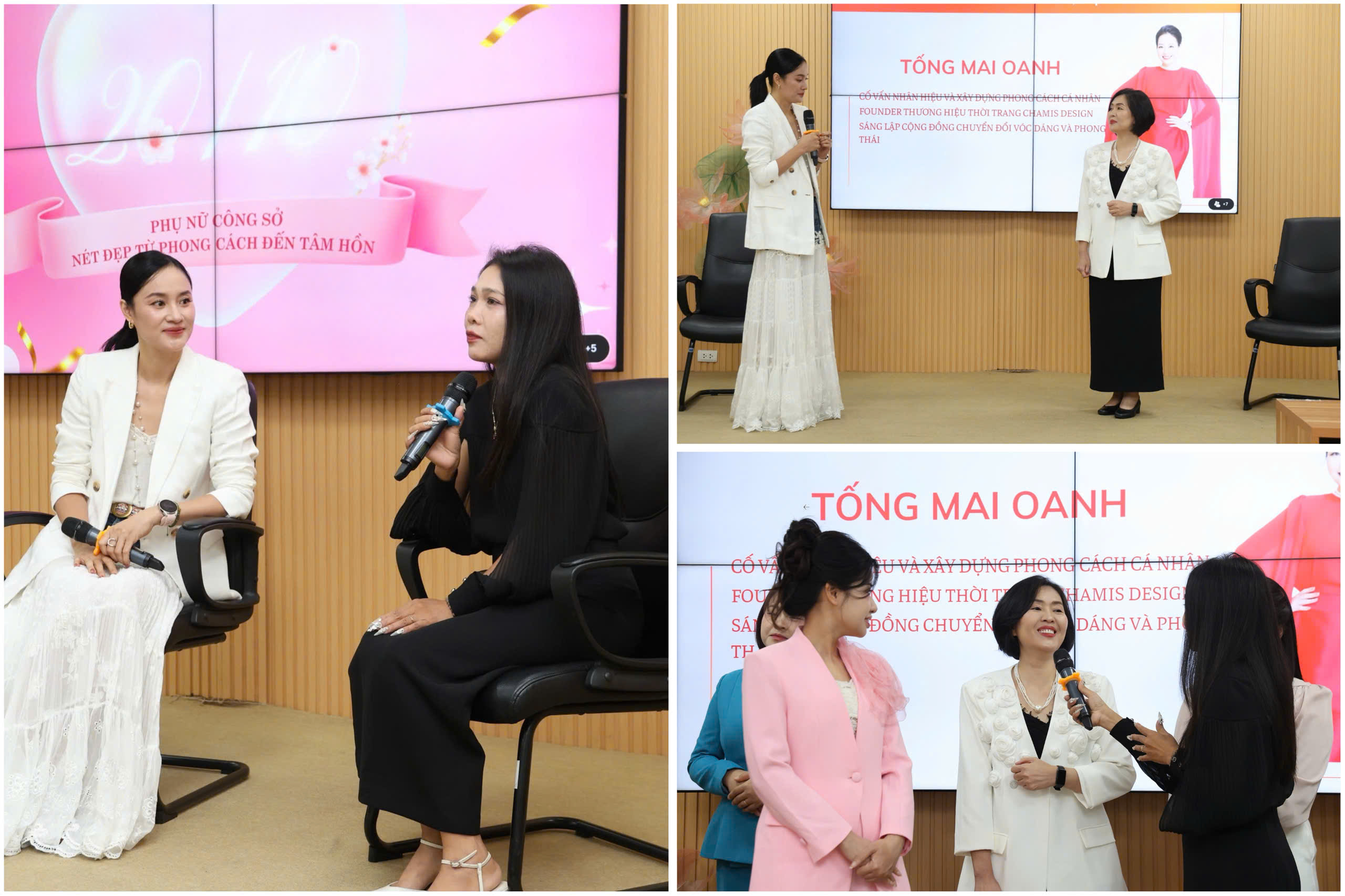 Tại buổi chia sẻ, Á hậu Nguyễn Phương Liên đã mang đến những góc nhìn thú vị và thực tế về phong cách thanh lịch của phụ nữ công sở, văn hóa giao tiếp và ứng xử nơi công sở; qua đó làm tôn vinh vẻ đẹp tâm hồn – Giá trị bên trong của người phụ nữ. Đồng hành cùng Á hậu Nguyễn Phương Liên l CEO Tống Mai Oanh – Founder Thời trang nữ Chamis design, cùng chuyên gia trang điểm Hương Giang đã tư vấn và hướng dẫn các chị em cách lựa chọn trang phục phù hợp với dáng người, hoàn cảnh công việc, cũng như bí quyết để luôn tự tin, chuyên nghiệp và cuốn hút trong môi trường công sở. Buổi chia sẻ không chỉ mang lại nhiều kiến thức bổ ích mà còn tạo không khí giao lưu sôi nổi, giúp chị em thêm yêu bản thân và lan tỏa hình ảnh người phụ nữ hiện đại – thanh lịch – tự tin.