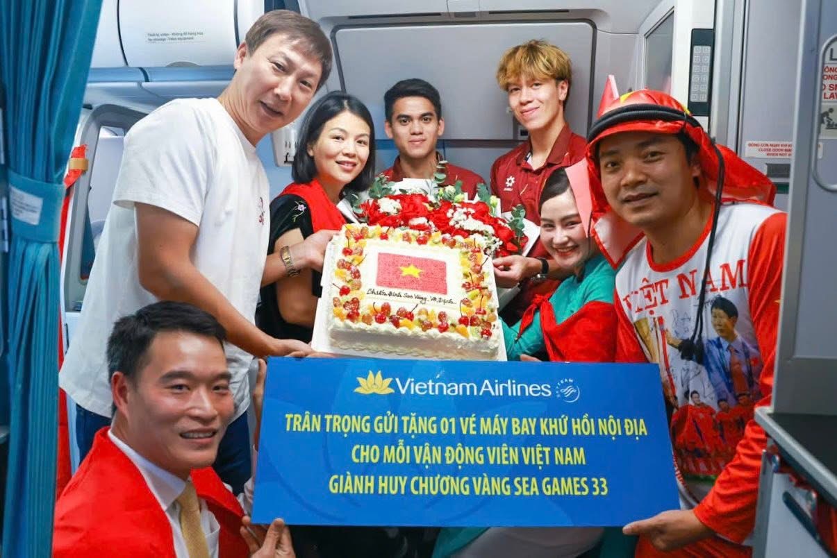 Đây cũng là lời tri ân, sự trân trọng của Đội tuyển U22 nói riêng và Đoàn Thể thao Việt Nam tham dự SEA Games 33 nói chung đối với những đóng góp thầm lặng nhưng rất lớn của Vietnam Airlines trong hành trình đồng hành, hỗ trợ và phục vụ Đoàn trong suốt quá trình thi đấu tại SEA Games.