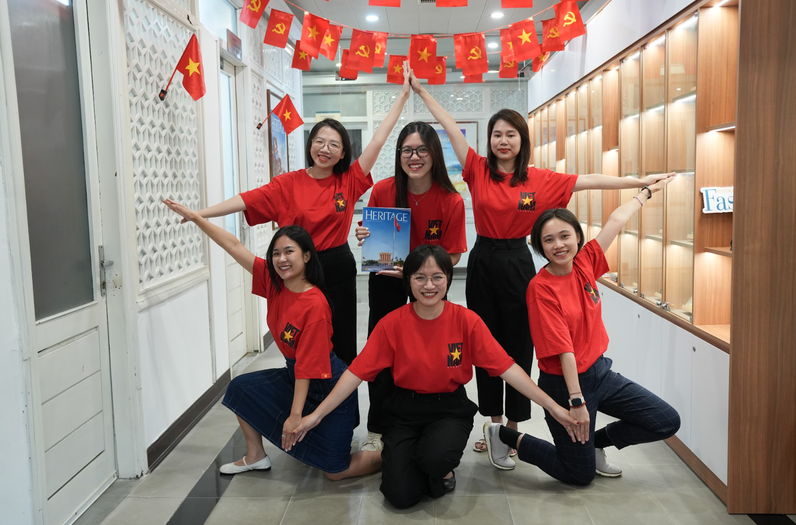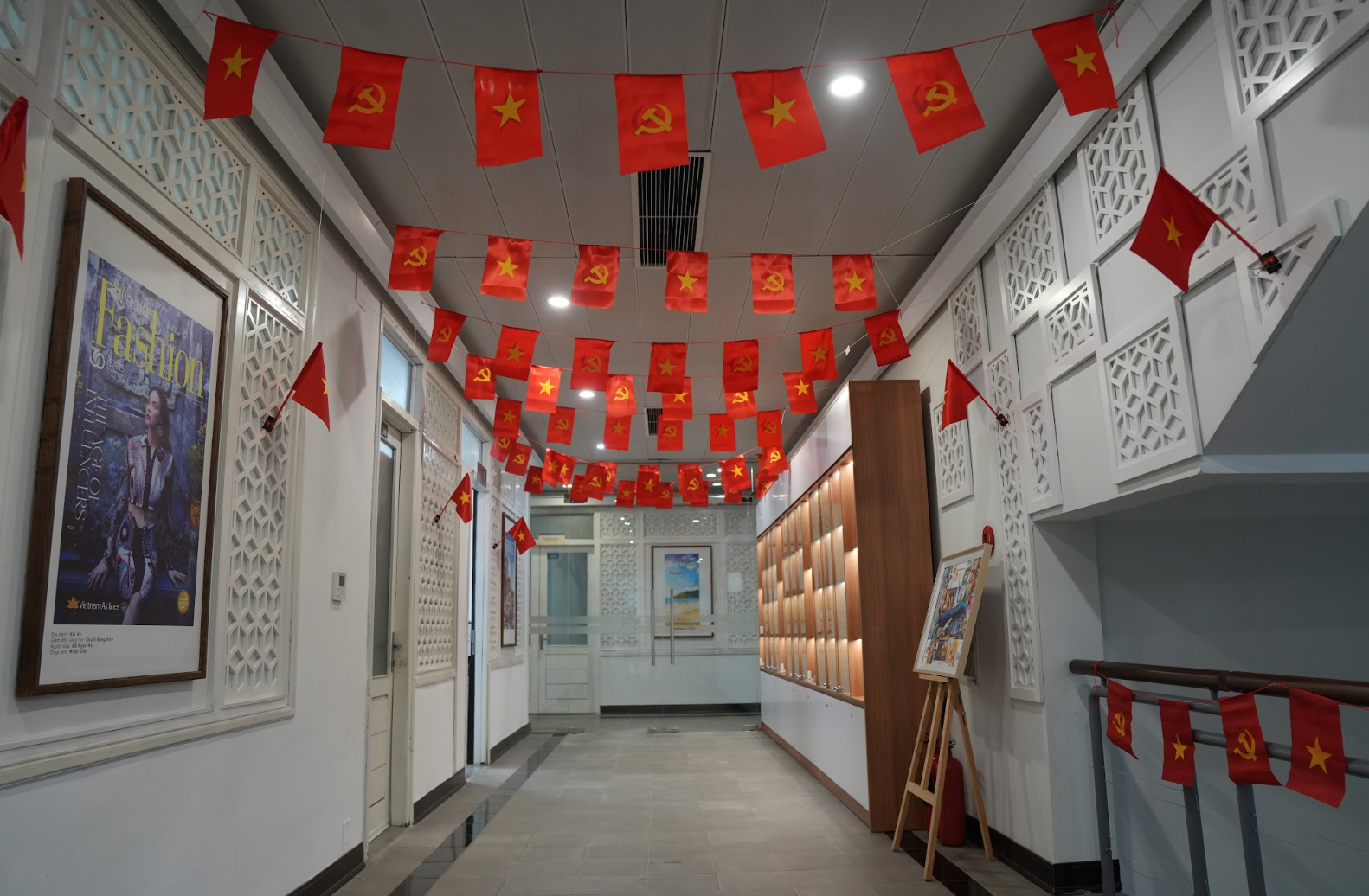 Ngay từ những ngày đầu tháng 8, khắp văn phòng làm việc của Tạp chí Heritage đã được trang trí rực rỡ với cờ đỏ sao vàng tung bay kiêu hãnh, cùng với đó là cờ Đảng trang trọng, thể hiện lòng tự hào dân tộc và niềm tin vào sự lãnh đạo của Đảng.