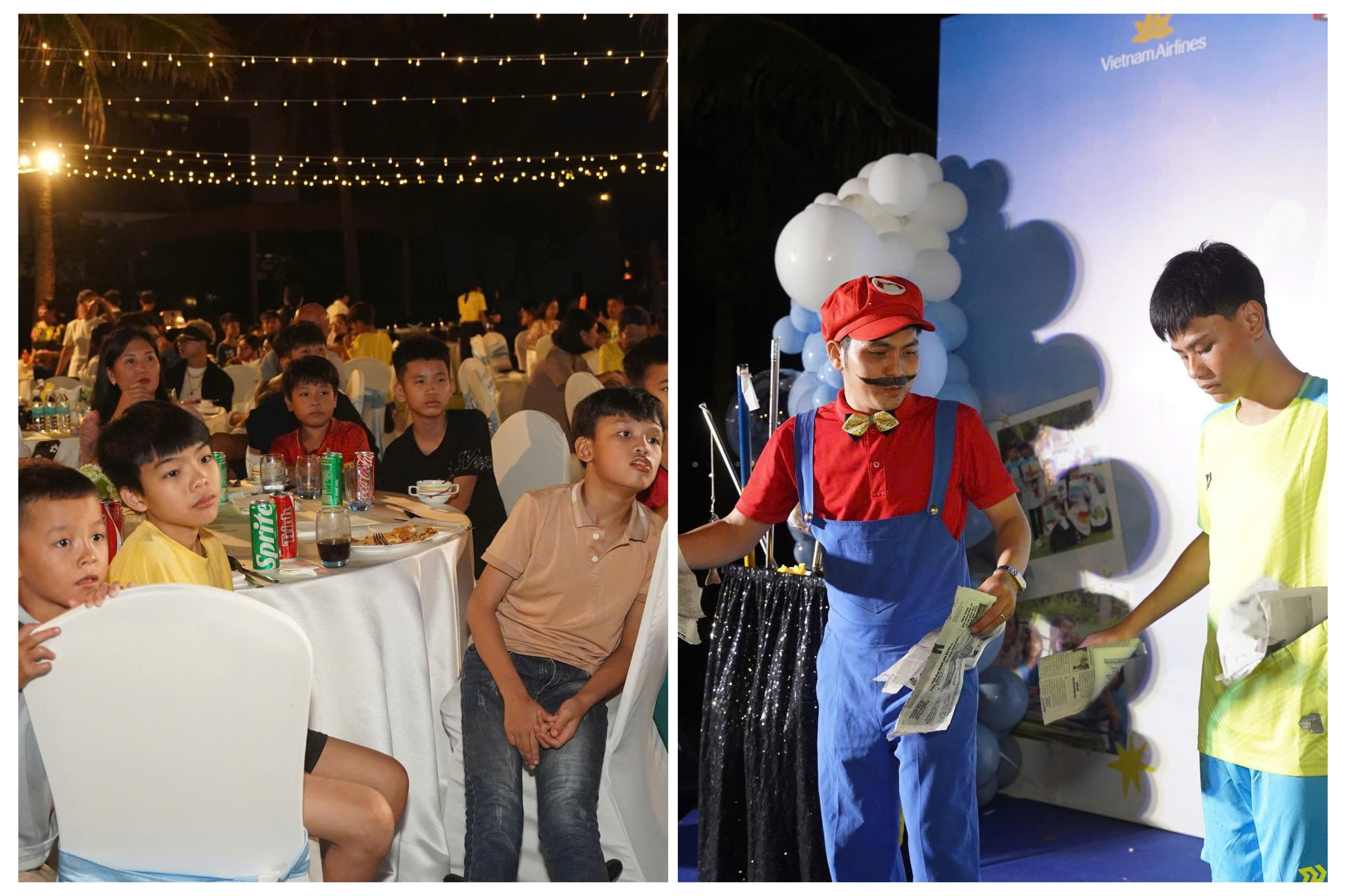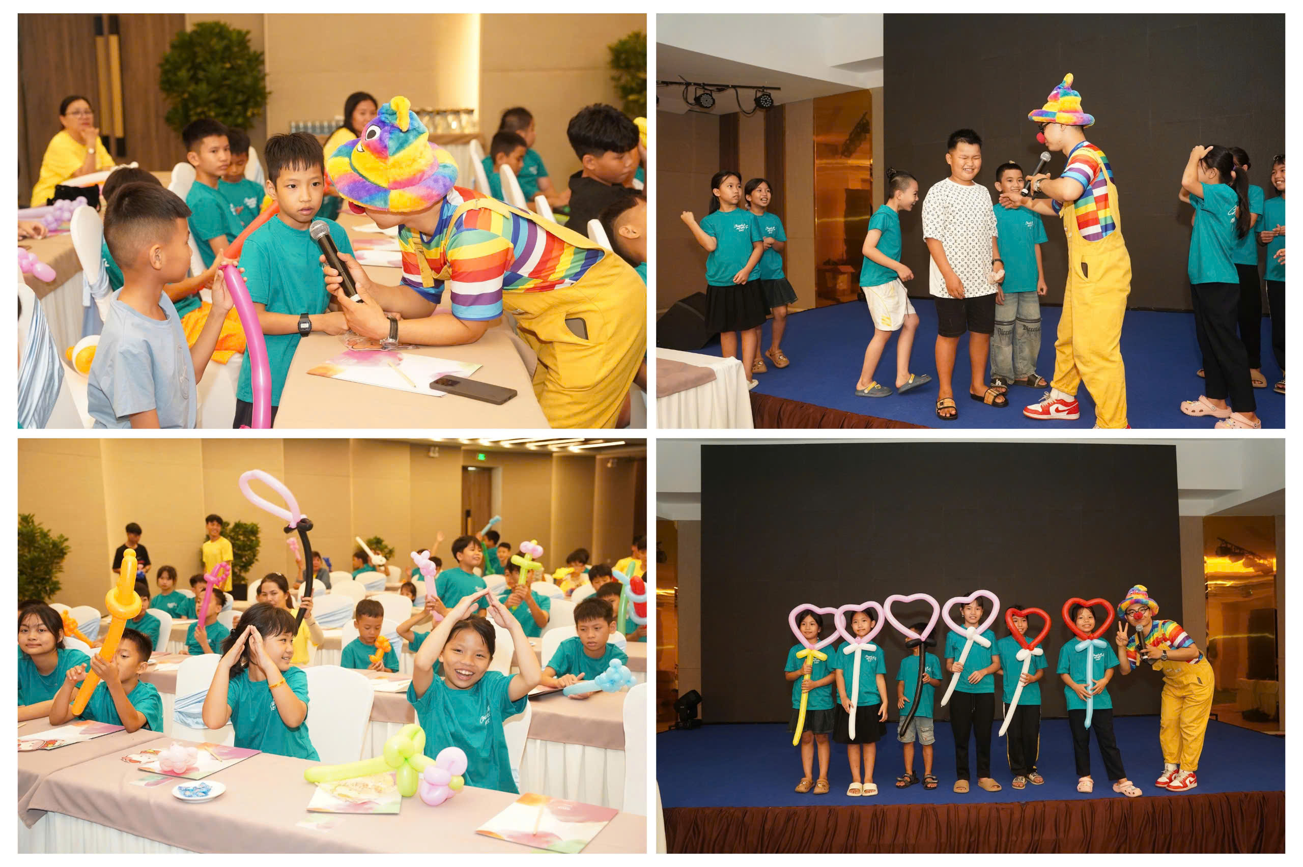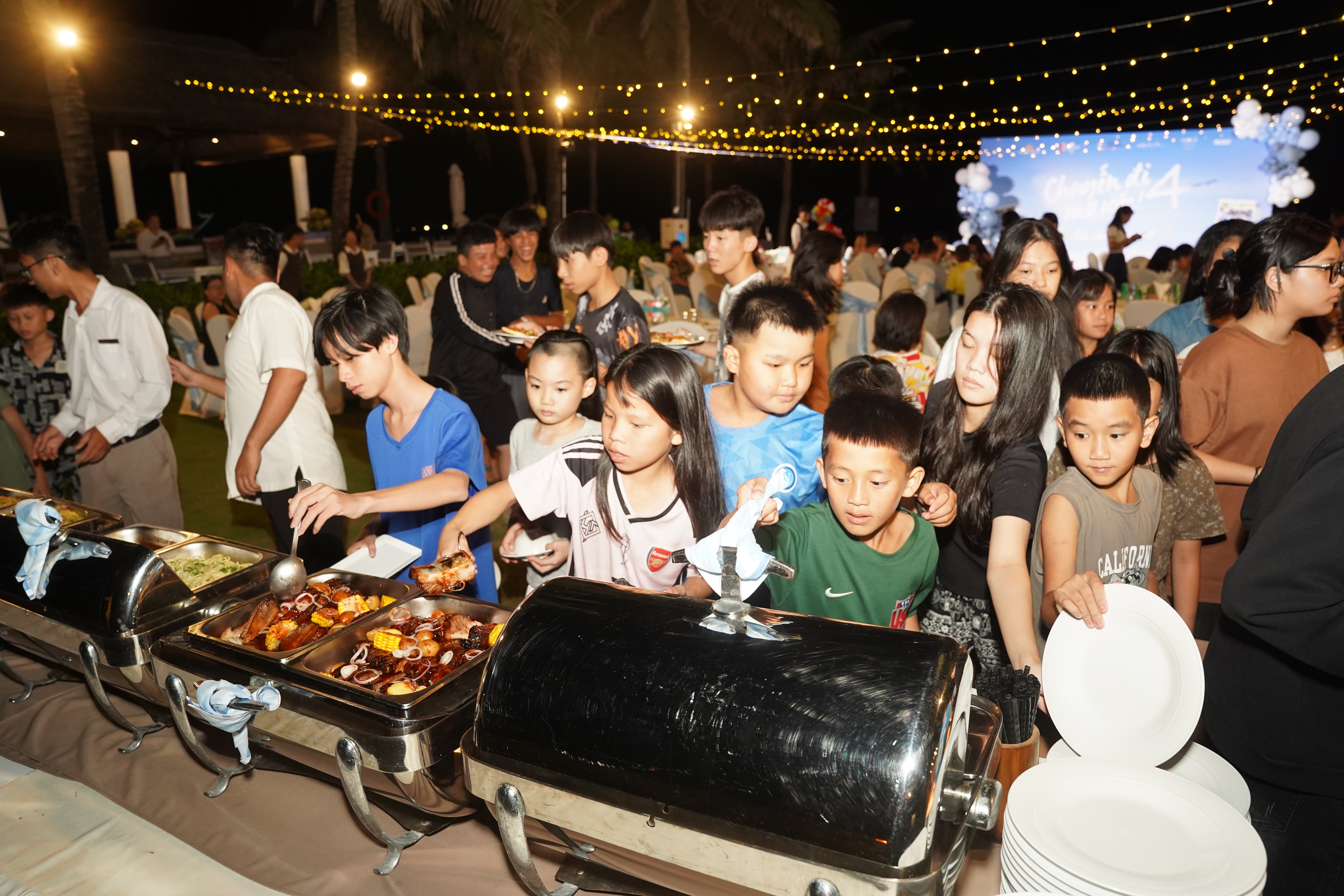 Bữa tiệc Gala dinner được tổ chức trong không gian thoáng đãng ngoài trời bên bãi biển. Chương trình càng thêm phần hấp dẫn với sự xuất hiện của một chú hề vui tính, người đã mang đến cho các em những màn ảo thuật kỳ diệu và đầy bất ngờ. Tiếng cười vang lên rộn rã, hòa quyện cùng gió biển mát rượi, tạo nên một buổi tối thật đáng nhớ và tràn đầy niềm vui.