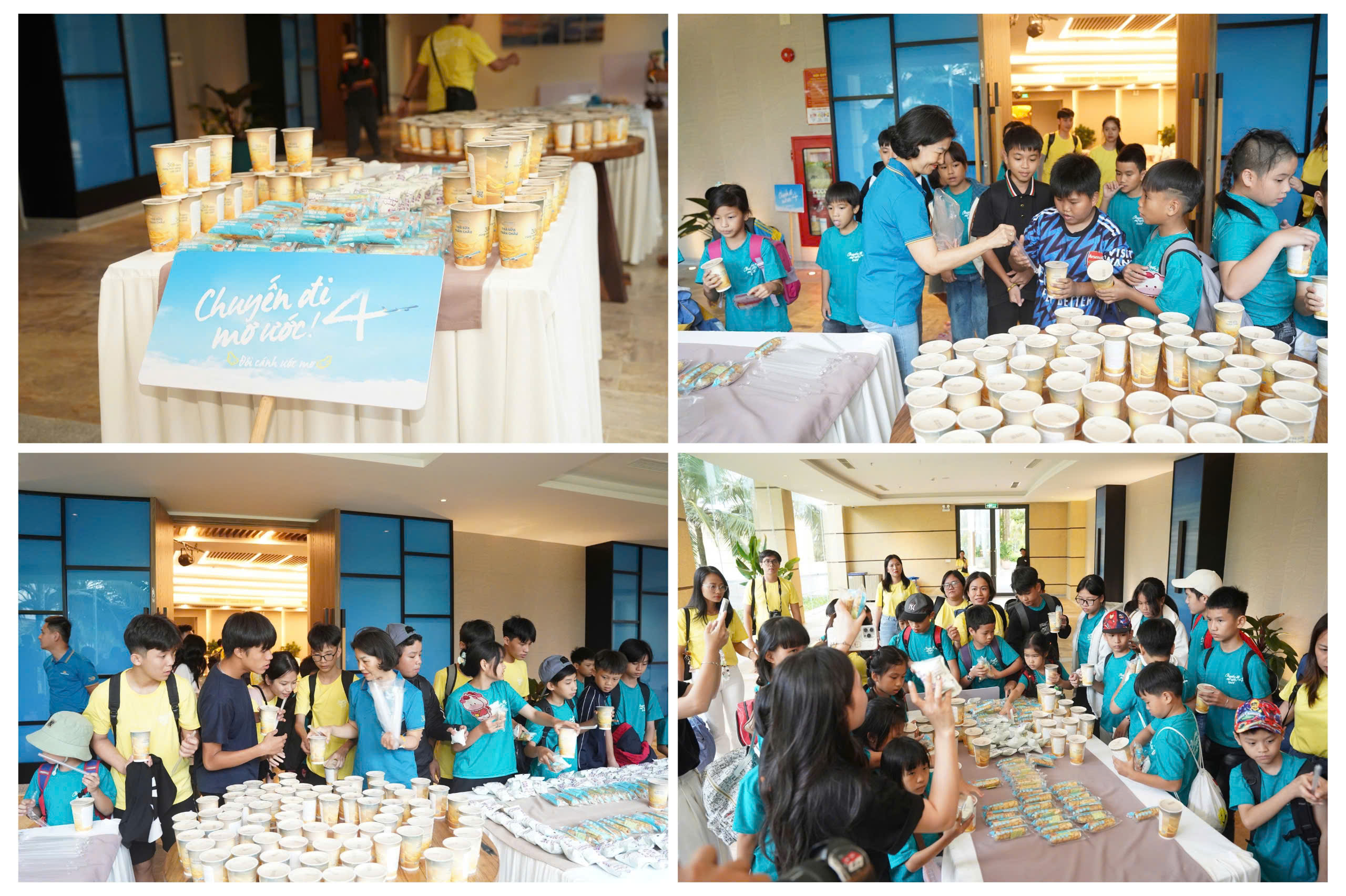 Trong sự kiện, các em được thưởng thức hương vị thơm ngon từ những chiếc bánh ngọt đến từ nhà tài trợ Gulu. Đặc biệt, lần đầu tiên 80 em nhỏ có cơ hội thưởng thức vị trà sữa của riêng thương hiệu Vietnam Airlines.