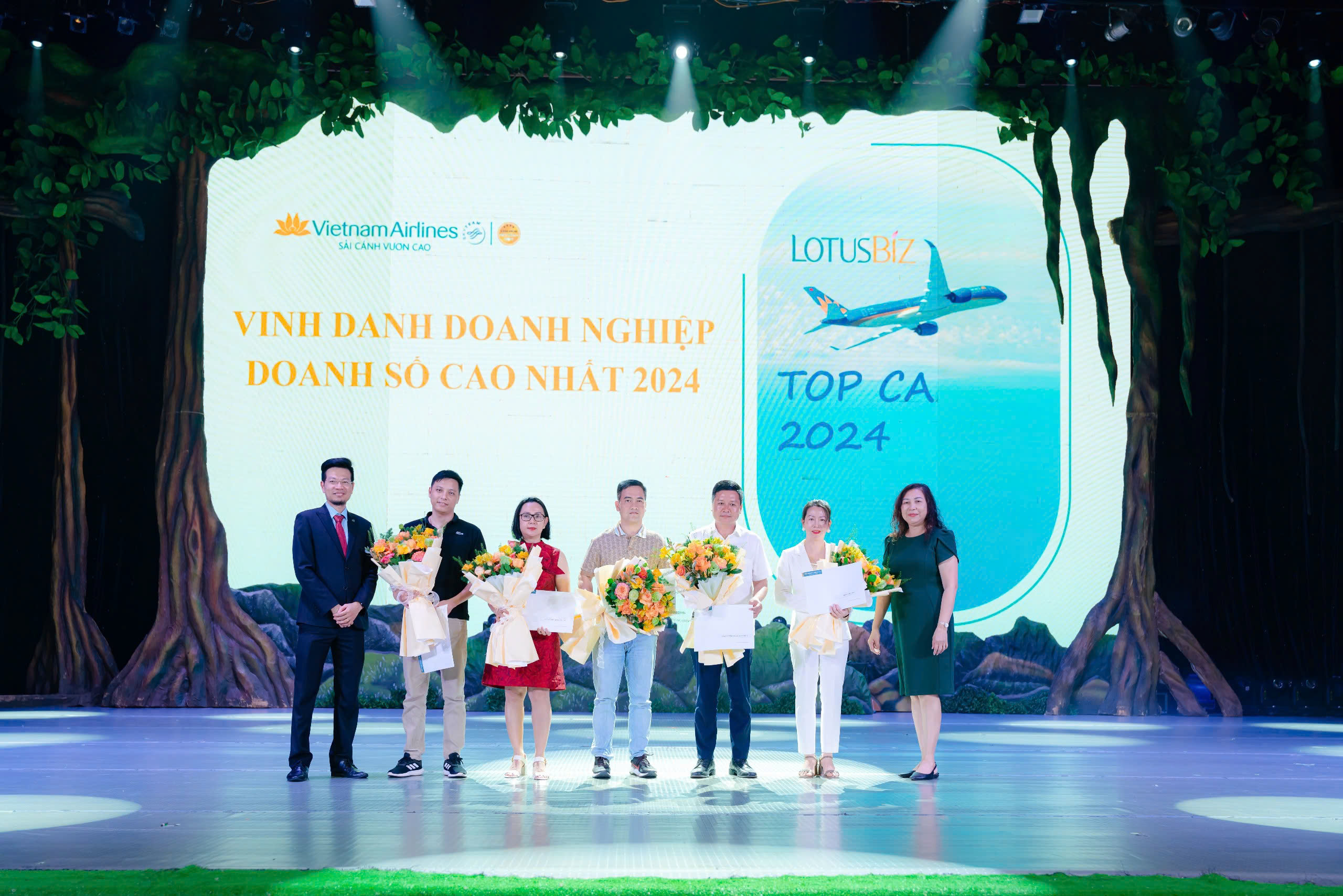 Tiếp nối, chương trình đã tiến hành vinh danh các doanh nghiệp tiêu biểu tại khu vực miền Trung – những đối tác đã có nhiều đóng góp tích cực trong năm 2024, ghi dấu ấn bằng sự hợp tác hiệu quả và bền chặt với Vietnam Airlines.