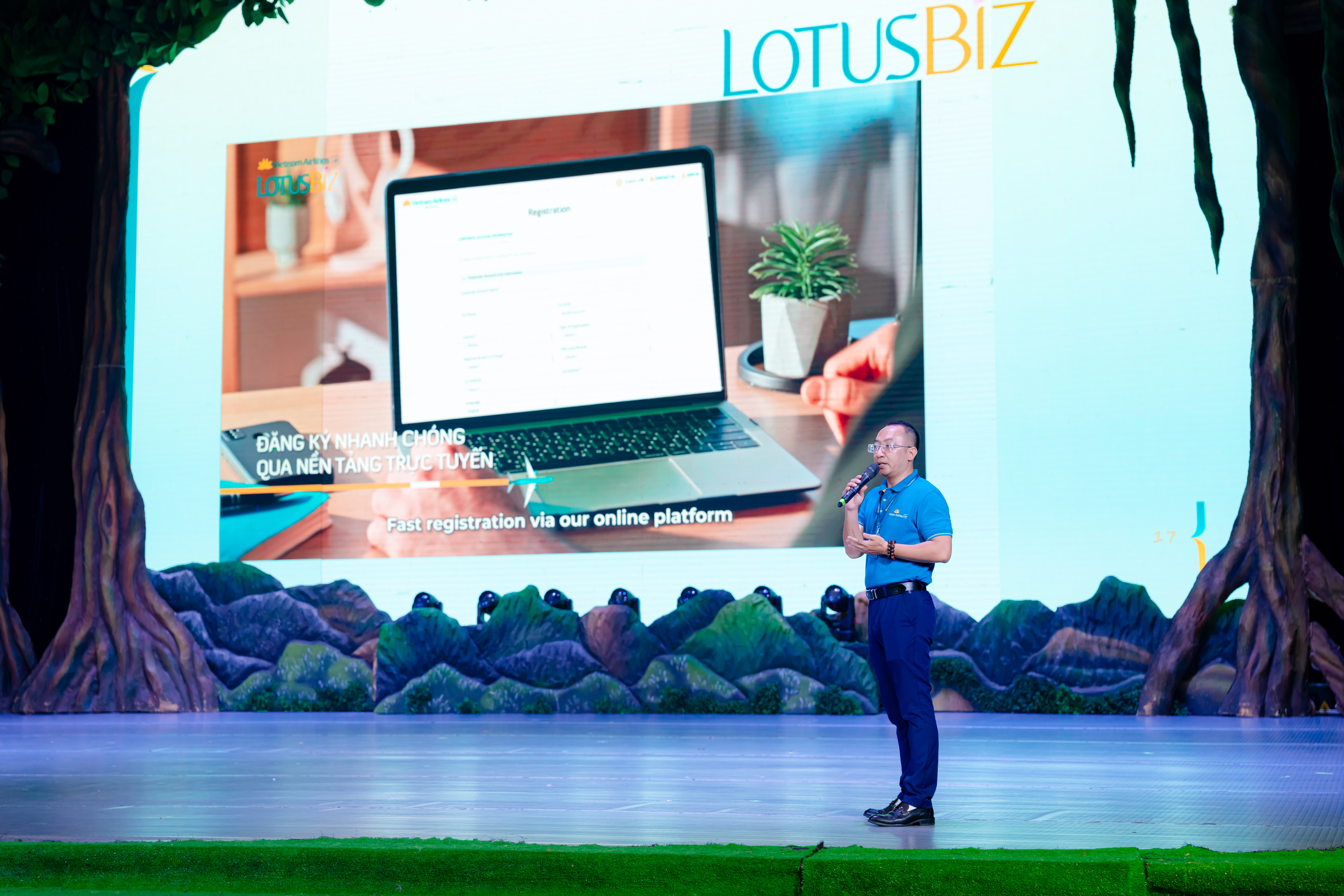Đại diện Đội Khách hàng Tổ chức Doanh nghiệp cũng đã giới thiệu chi tiết về Chương trình Khách hàng Tổ chức Doanh nghiệp – LotusBIZ, mang đến cho khách mời cái nhìn toàn diện về các quyền lợi hấp dẫn, các giải pháp tối ưu hóa chi phí bay, cũng như cơ hội đồng hành bền vững cùng Vietnam Airlines.