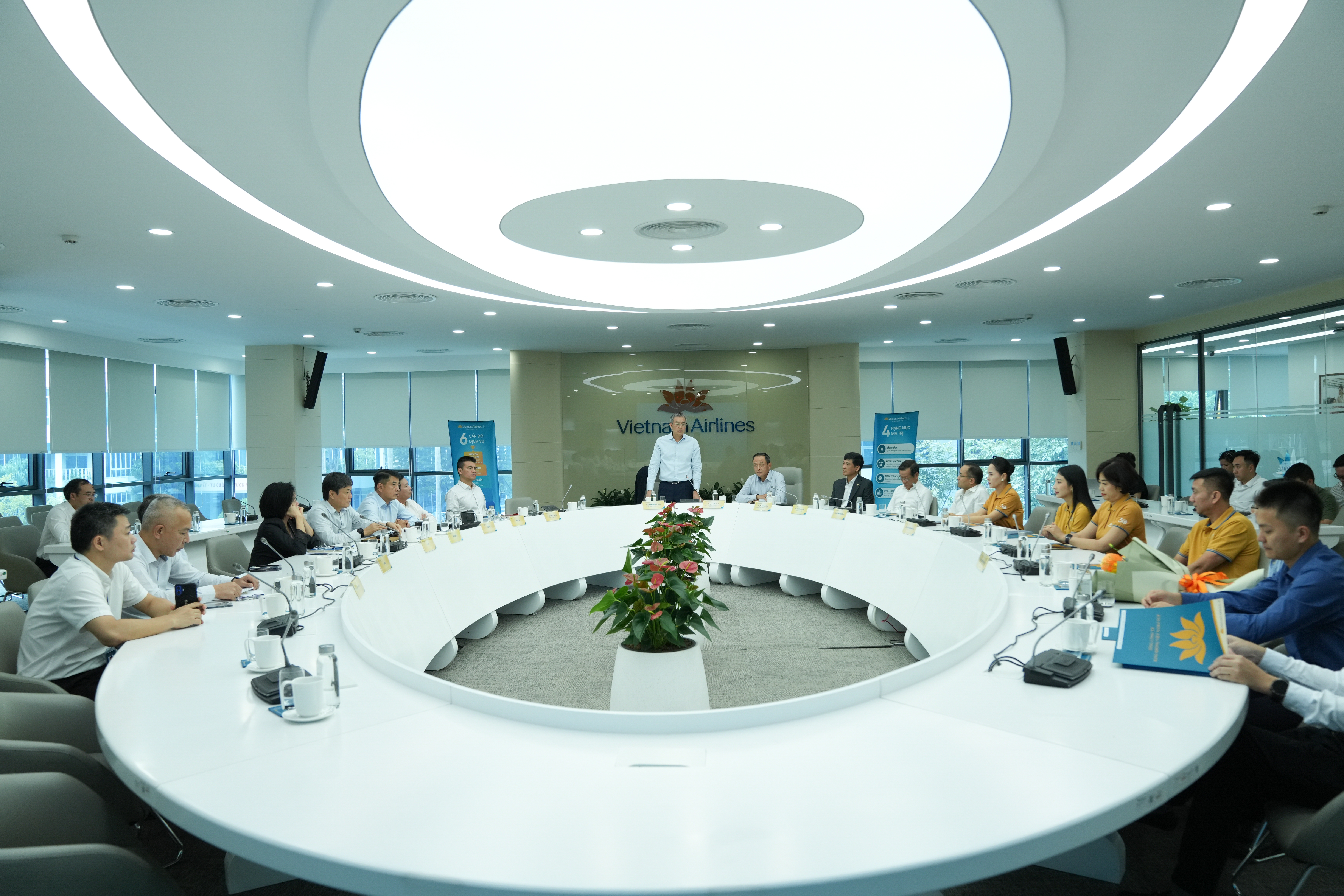 Chủ tịch cũng đưa ra định hướng cụ thể cho các đơn vị có cán bộ được bổ nhiệm. Với VASCO, Chủ tịch yêu cầu giữ vững chất lượng và hiệu quả vận hành trong bối cảnh thị trường phục hồi nhanh và cạnh tranh gay gắt, đồng thời tiếp tục ổn định lực lượng và tạo môi trường làm việc gắn kết để bảo đảm phát triển bền vững. Đối với Ban Chuyển đổi số và Công nghệ, Chủ tịch khẳng định chuyển đổi số là trụ cột chiến lược của Tổng công ty, do đó cần đẩy nhanh triển khai các nghị quyết về chuyển đổi số và đổi mới sáng tạo, ứng dụng nền tảng số trong đánh giá cán bộ, cải tiến quy trình và khuyến khích sáng kiến nhằm nâng cao năng suất và hiệu quả quản trị. Riêng lực lượng tiếp viên – “đại sứ” thương hiệu trên bầu trời cần tập trung duy trì phong thái phục vụ chuẩn mực và chuẩn bị tốt nguồn lực để đáp ứng kế hoạch mở rộng khai thác của Hãng trong thời gian tới.