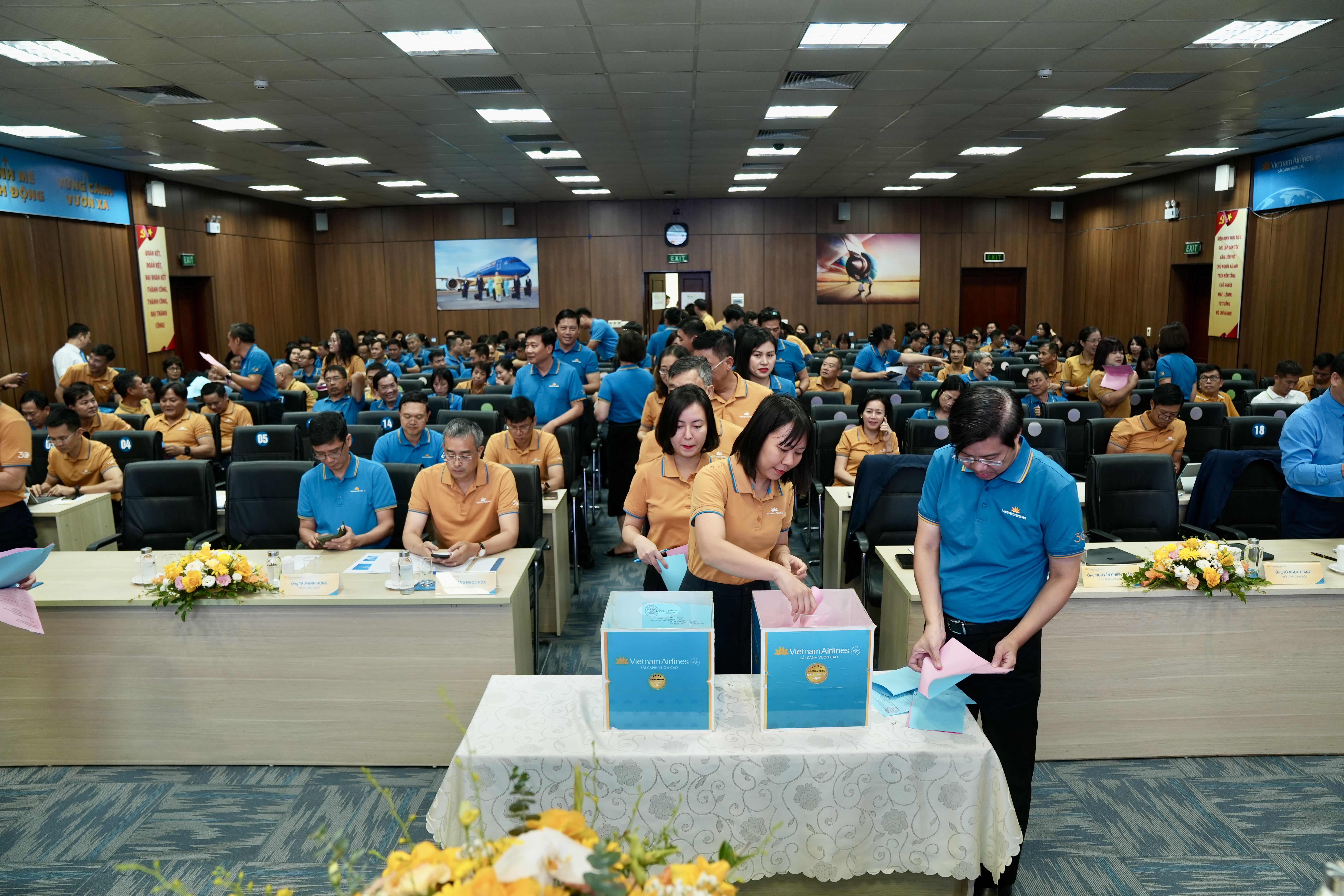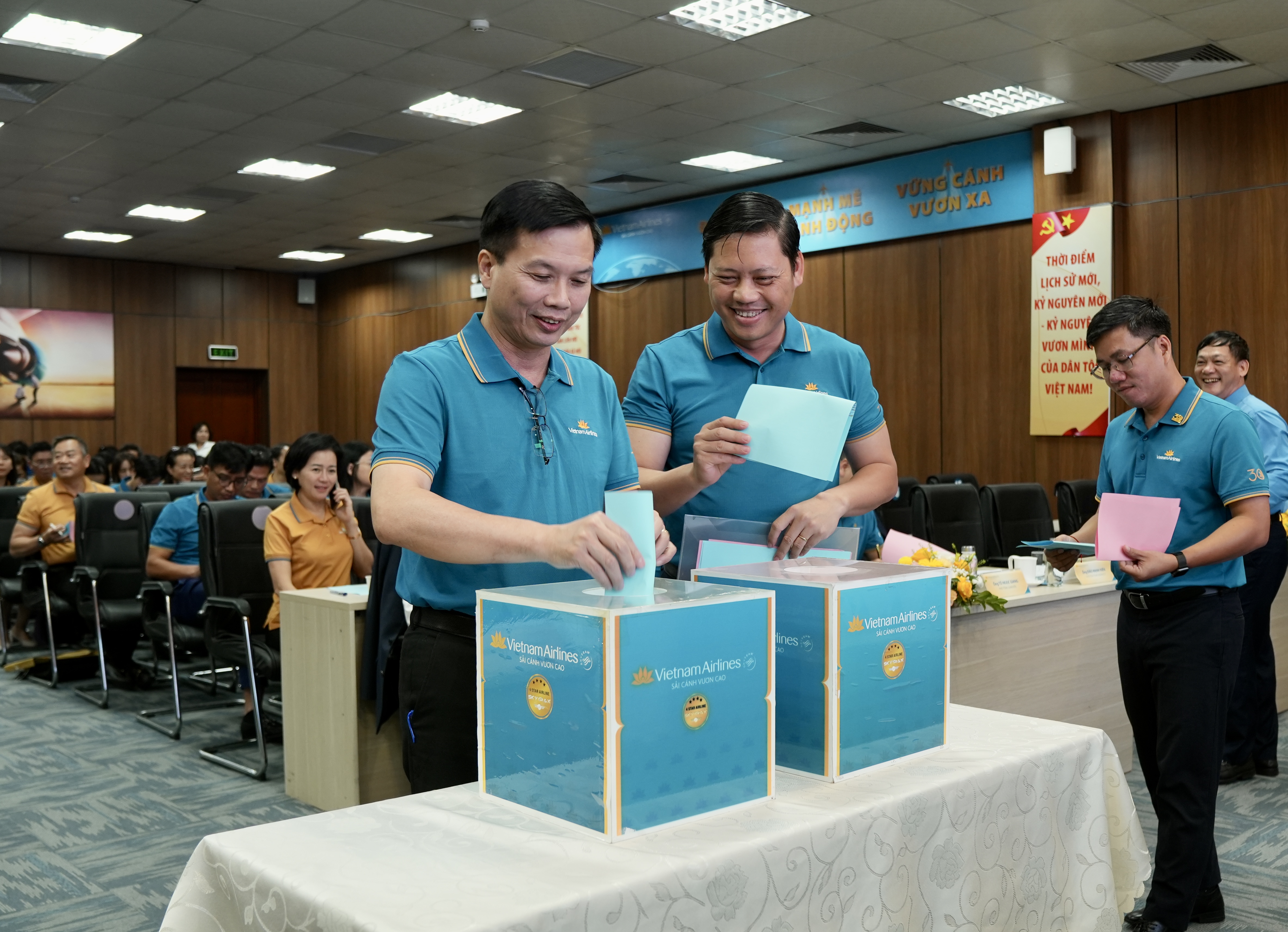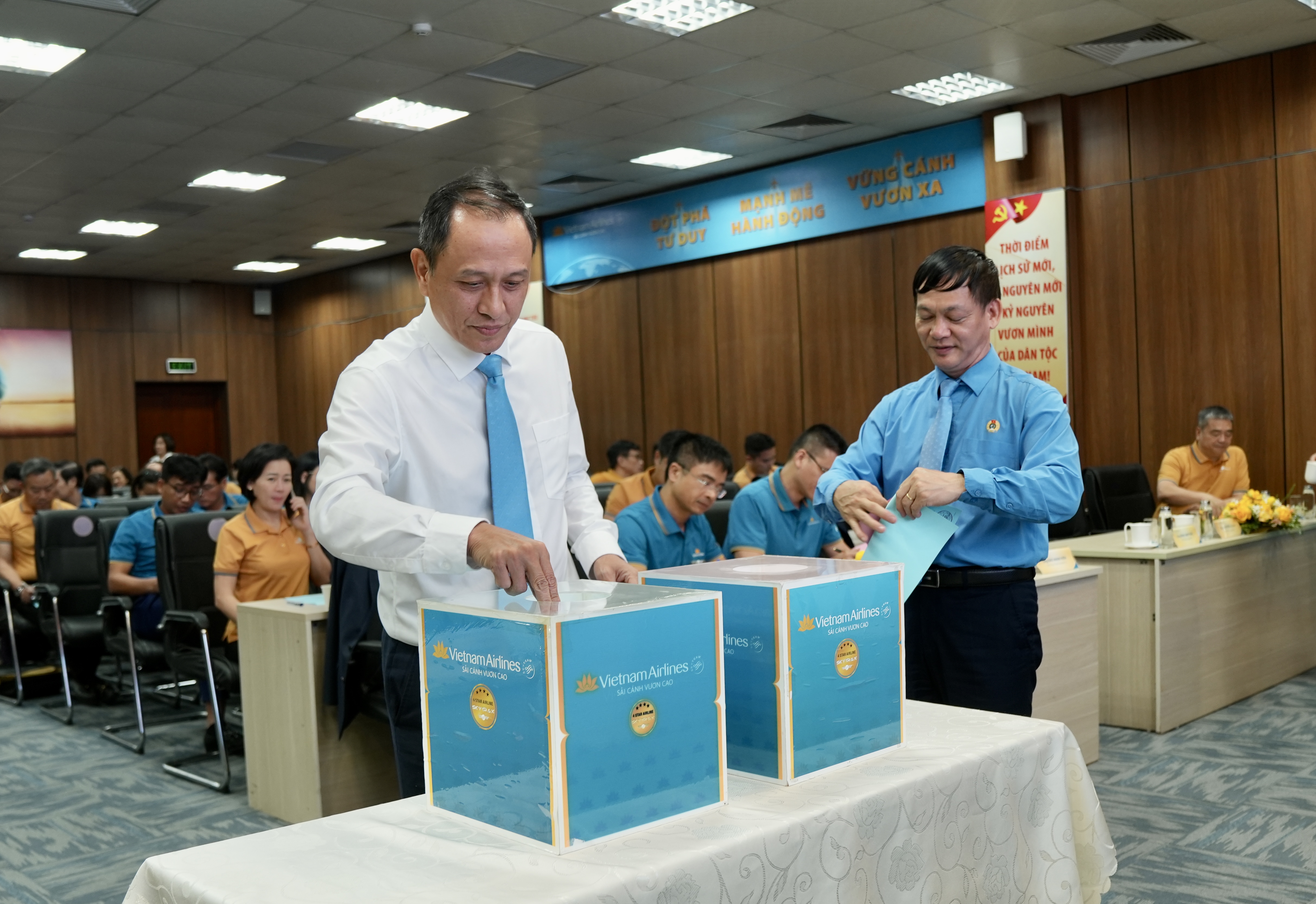 Trong khuôn khổ Hội nghị, các đại biểu đã tiến hành bầu nhân sự đối thoại đại diện cho tập thể người lao động Tổng công ty, nhiệm kỳ 2025-2027. Danh sách được bầu gồm 24 thành viên, đại diện cho nhiều đơn vị, lĩnh vực khác nhau trong hệ thống, từ khối khai thác bay, tiếp viên, kỹ thuật, dịch vụ mặt đất cho đến các phòng ban chức năng và tổ chức Công đoàn. Đây là lực lượng nòng cốt sẽ trực tiếp tham gia đối thoại định kỳ, truyền tải tiếng nói của người lao động đến Ban lãnh đạo, đồng thời góp phần xây dựng quan hệ lao động hài hòa, ổn định.