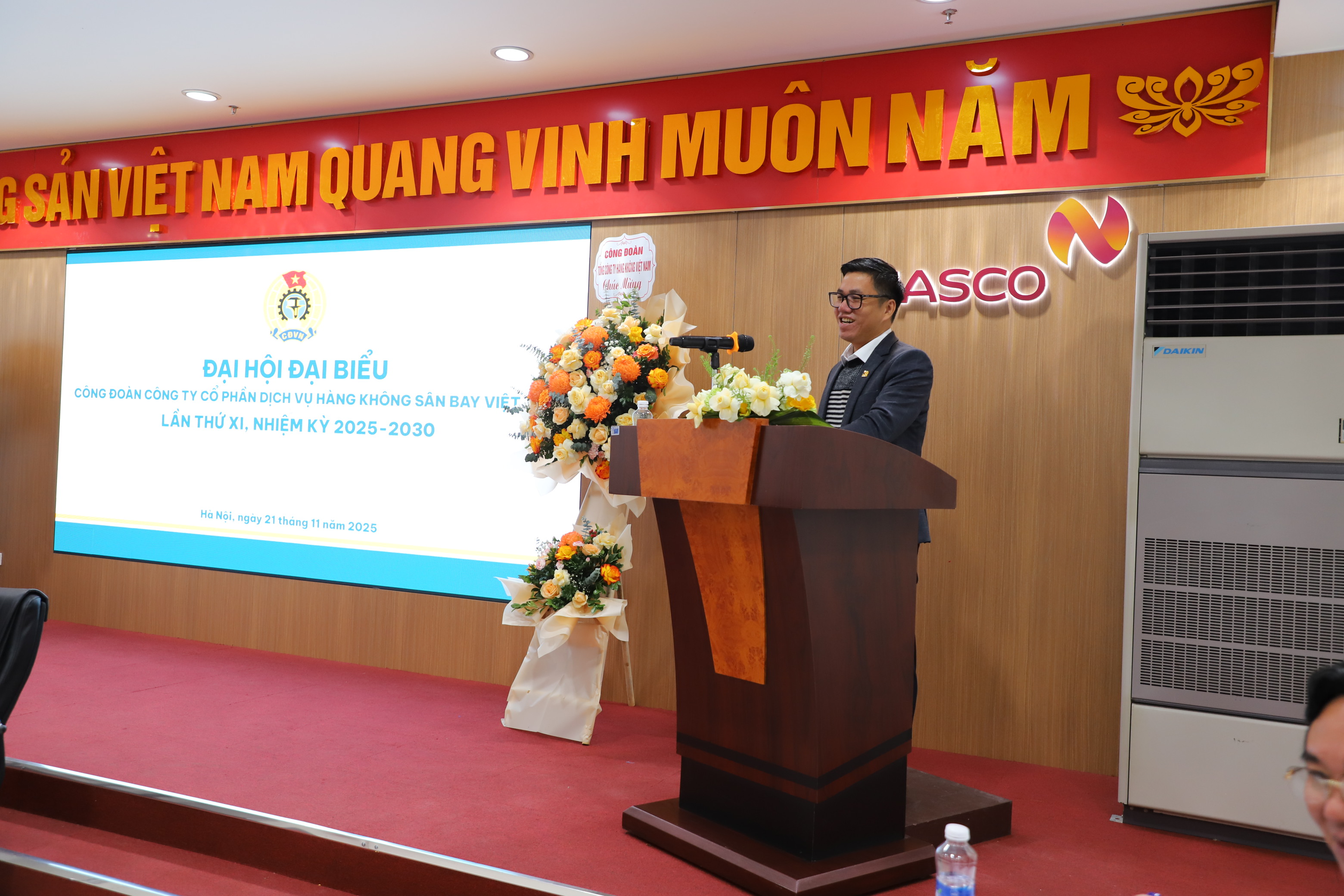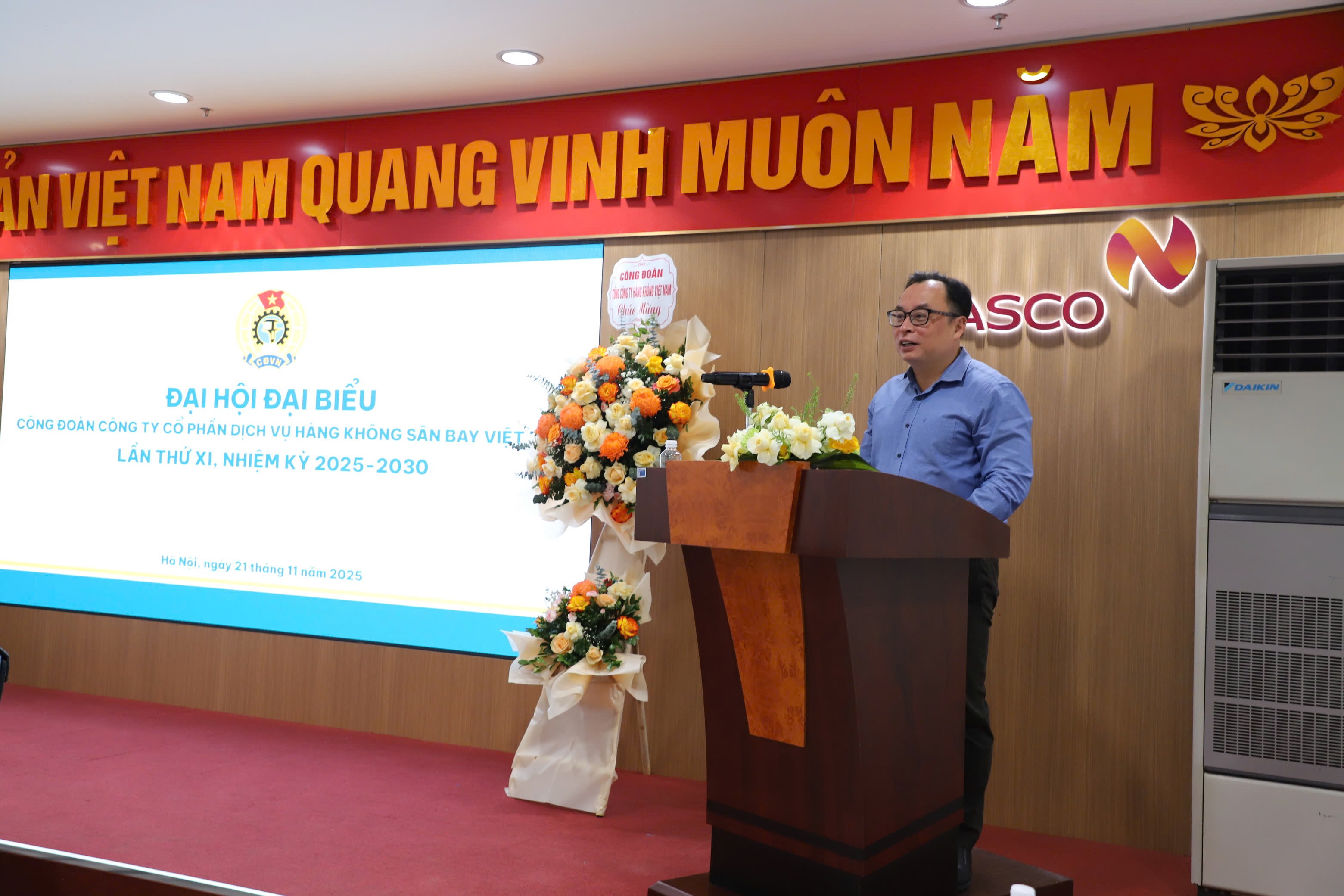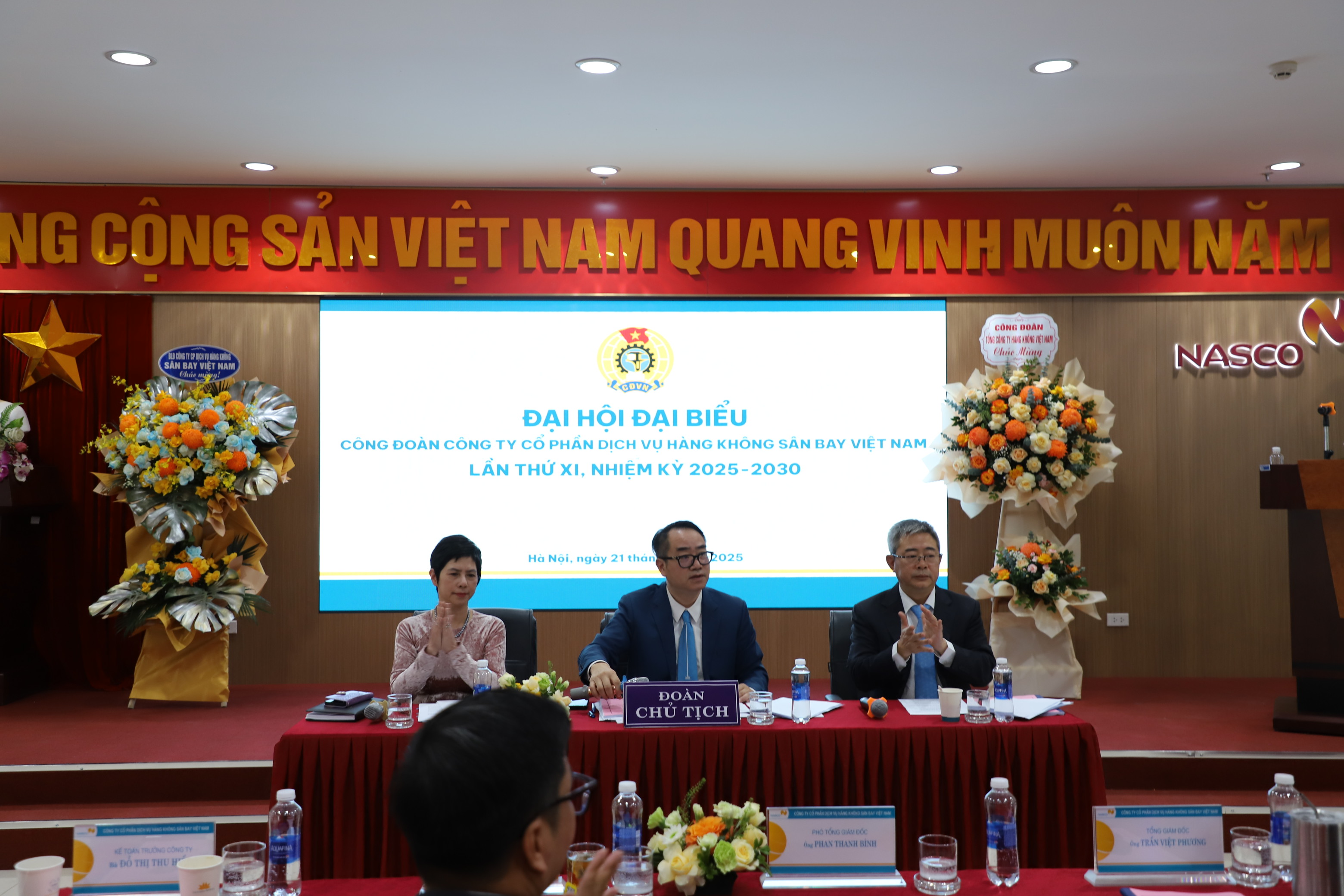 Phát biểu chỉ đạo tại Đại hội, đại diện Công đoàn VNA cùng Ban Lãnh đạo Công ty ghi nhận và biểu dương những thành tích nổi bật của tổ chức công đoàn NASCO, đồng thời nhấn mạnh tầm quan trọng của sự đoàn kết, sáng tạo và trách nhiệm trong việc bảo vệ quyền lợi người lao động, gắn kết lợi ích đoàn viên với sự phát triển chung của Công ty.