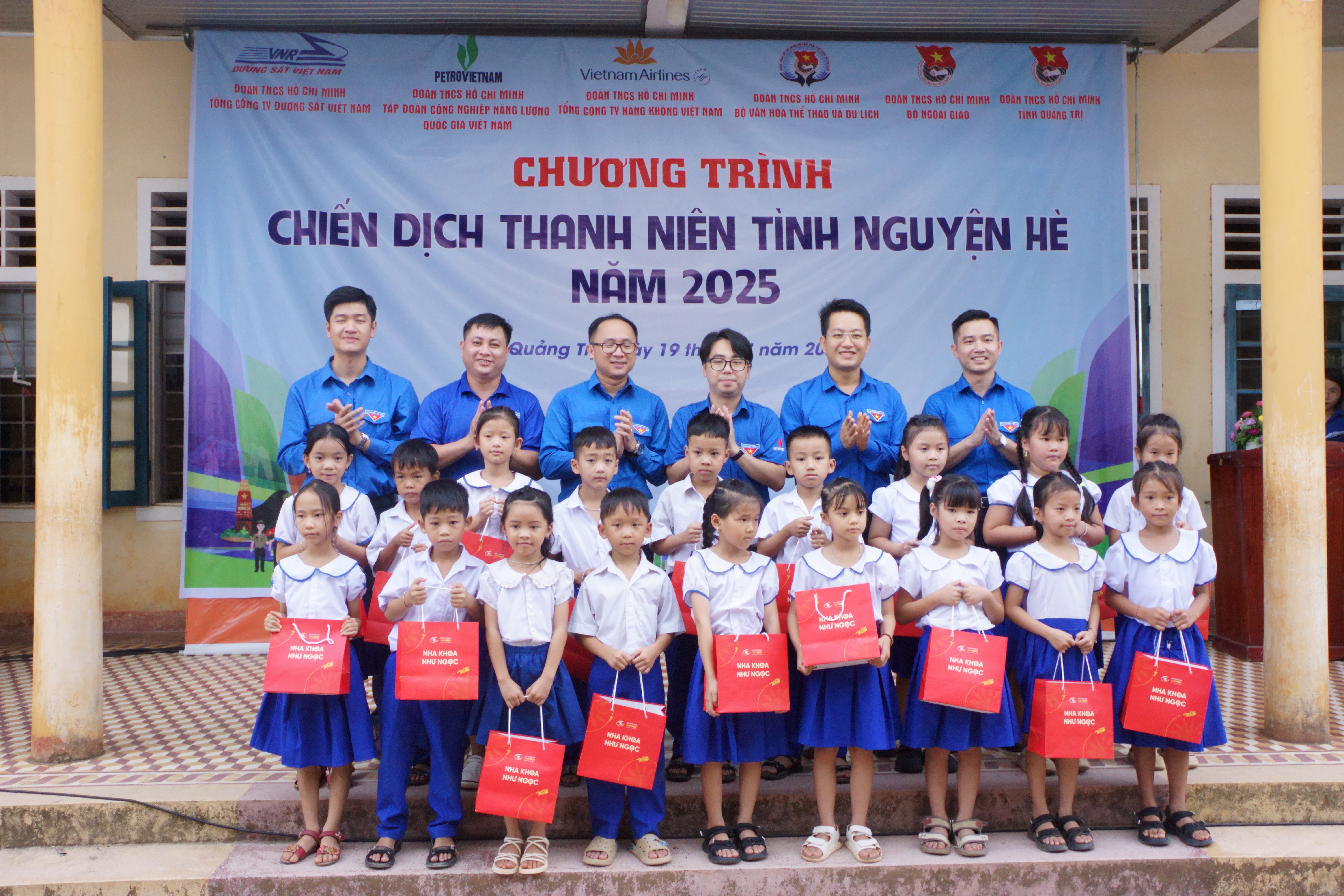 Đoàn Thanh niên Bộ Ngoại giao trao tặng 20 phần quà cho học sinh có hoàn cảnh khó khăn, trị giá 20 triệu đồng. Đoàn Thanh niên Tập đoàn Công nghiệp – Năng lượng Quốc gia Việt Nam tài trợ một sân chơi thiếu nhi trị giá 40 triệu đồng, tạo không gian vận động, vui chơi lành mạnh cho trẻ em địa phương. Đoàn Thanh niên Tổng công ty Đường sắt Việt Nam trao tặng một “Ngôi nhà yêu thương” cho một hộ gia đình khó khăn trên địa bàn, thể hiện tinh thần sẻ chia, tương thân tương ái của tuổi trẻ.